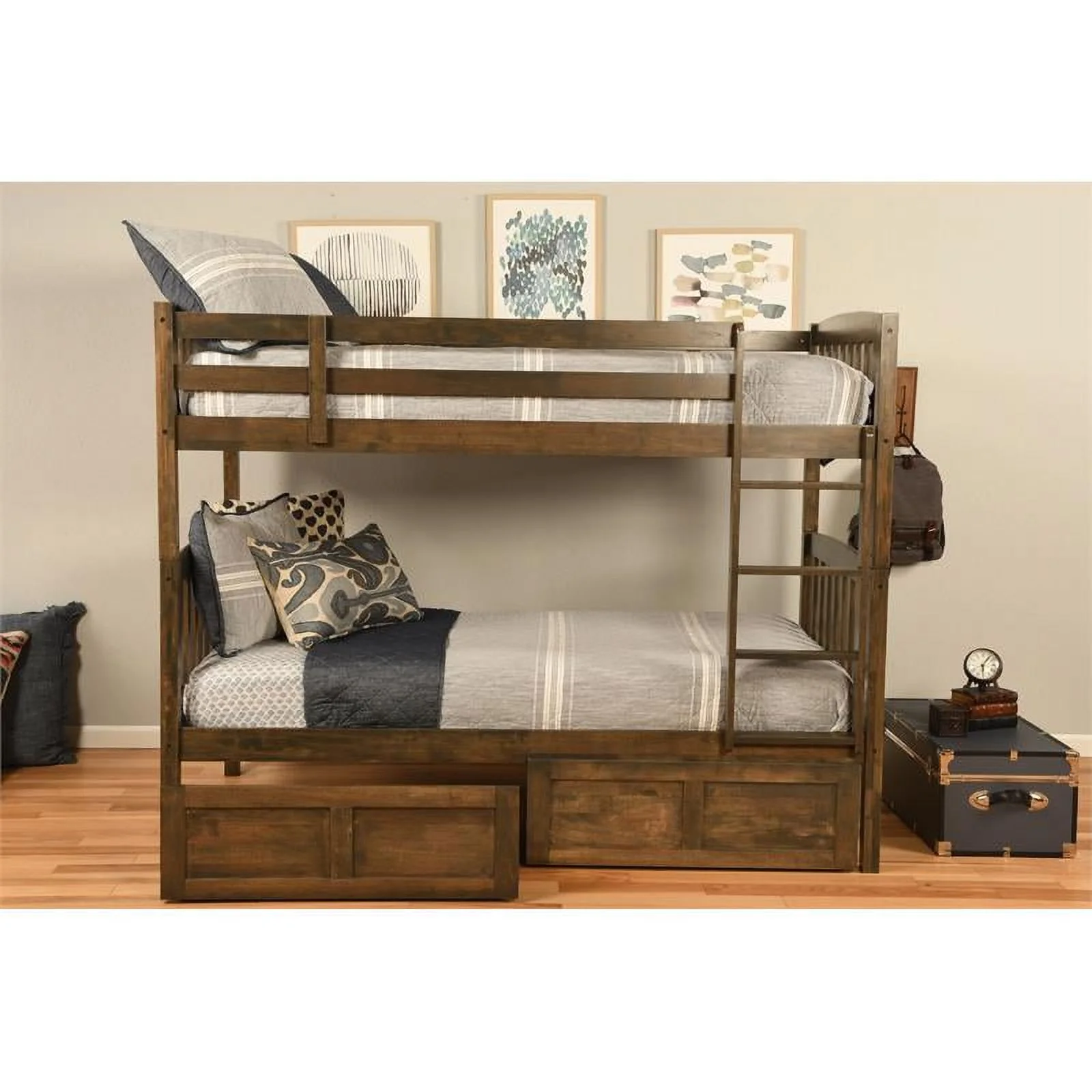 Kodiak Furniture Claire Twin Wood Bunk Bed with Storage Drawers in Walnut Brown