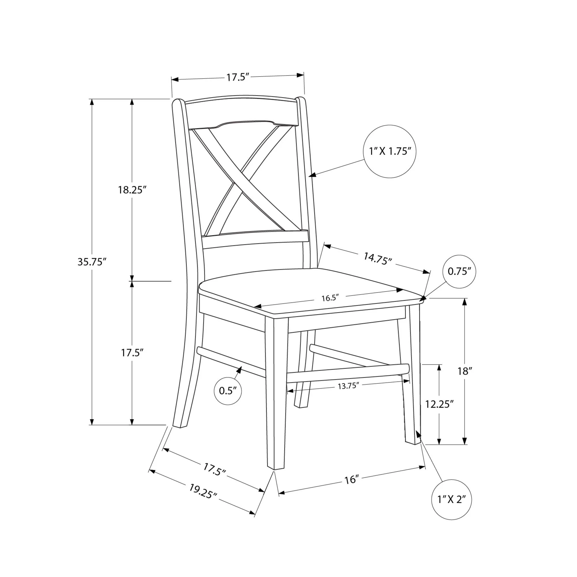 Contemporary Home Living Wooden Transitional Dining Chairs – 35.75” – Oak Veneer, 2-Piece