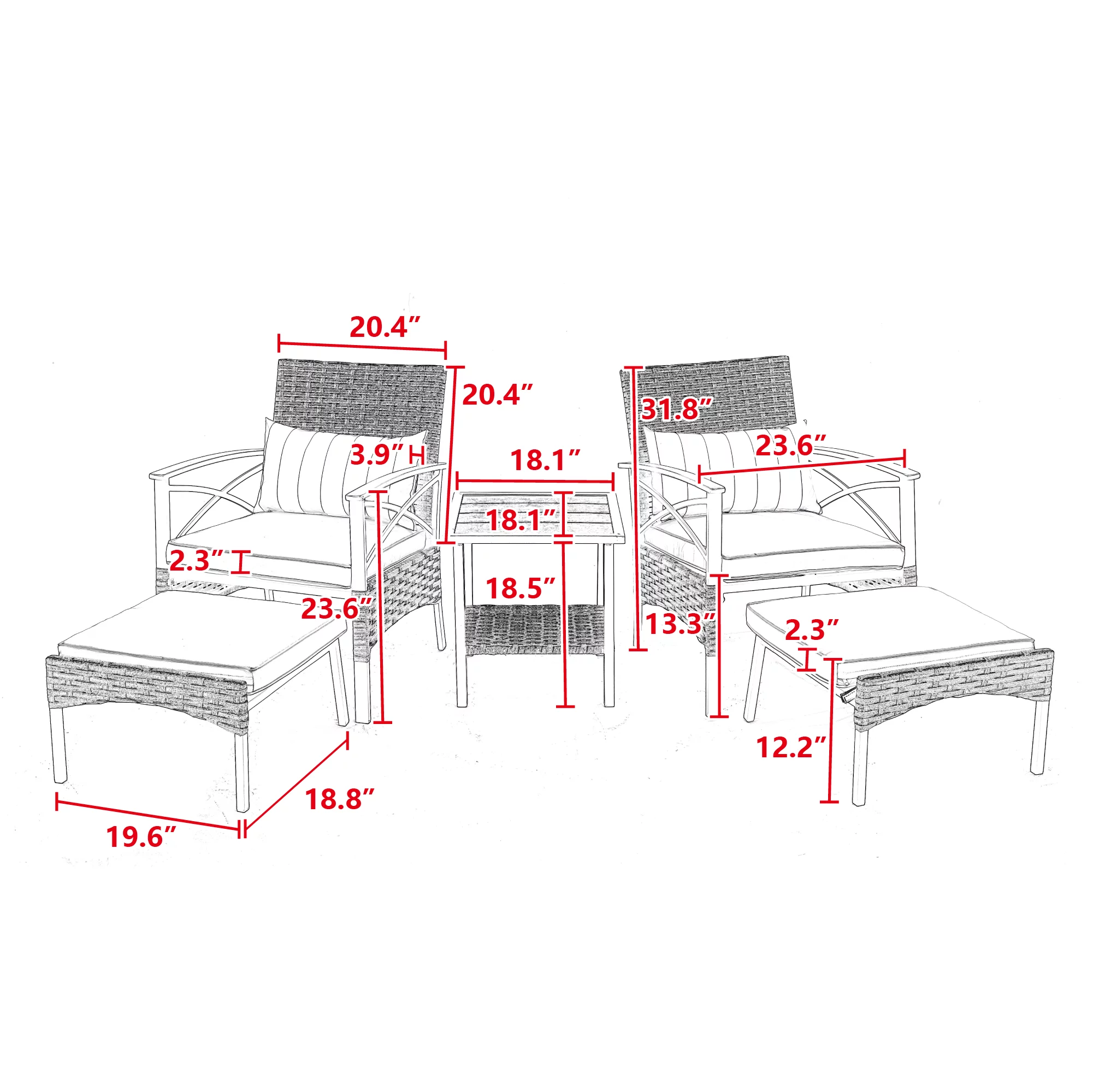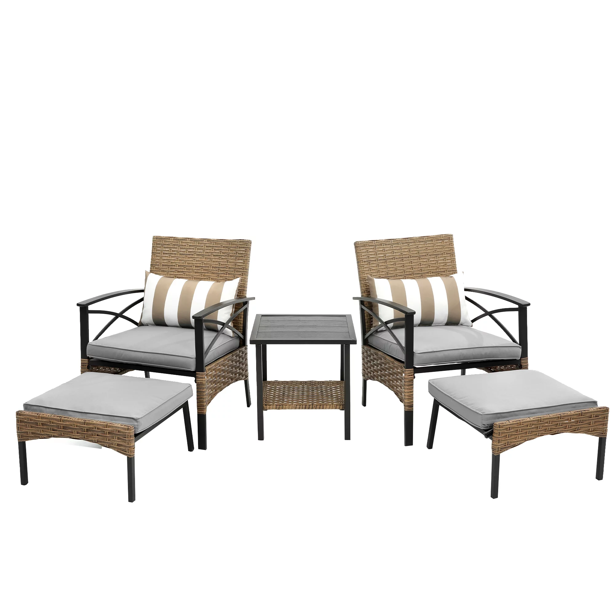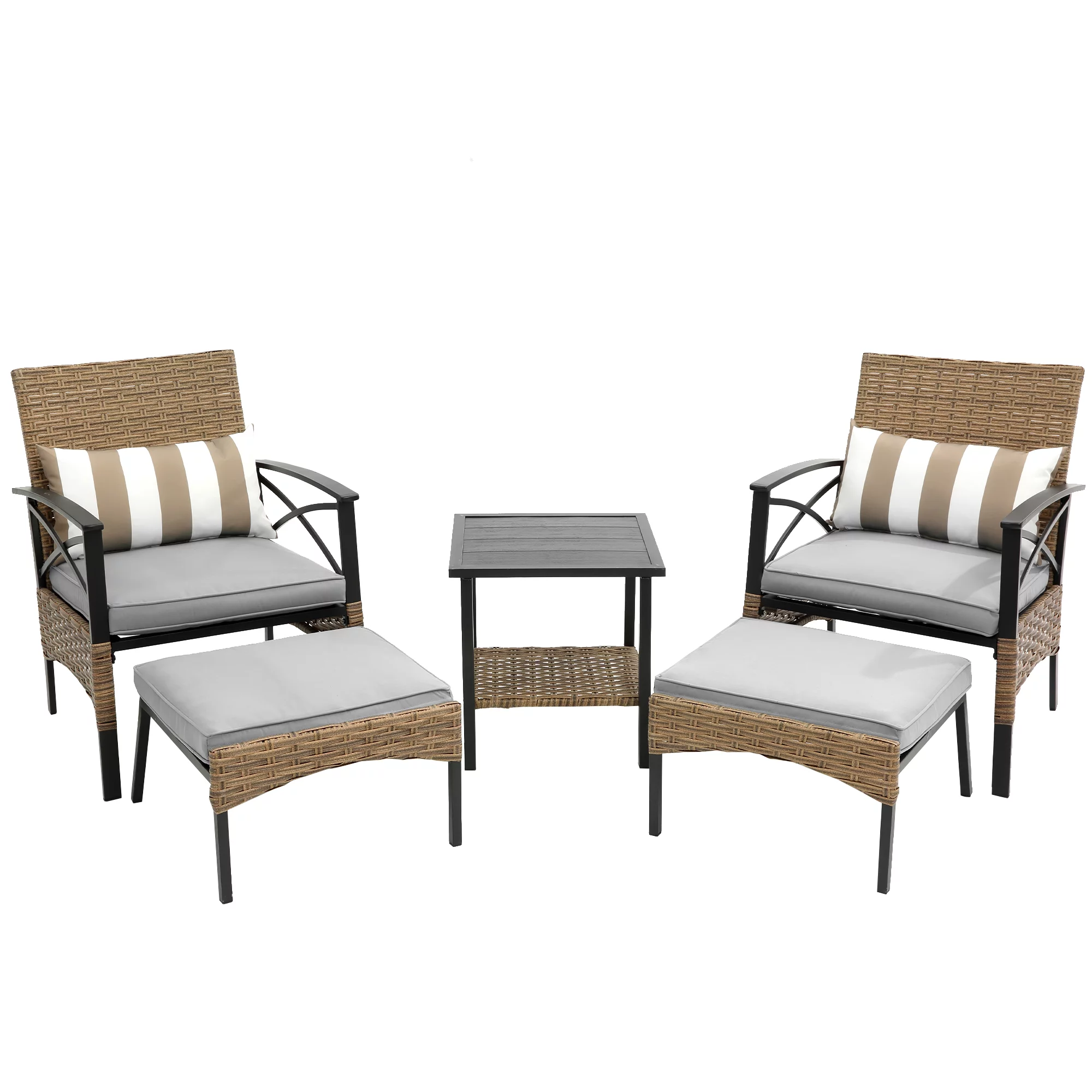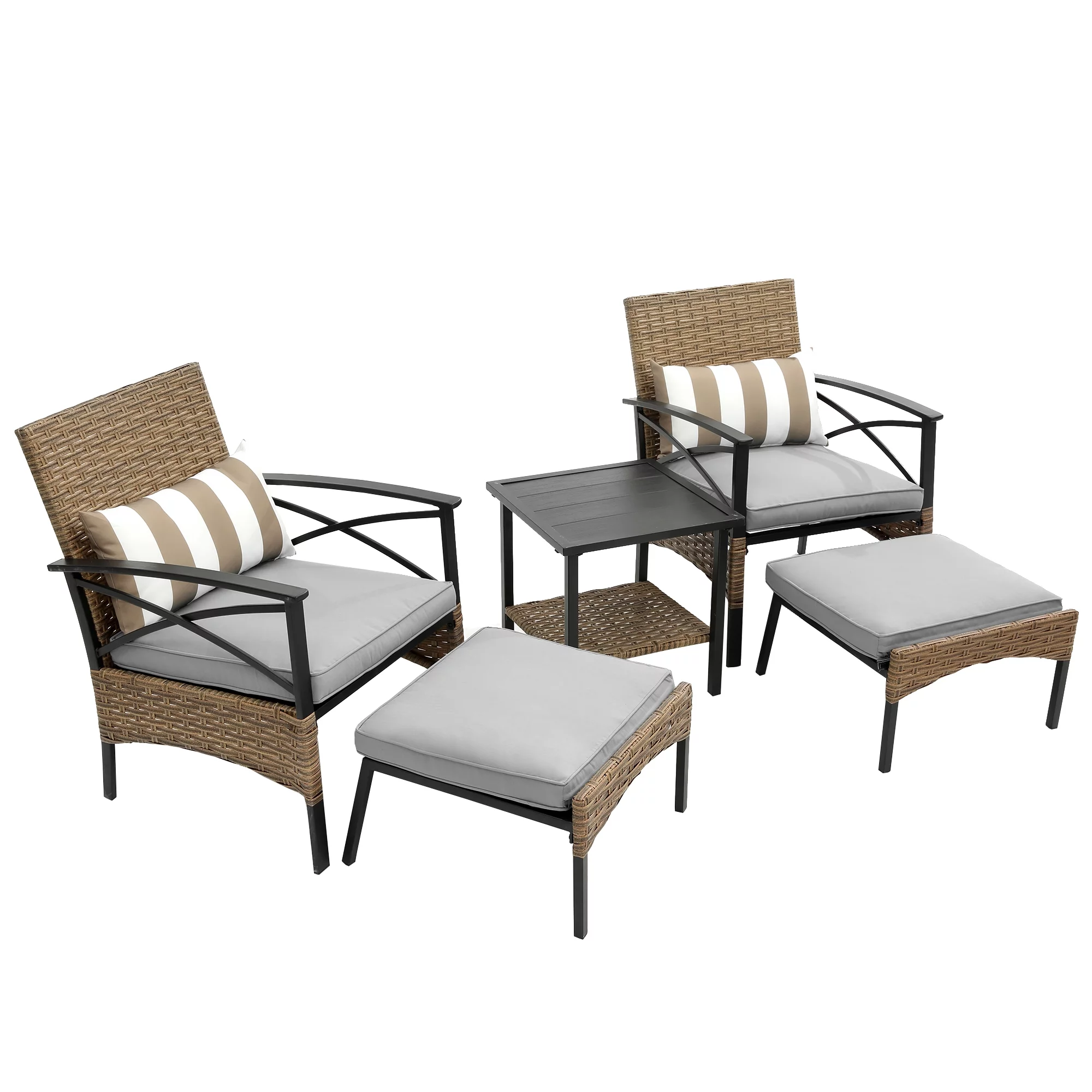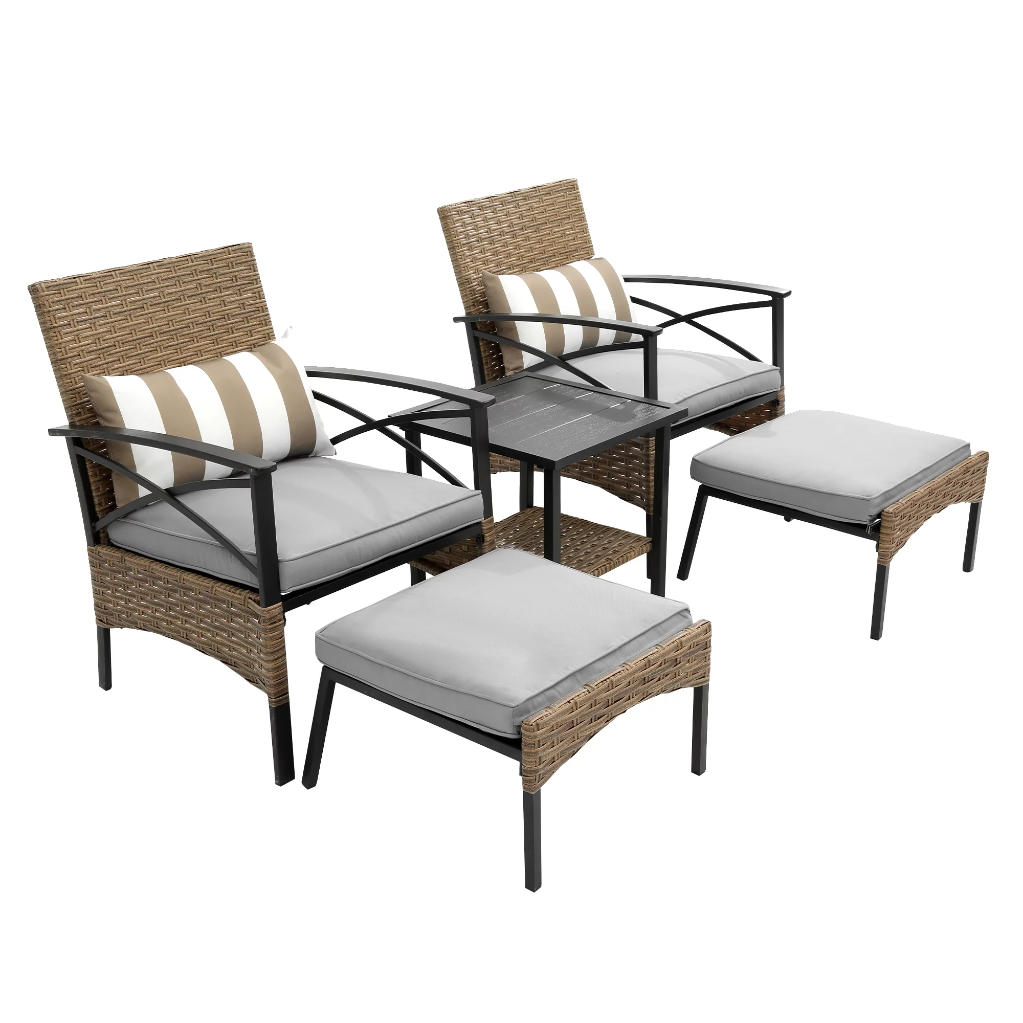 Sesslife 5 Piece Patio Furniture Set, All Weather PE Wicker Conversation Chairs and Ottomans Set with Coffee Table, Outdoor Cushioned Sectional Furniture Set for Backyard Garden Poolside Deck (Gray)