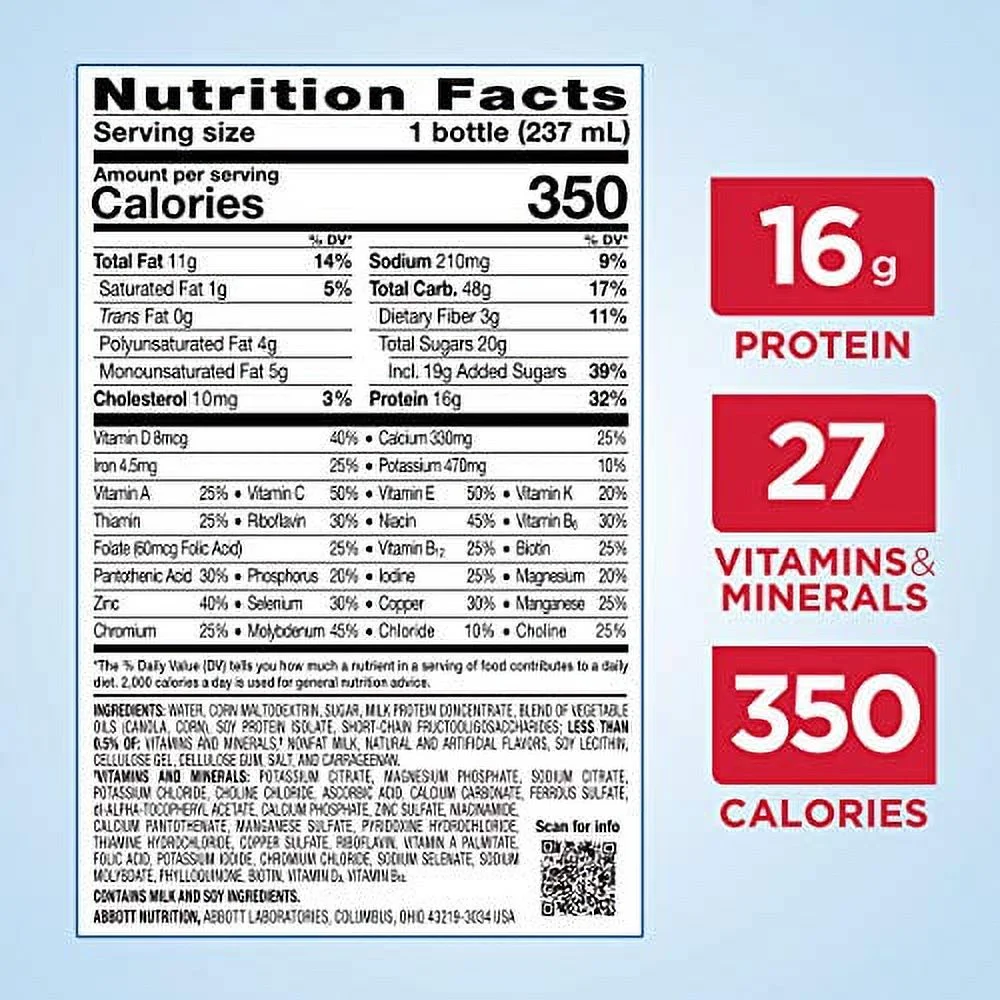 Ensure Plus Liquid Nutrition Shake with Fiber, 16 Grams of Protein, , Vanilla, 8 Fl Oz Bottle (Pack of 24)