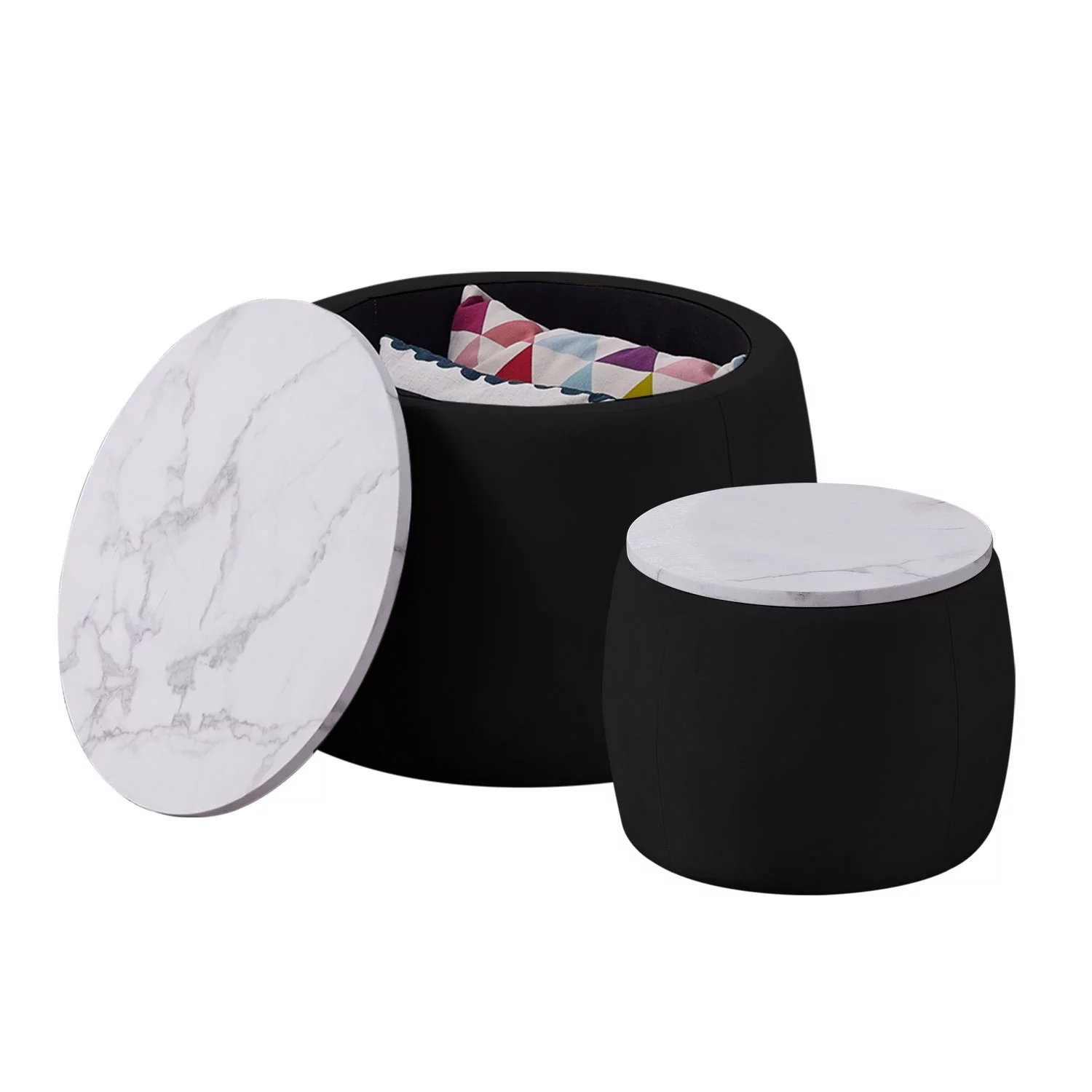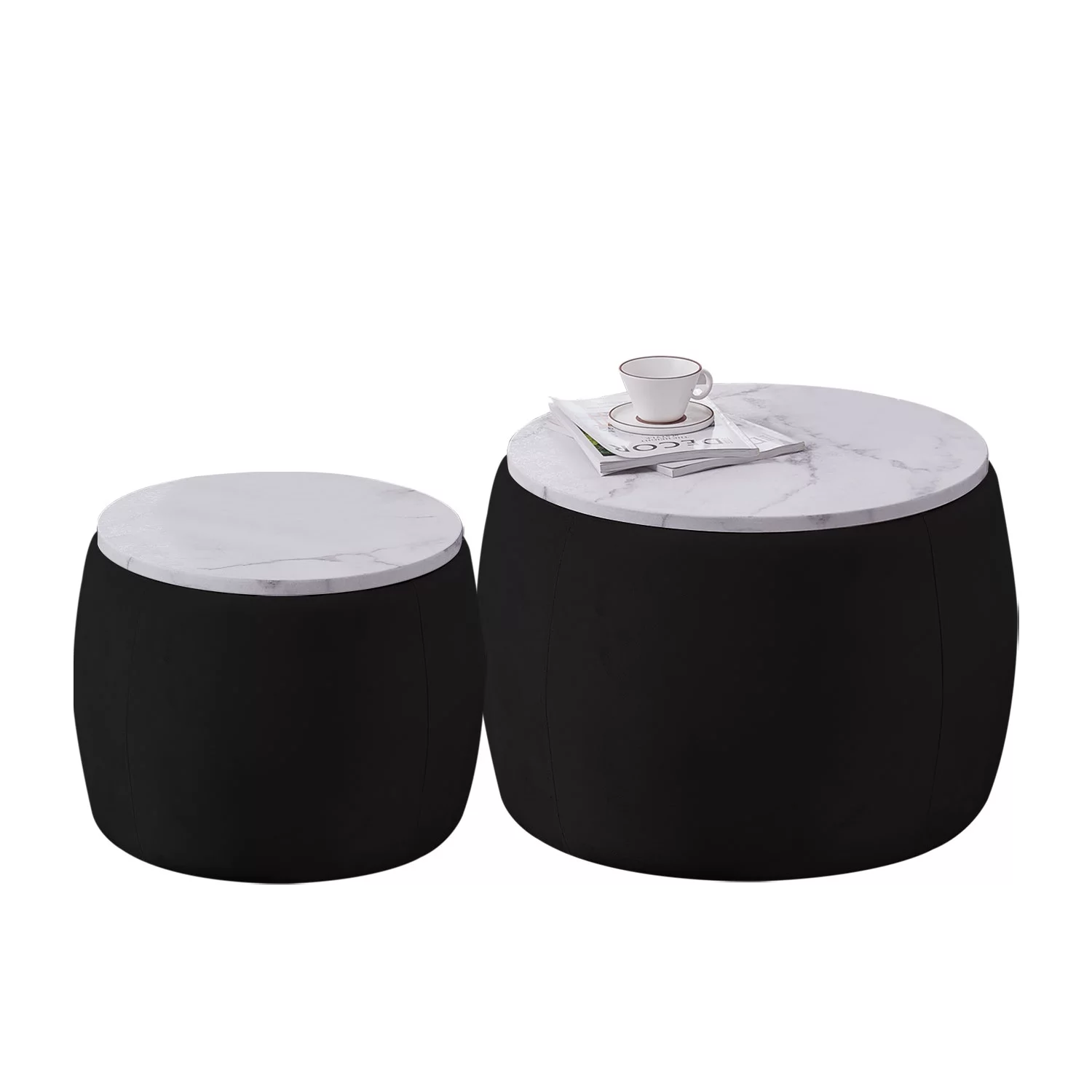 CoSoTower Set of 2 End Table with Storage, Round Accent Side Table with Removable Top for Living Room, Bedroom, Black