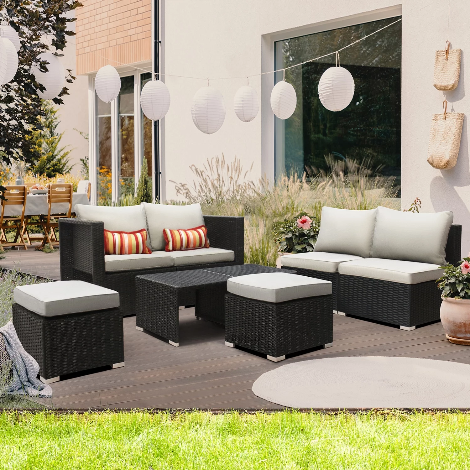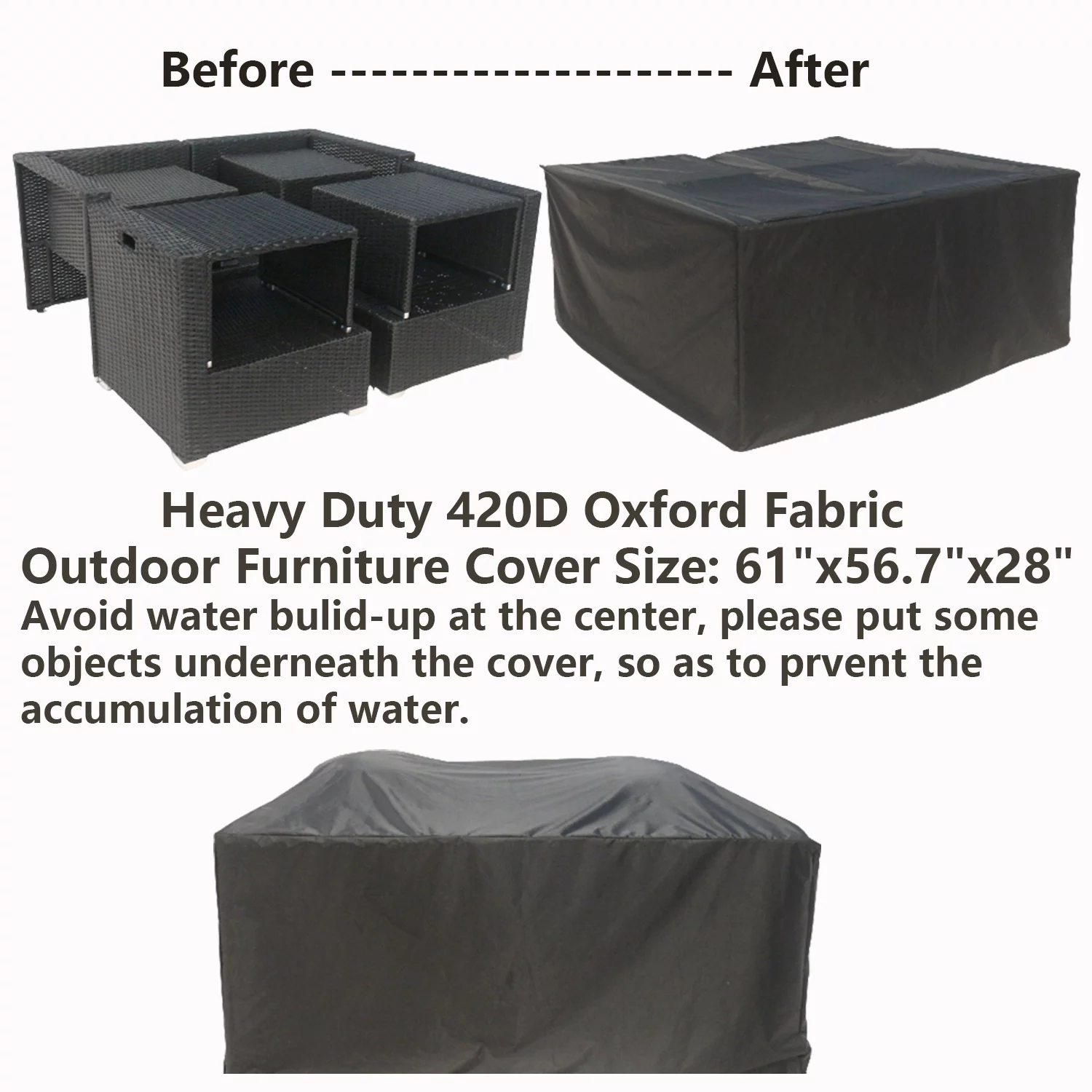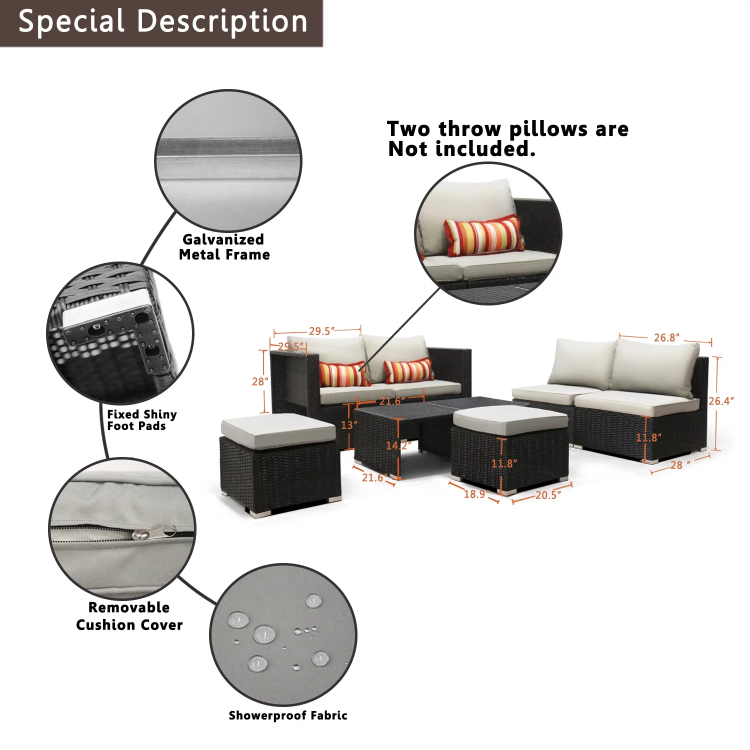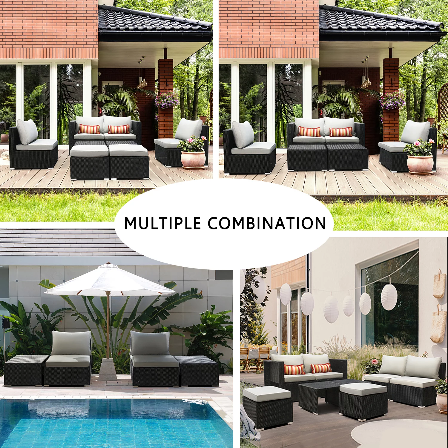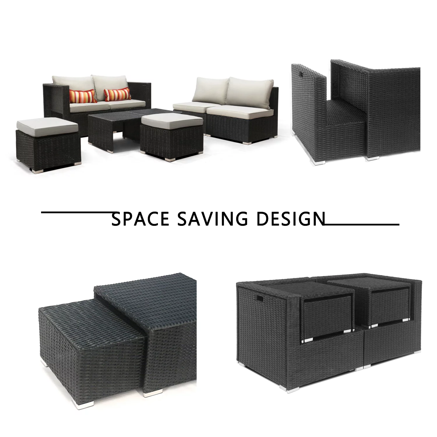 8 PCS Fully Assembled Patio Furniture Sets Outdoor Sectional Sofa Furniture Outside Couch Conversation Sets Space Saving Deep Seating with Back Cushion Ottoman Coffee Table Black-W/Cover
