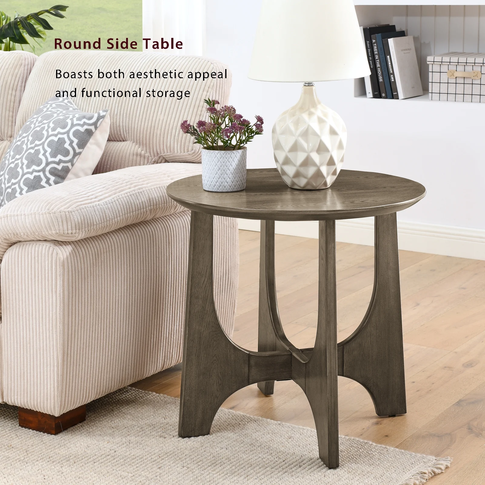IETEK Round Side Table, Wooden Round End Table, Nightstand for Small Spaces, 25.2 x 25.2 x 24 Inches, Walnut