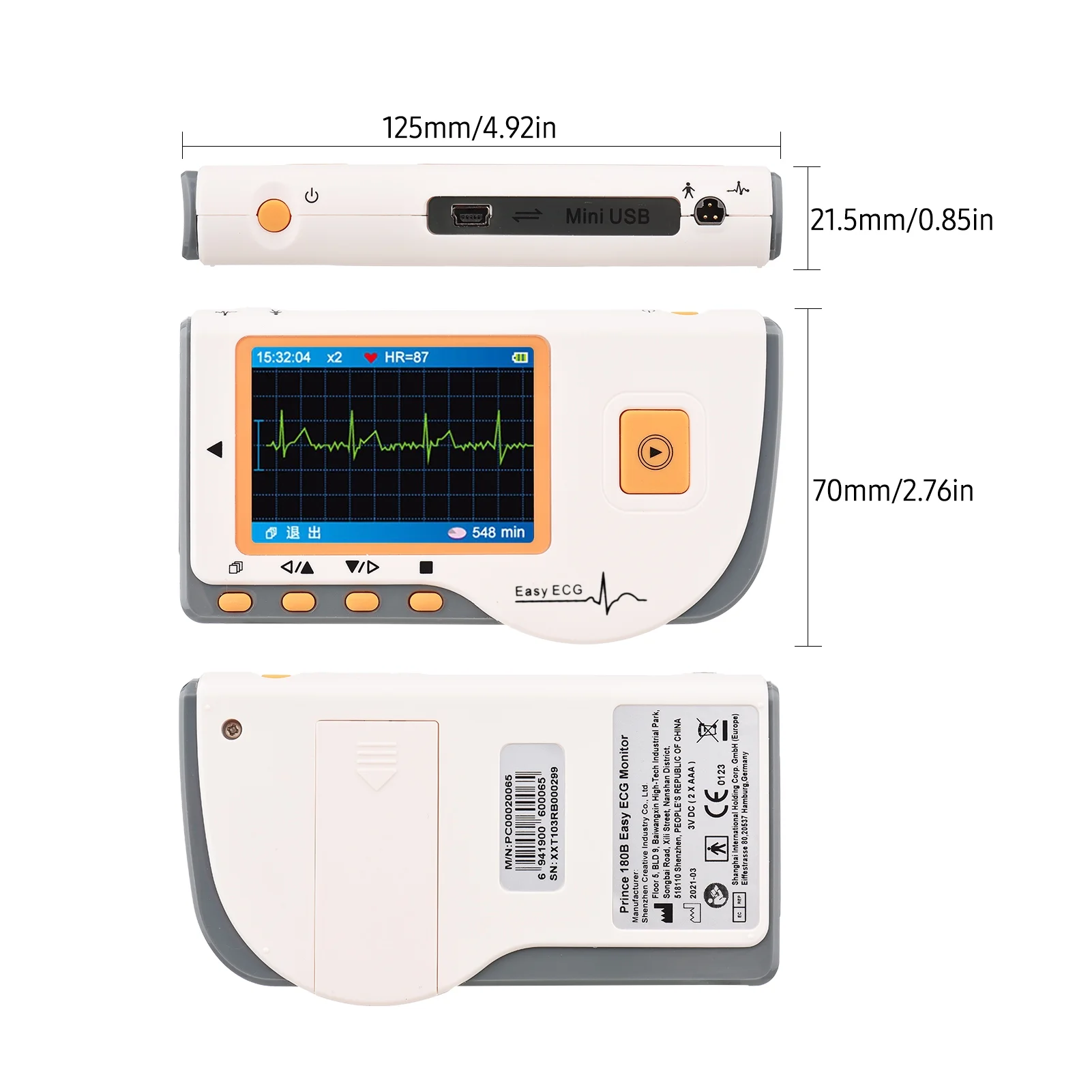 moobody Force PC,180B0 Handheld LCD Home EKG Device with USB Cable and Data Transmission