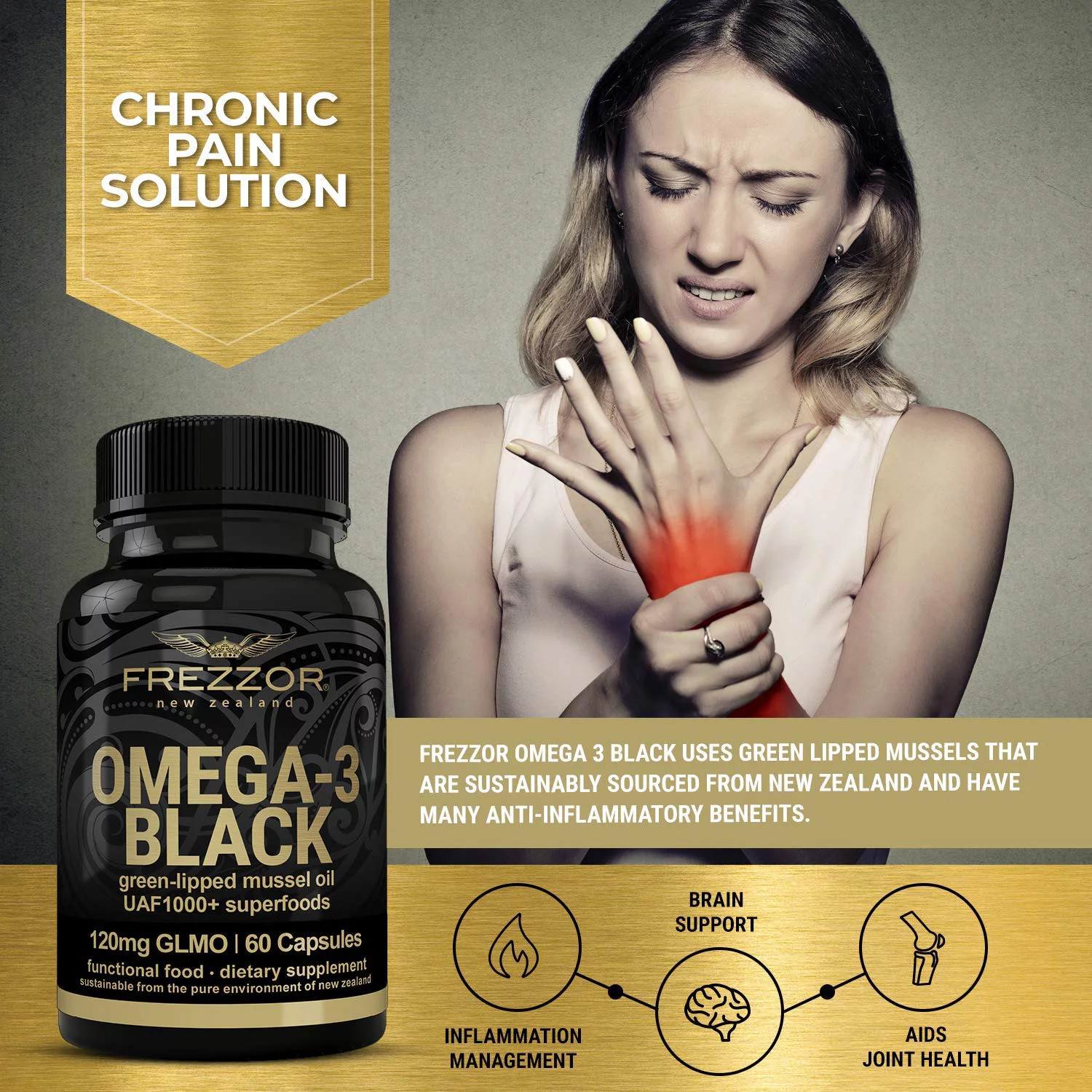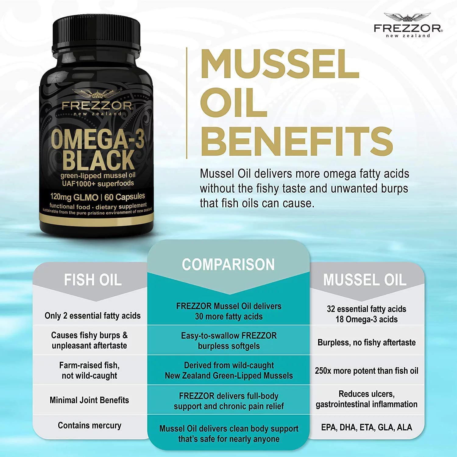 FREZZOR Mineral-Rich Flaky Sea Salt Combo-Pack with Omega-3 Black, 1 Jar, 60 Capsules