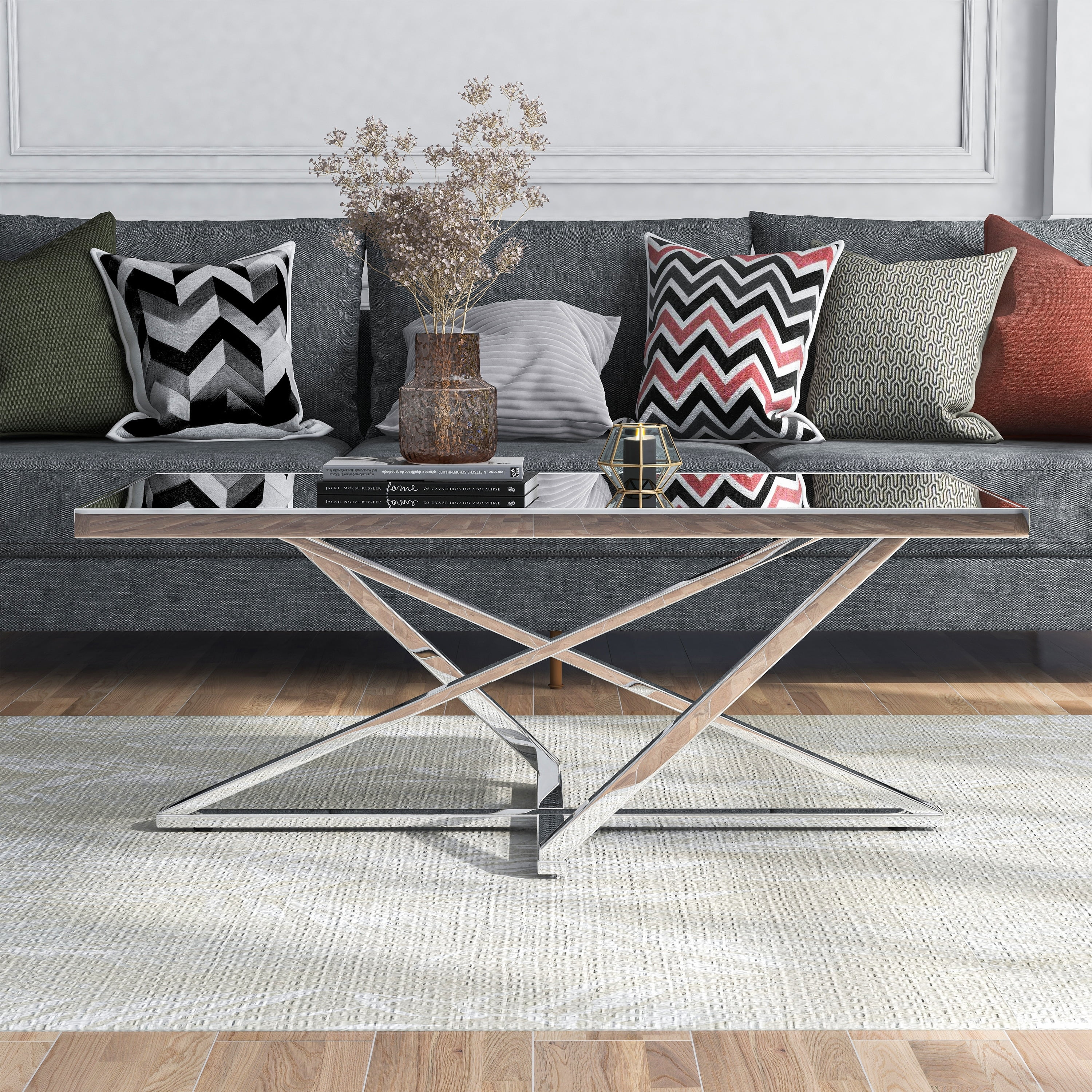 Furniture of America Marchat Glam Chrome 47-inch Mirror Top Coffee Table by