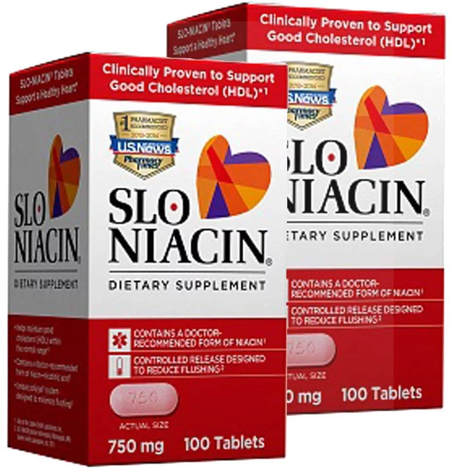 Slo-Niacin 750 mg Support Good Cholesterol Dietary Supplement, 100 Each - (Pack of 2)