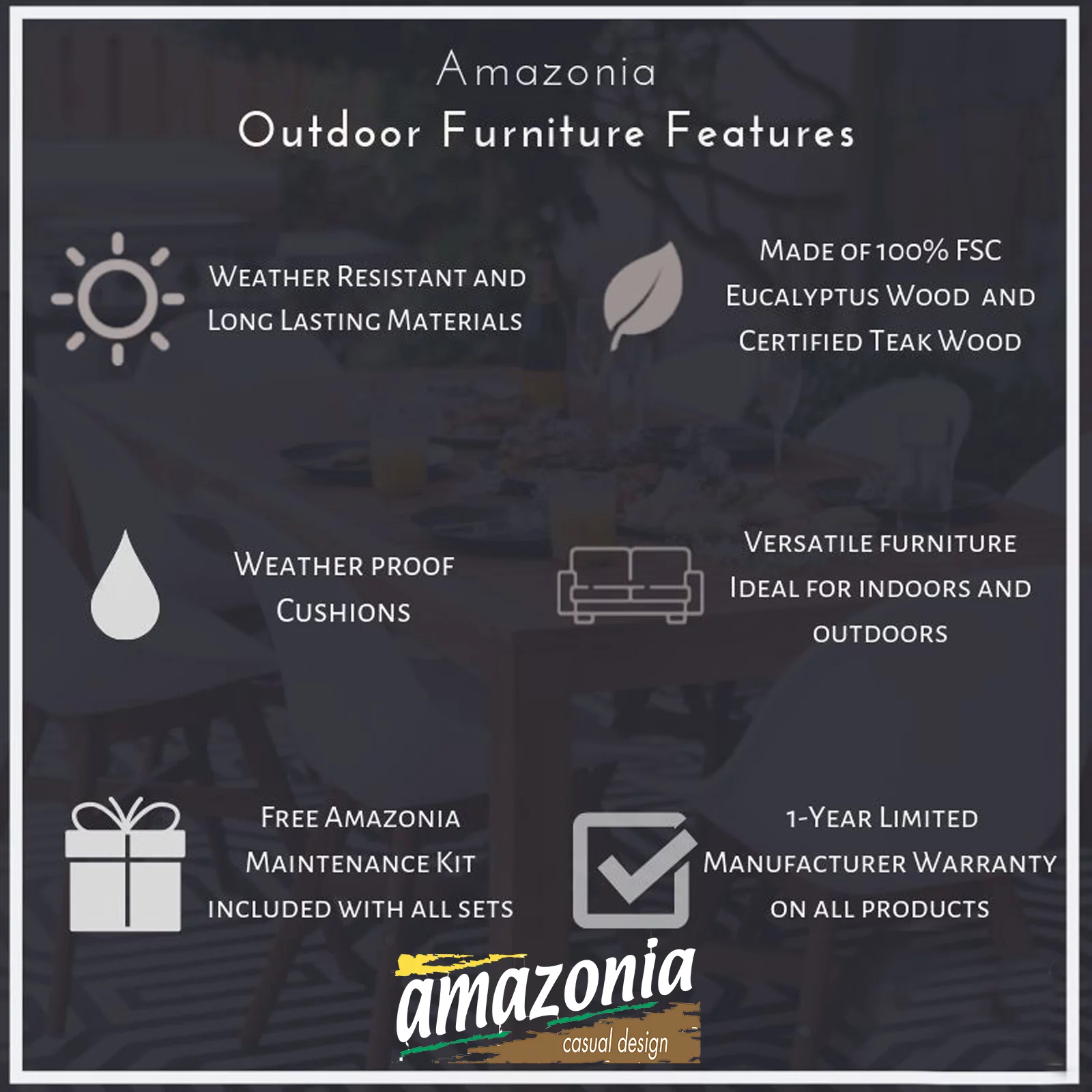 Amazonia Pierre Teak Finish & Aluminum Patio Stacking Sofa Chairs, Set of 2, Black