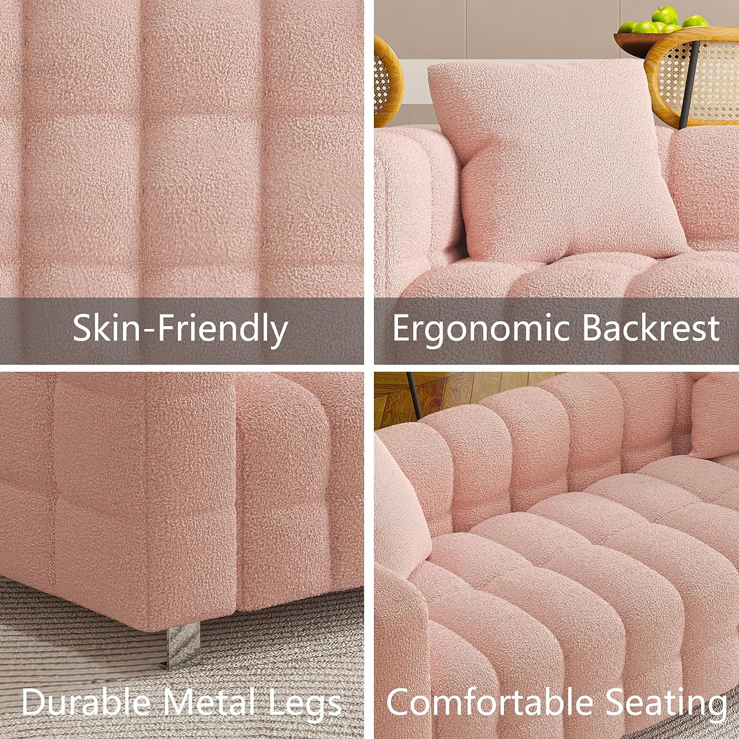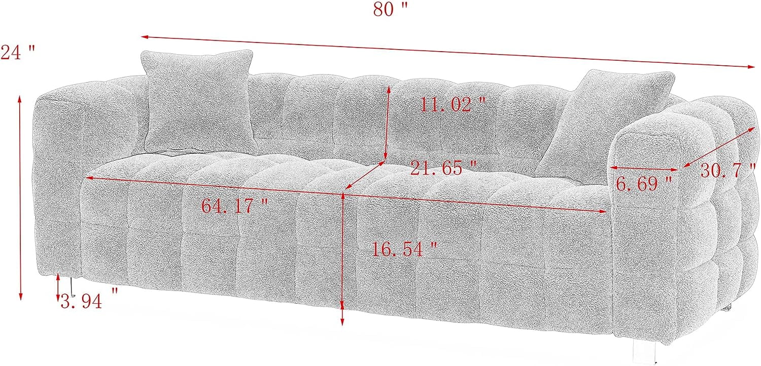 SZLIZCCC 80" Pink Teddy Velvet Sofa, Upholstered Tufted 3 Seater Couch with Two Pillows, Modern Sofa Bubble Couch Loveseat Sofa for Living Room Bedroom