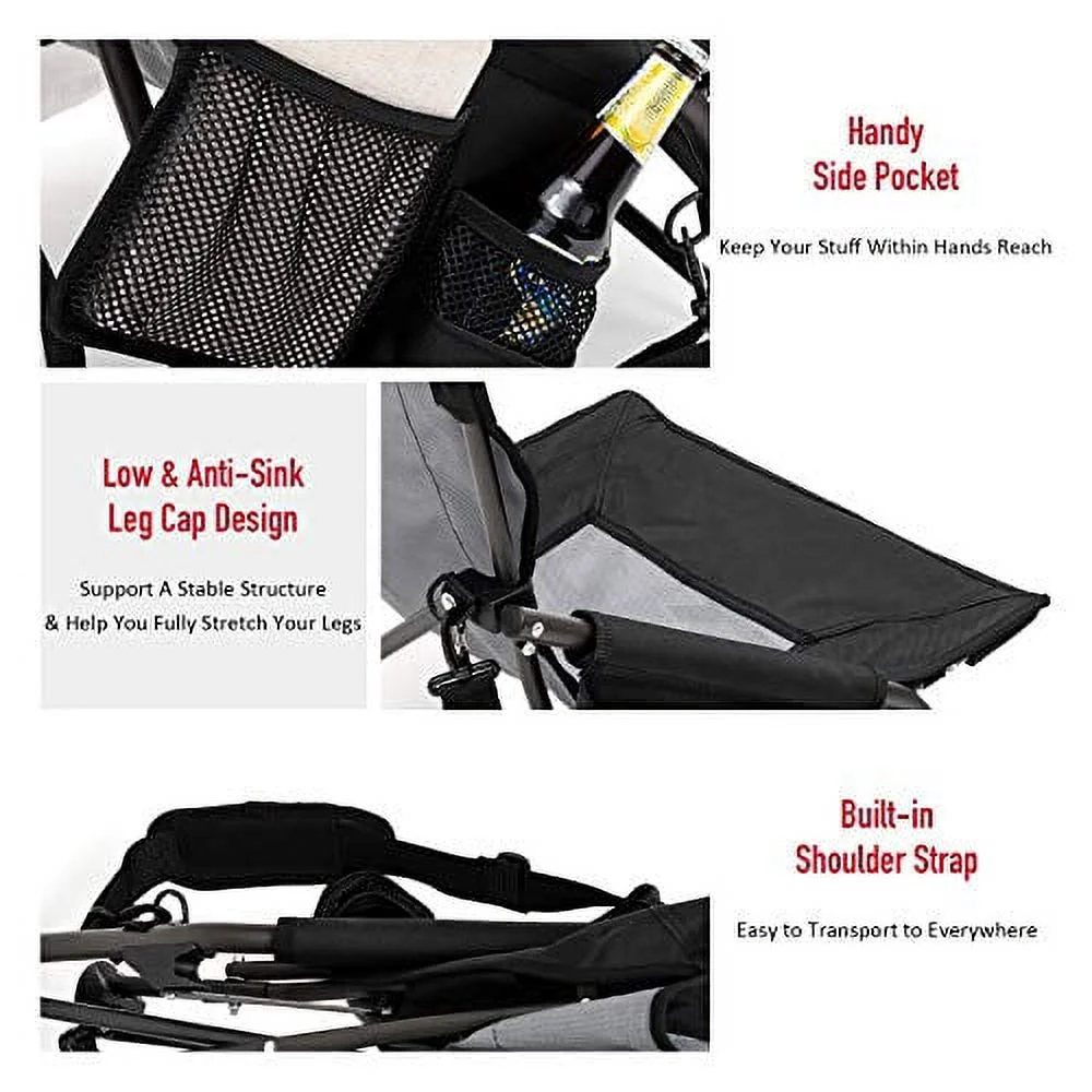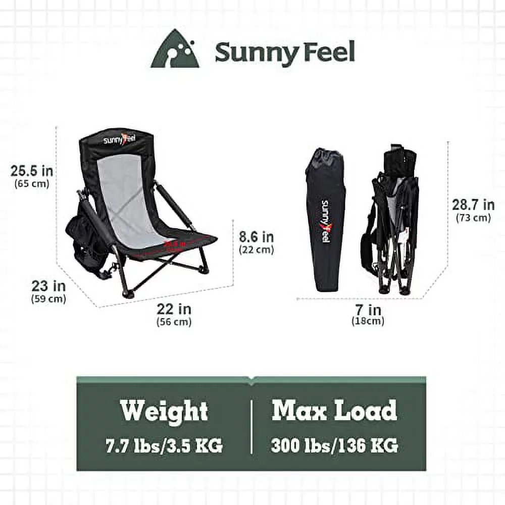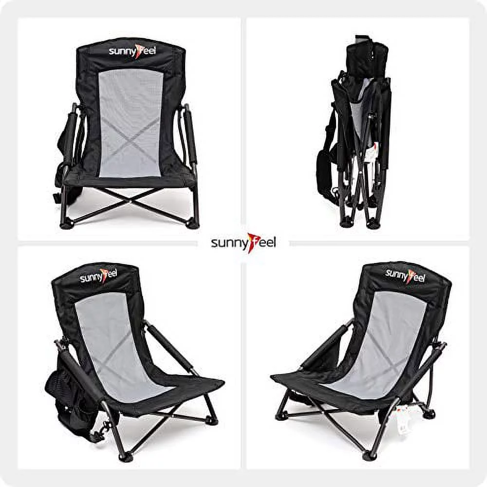 SunnyFeel Low Beach Chair Folding Camping Backpacking Chairs Mesh Back with Sling Strap, Compact & Heavy Duty for Adults (2 Pack Black)
