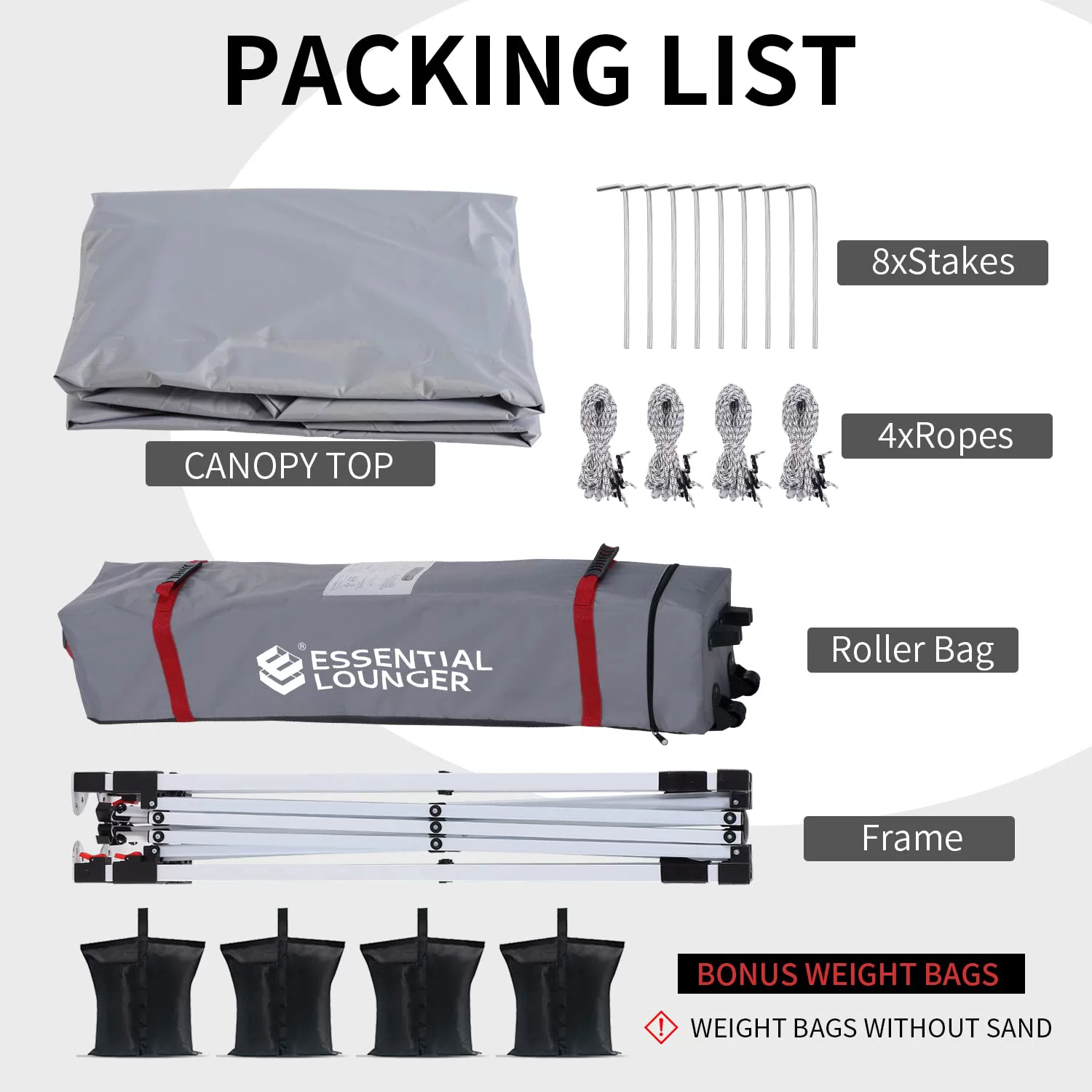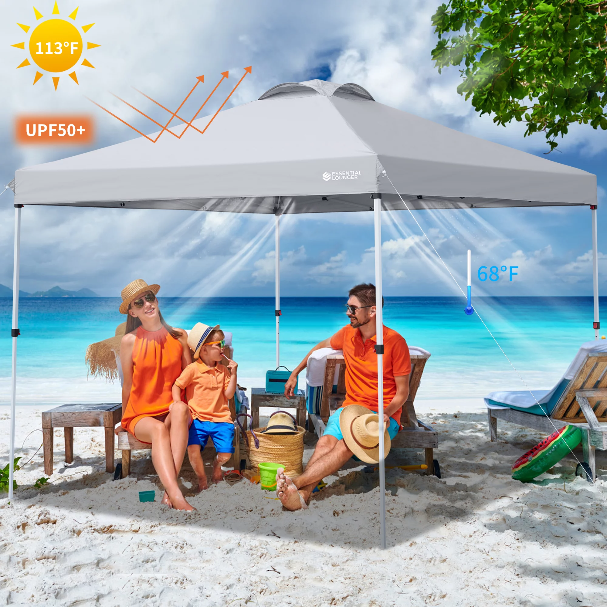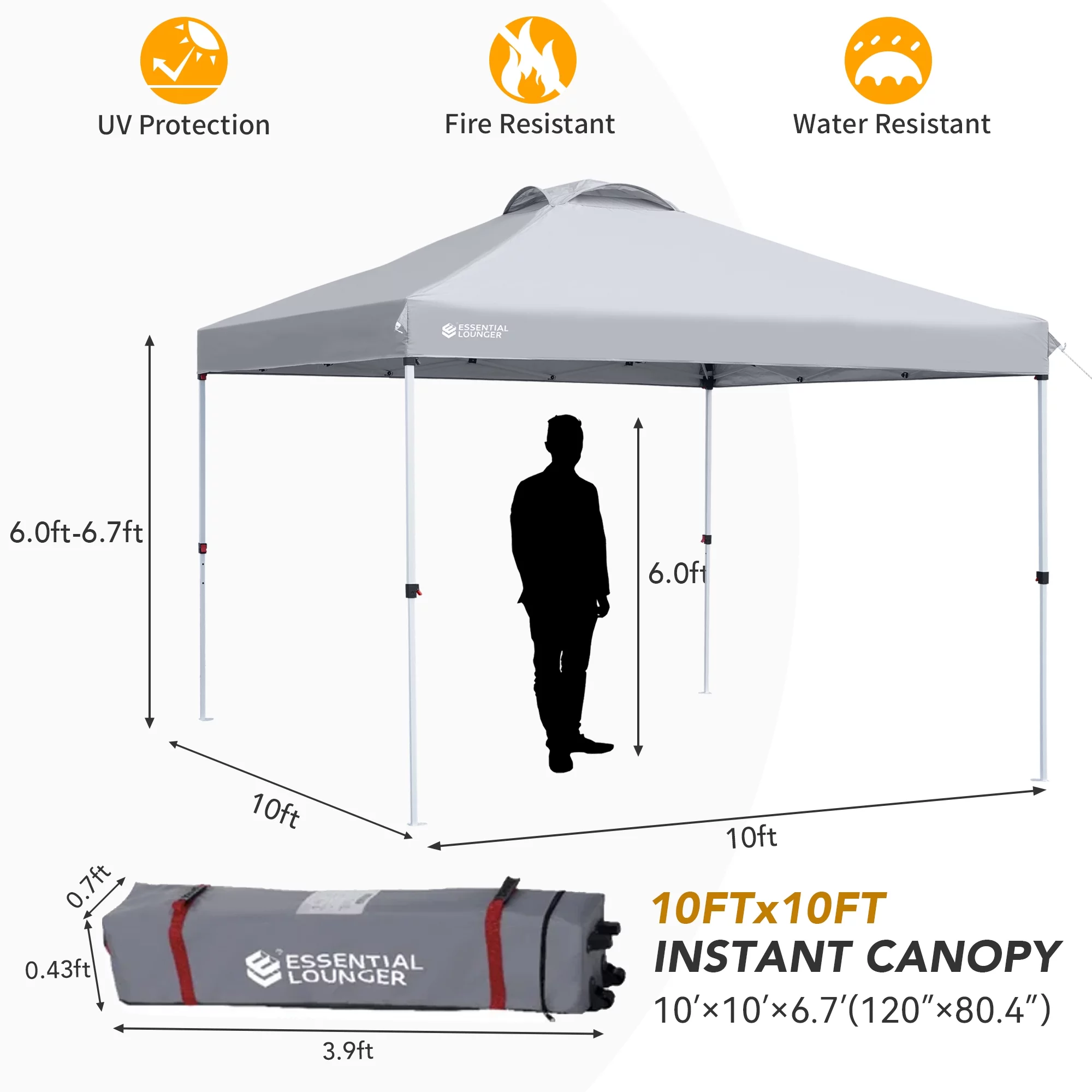 ESSENTIAL LOUNGER 10x10ft Pop Up Outdoor Canopy Tent- Waterproof Portable Tent with Wheeled Carrying Bag, Grey