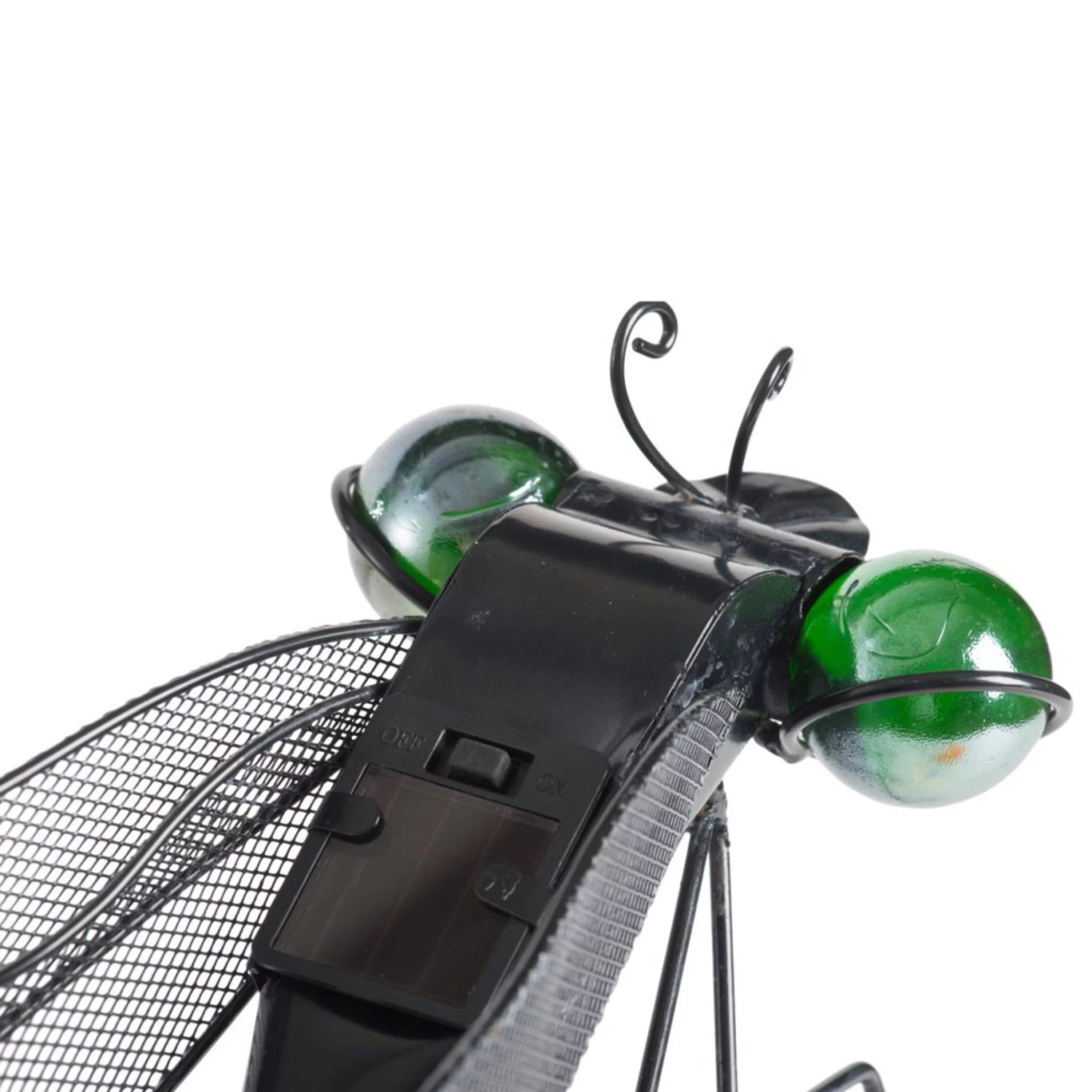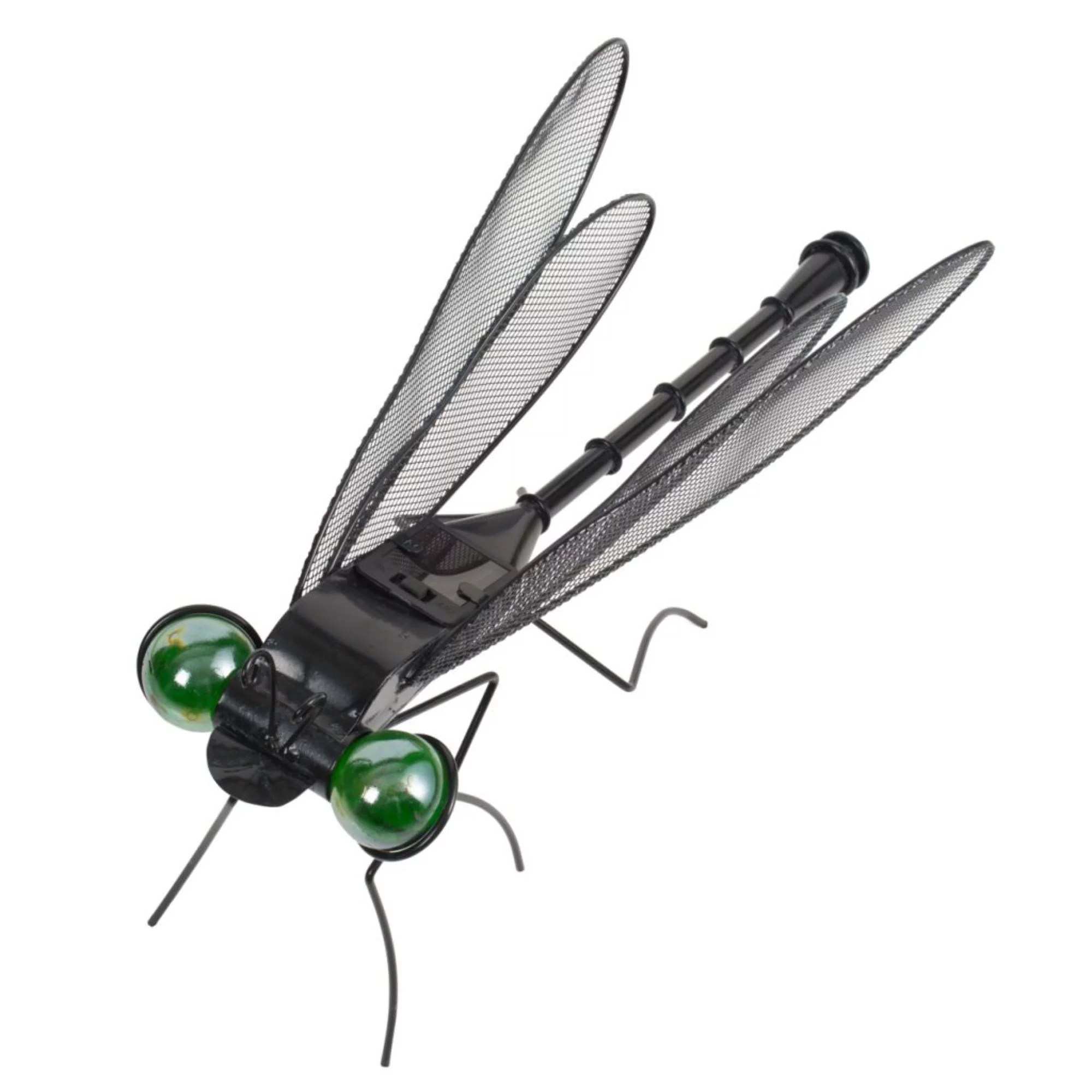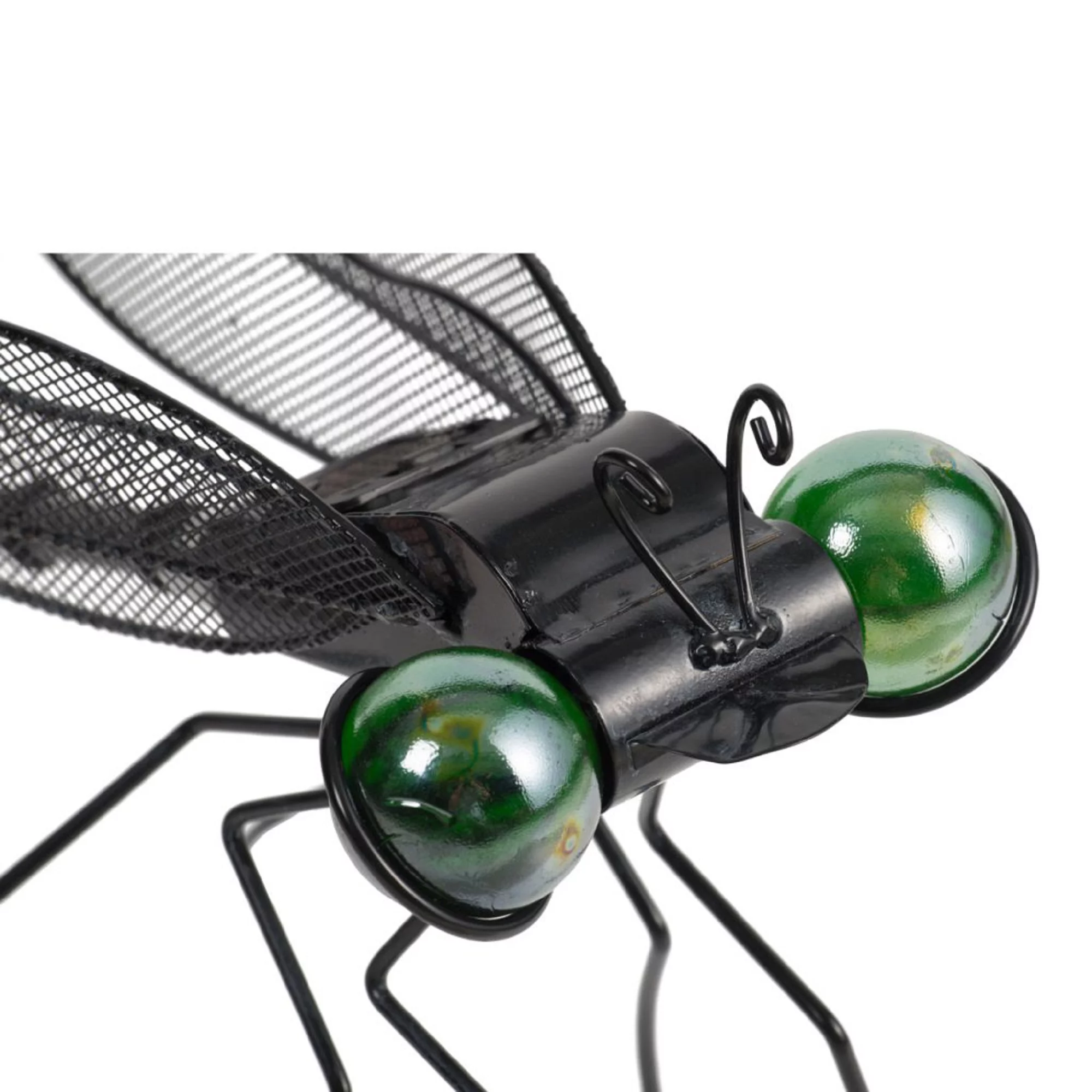 CC Home Furnishings 14.75" Night Black and Green Patio Dragonfly Shaped Decorative Figurine