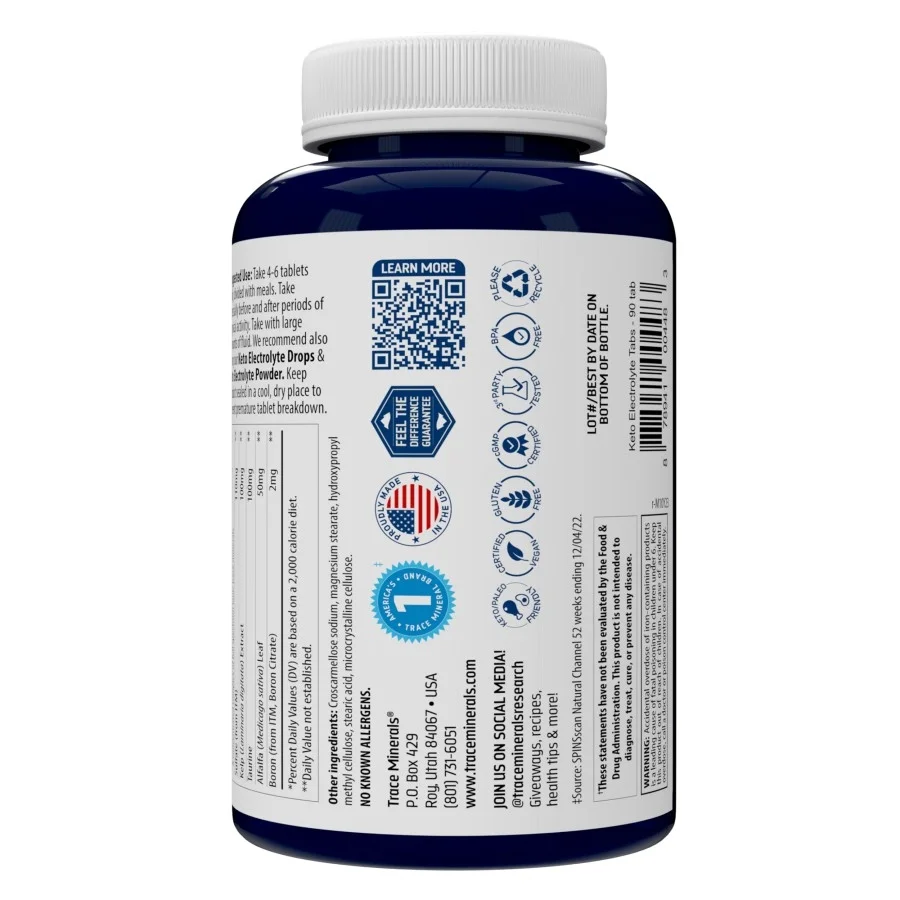 Trace Minerals Keto Electrolyte Tablets, for Dehydration, Muscle Cramps, Electrolyte Imbalance, Gluten Free, Vegan, 15 Servings