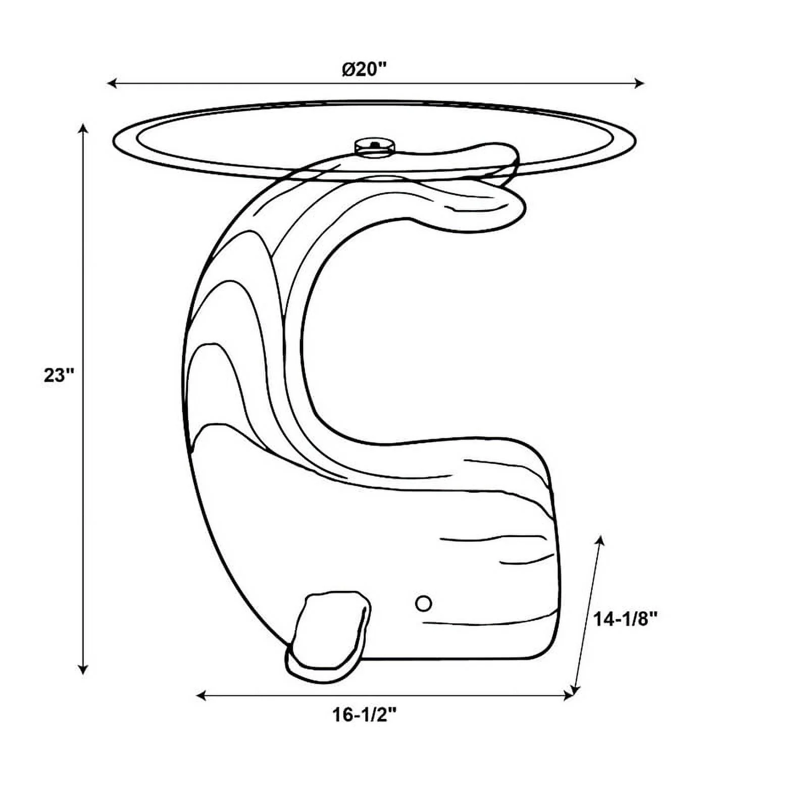Linon Mabry Whale Sculptured Glass Top Rustic Accent Table in Driftwood Finish