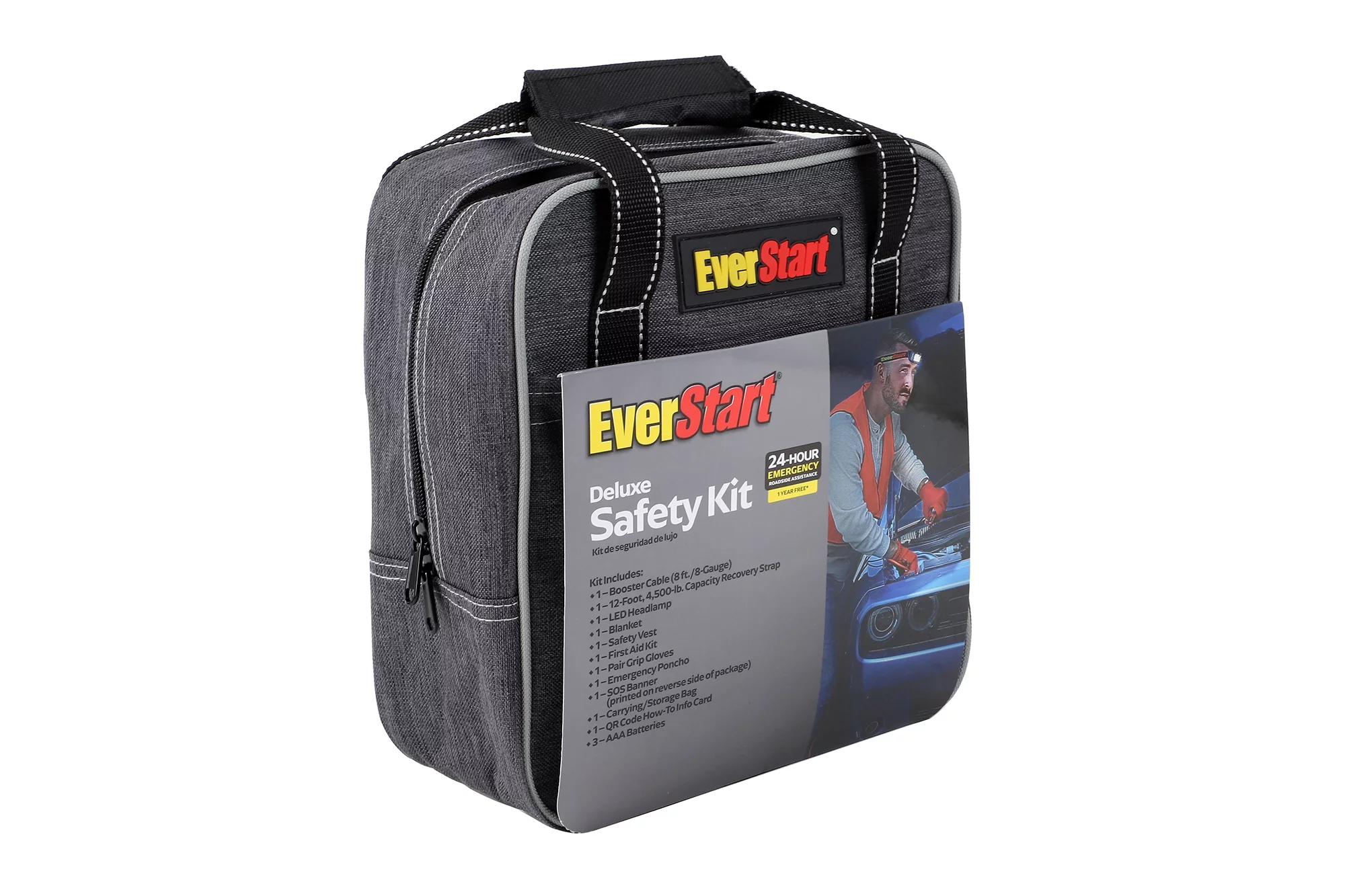 EverStart Deluxe Kit with Booster Cables. Assembled Product Dimensions: 12in x 14in x 5in