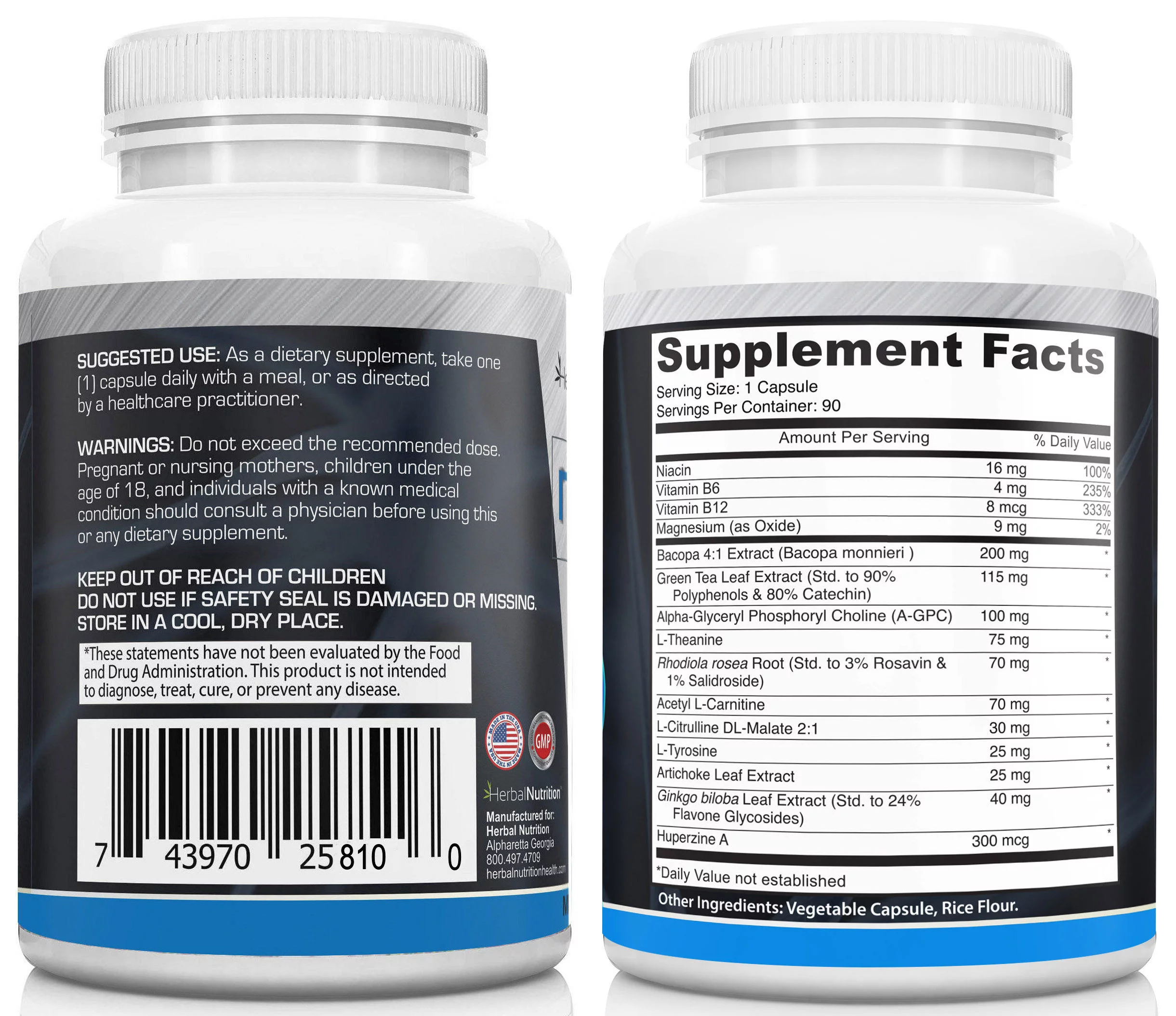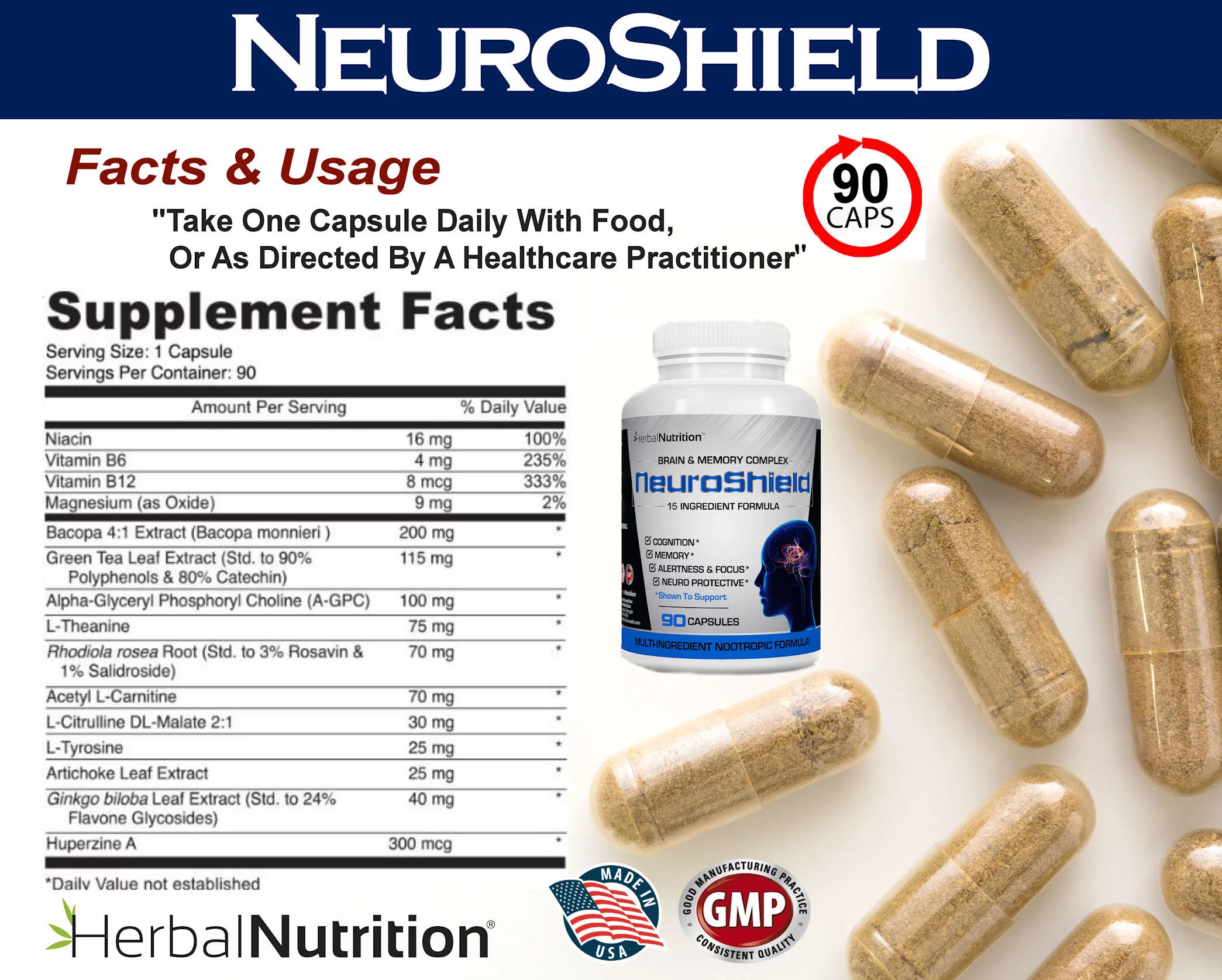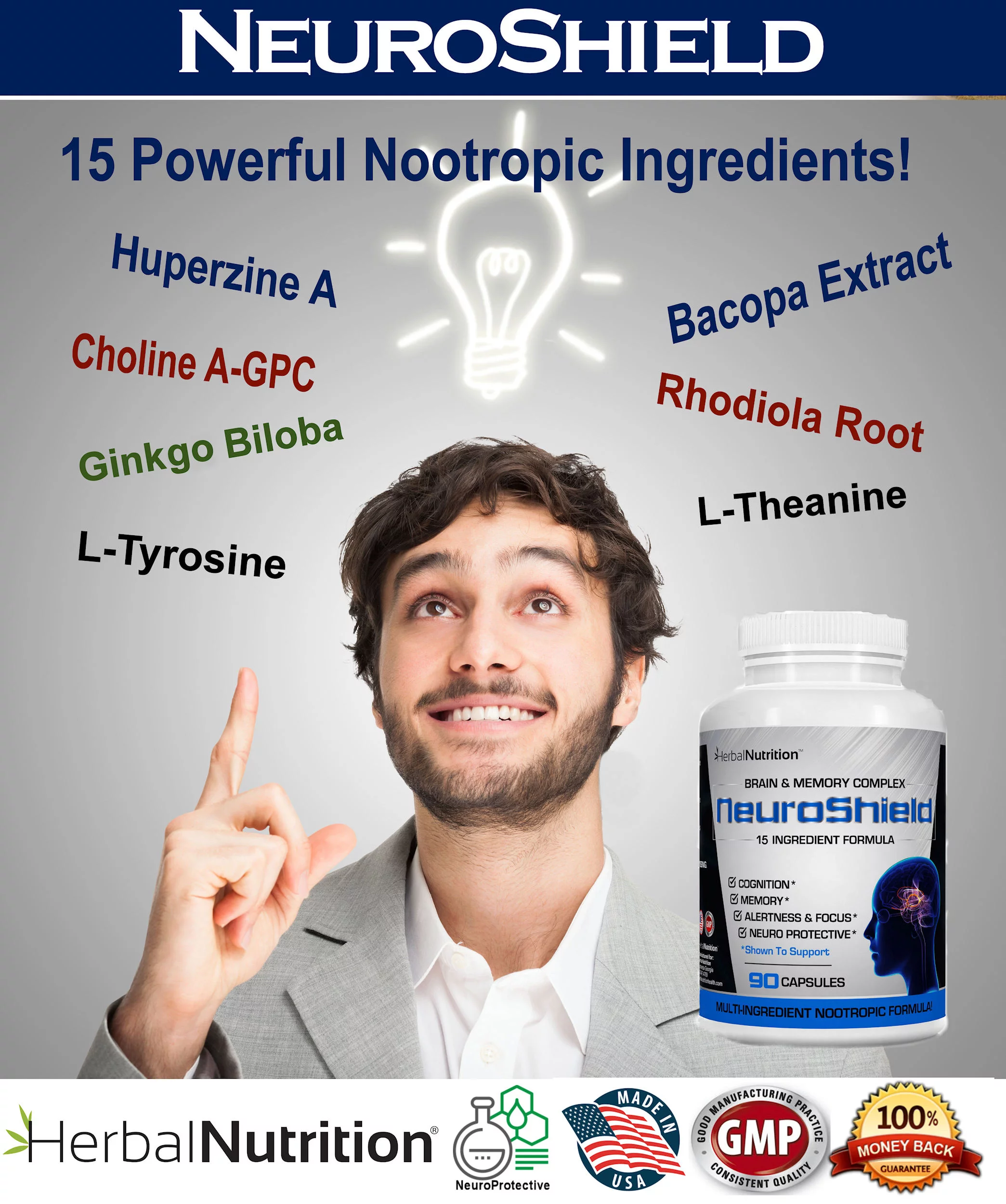 Brain Booster Supplement NeuroShield Advanced Memory Formula with Bacopa, Huperzine-A and More One Bottle