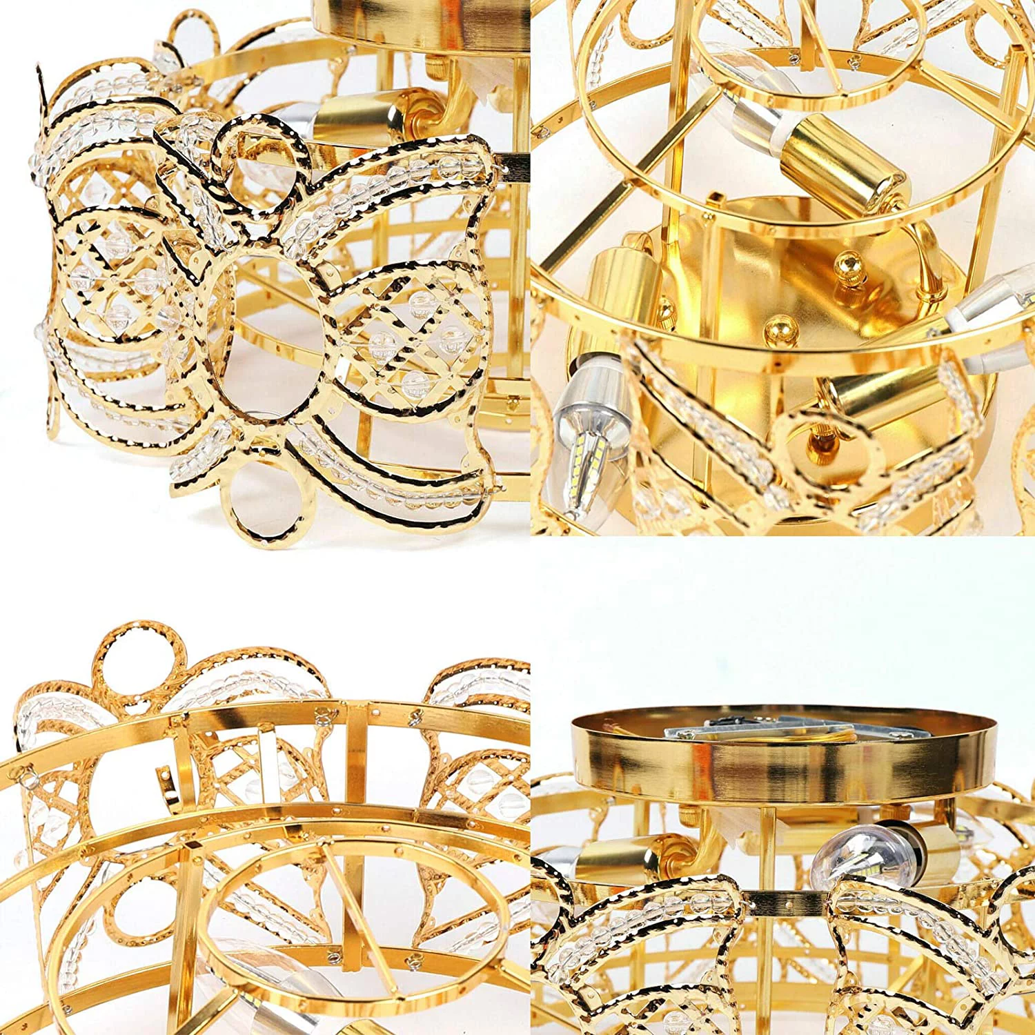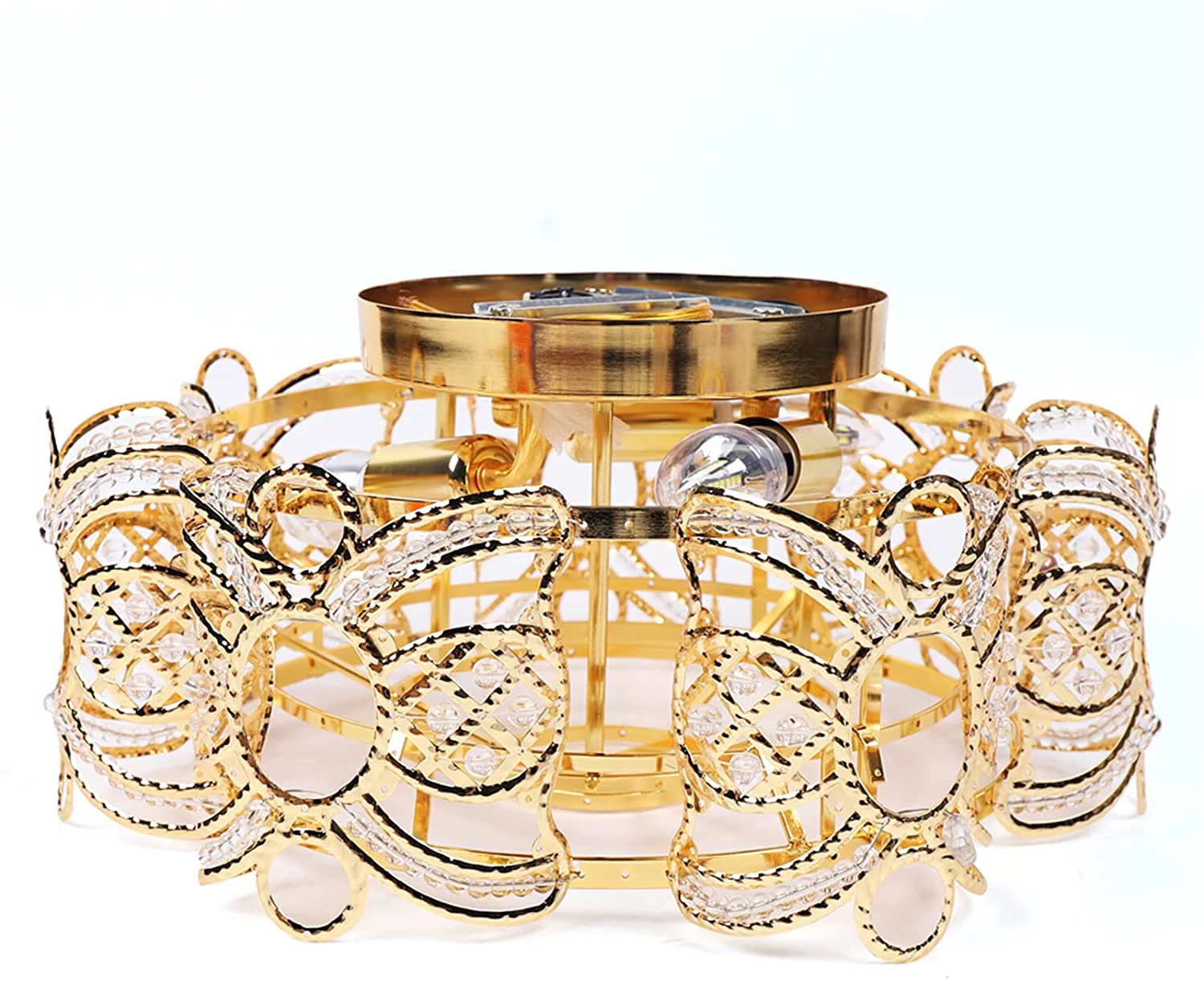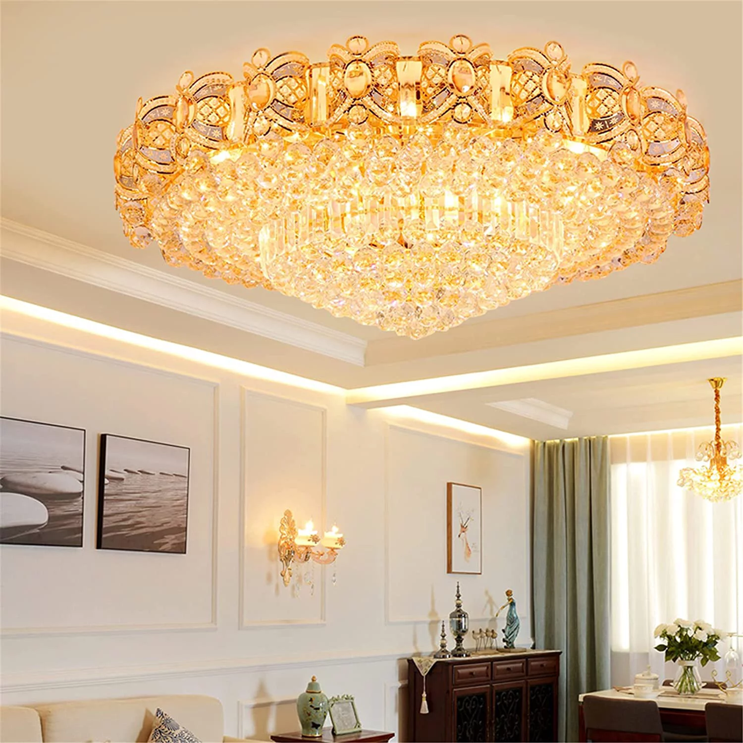 ANQIDI 15.75In 40W Luxury K9 Crystal Chandelier Modern Round LED Ceiling Light for Living Room Kitchen