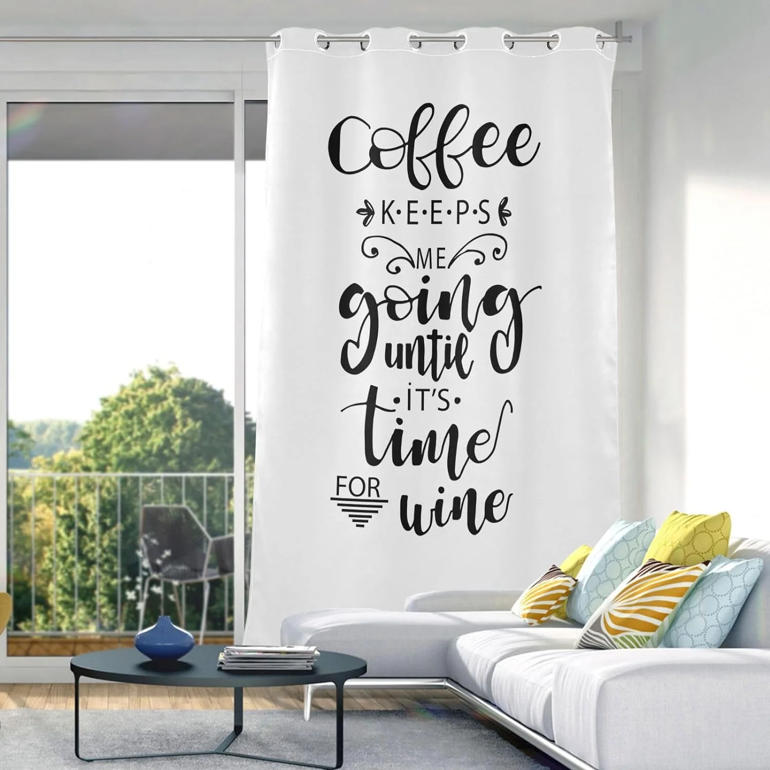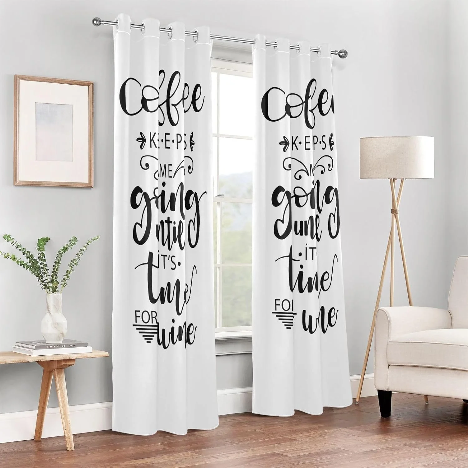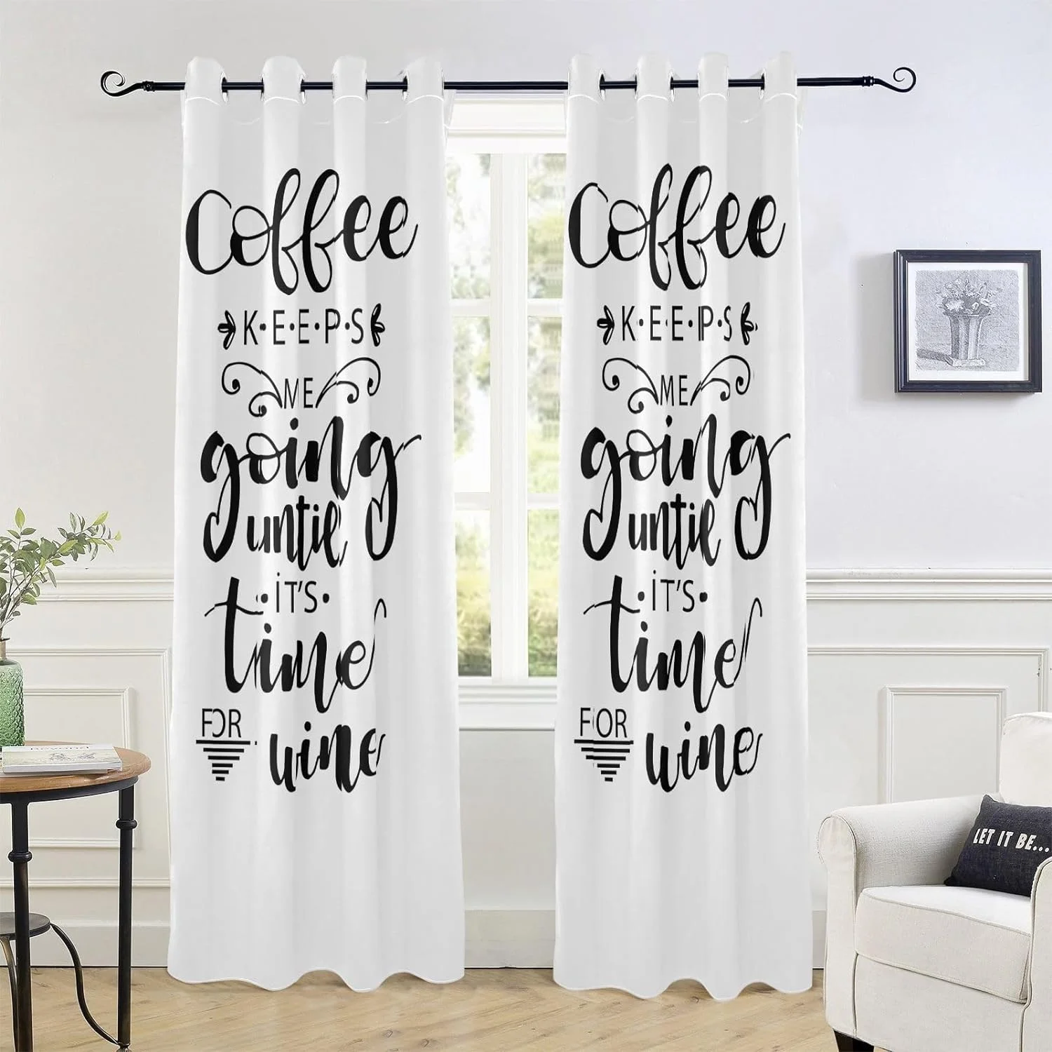 Coolnut Blackout Curtains for Bedroom Living Room 84" Coffee Keeps Me Going Until It's Time for Wine Drapes for Sliding Glass Doors Bay Window Curtains