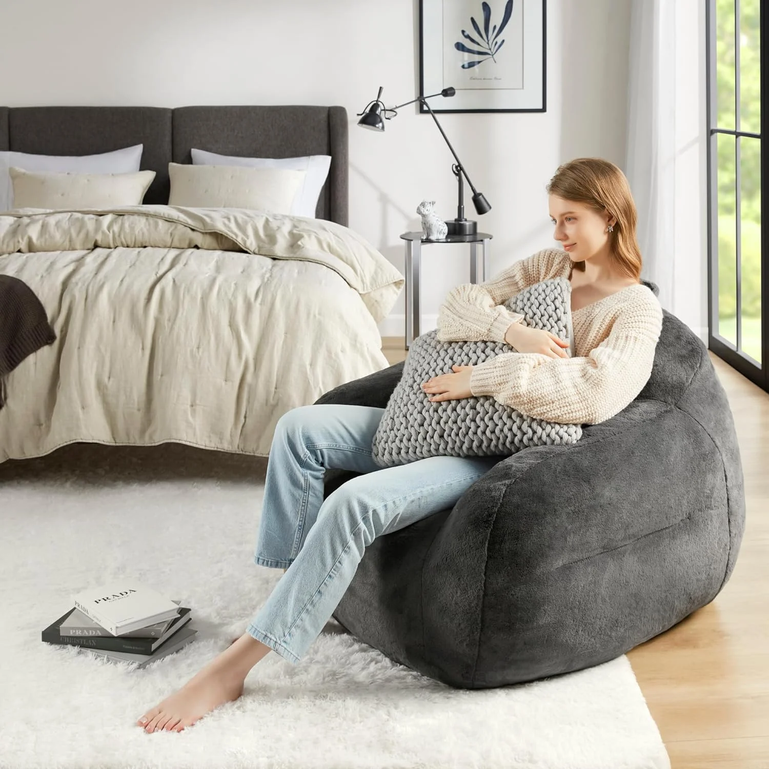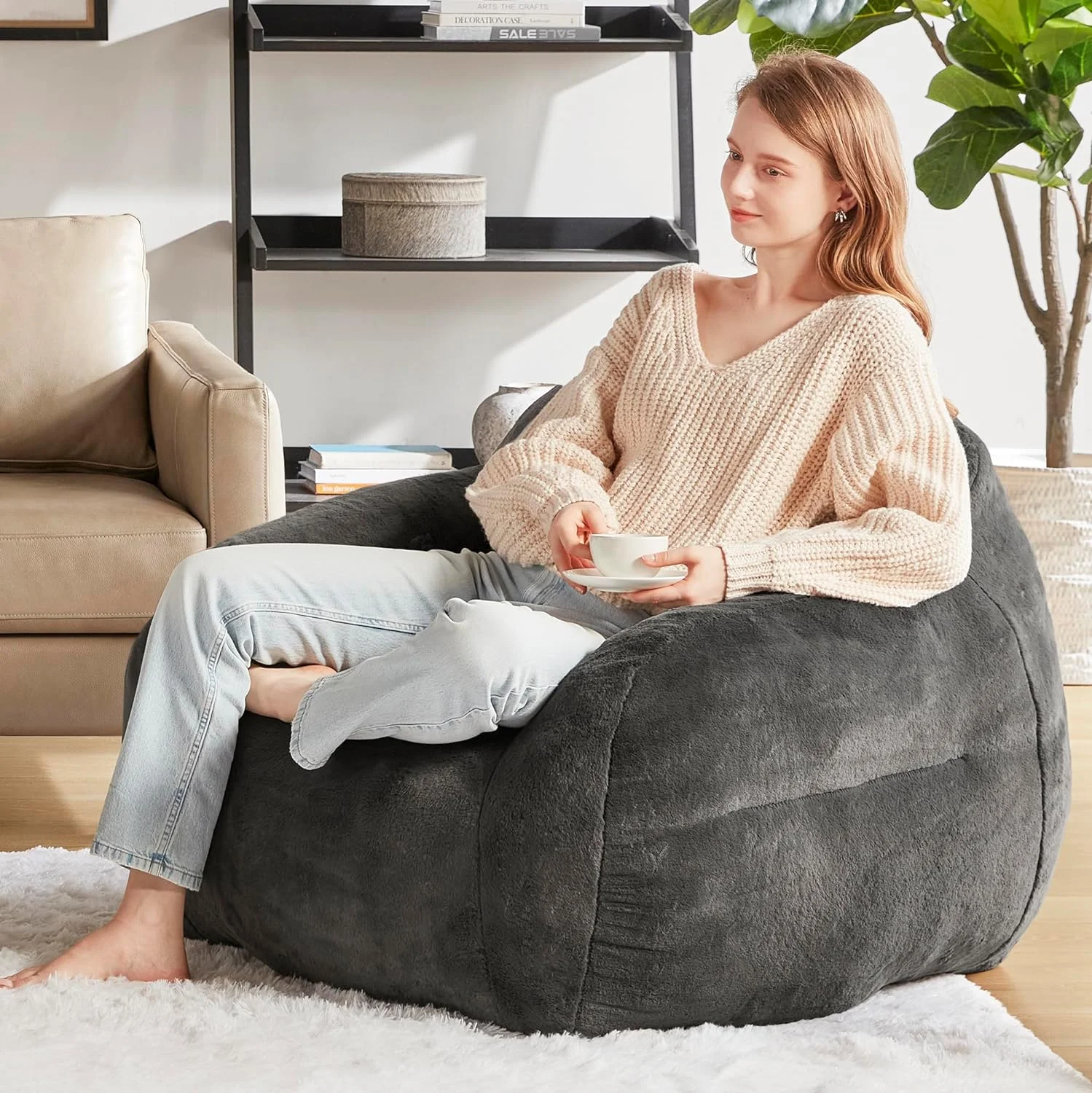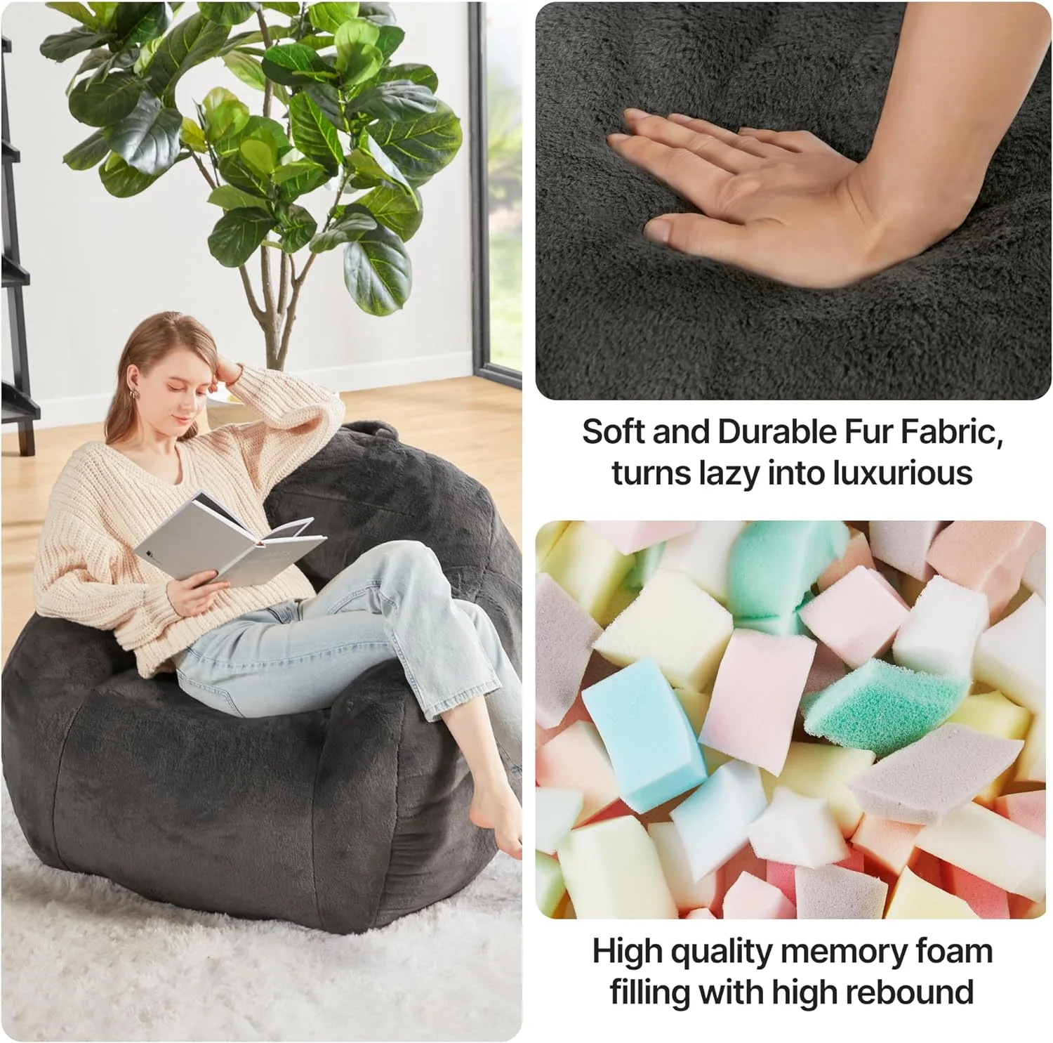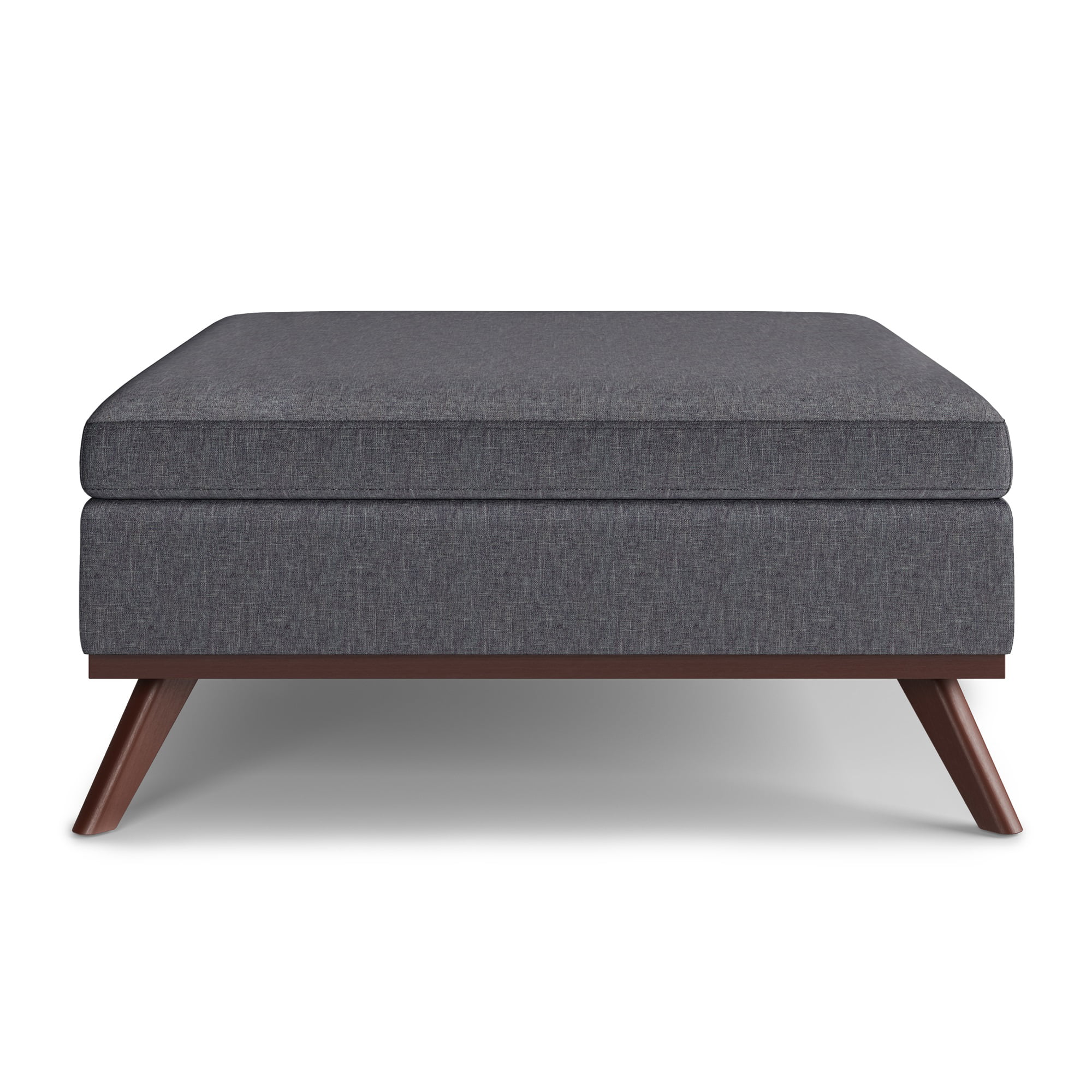 Owen 36" W Square Coffee Table Storage Ottoman in Slate Gray Linen Look Fabric