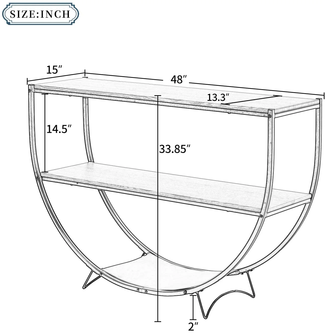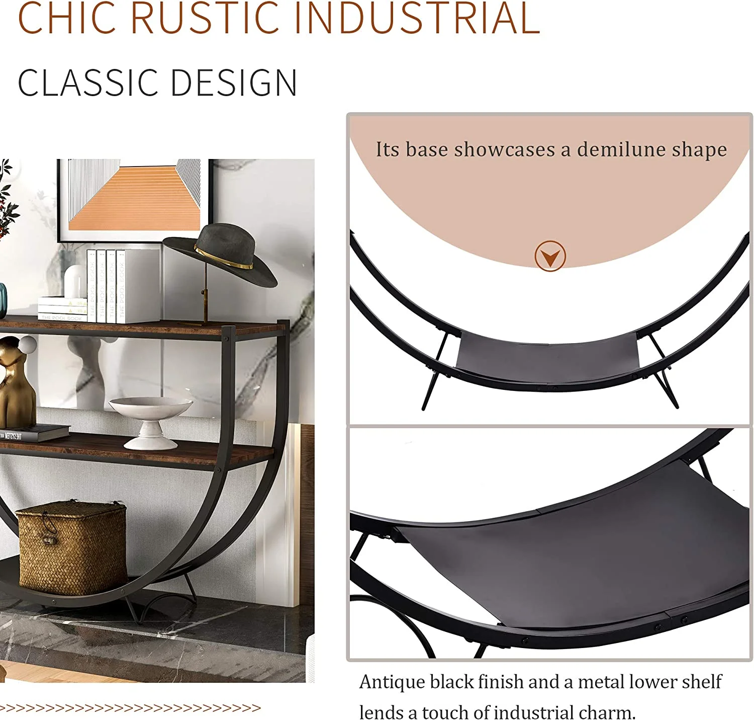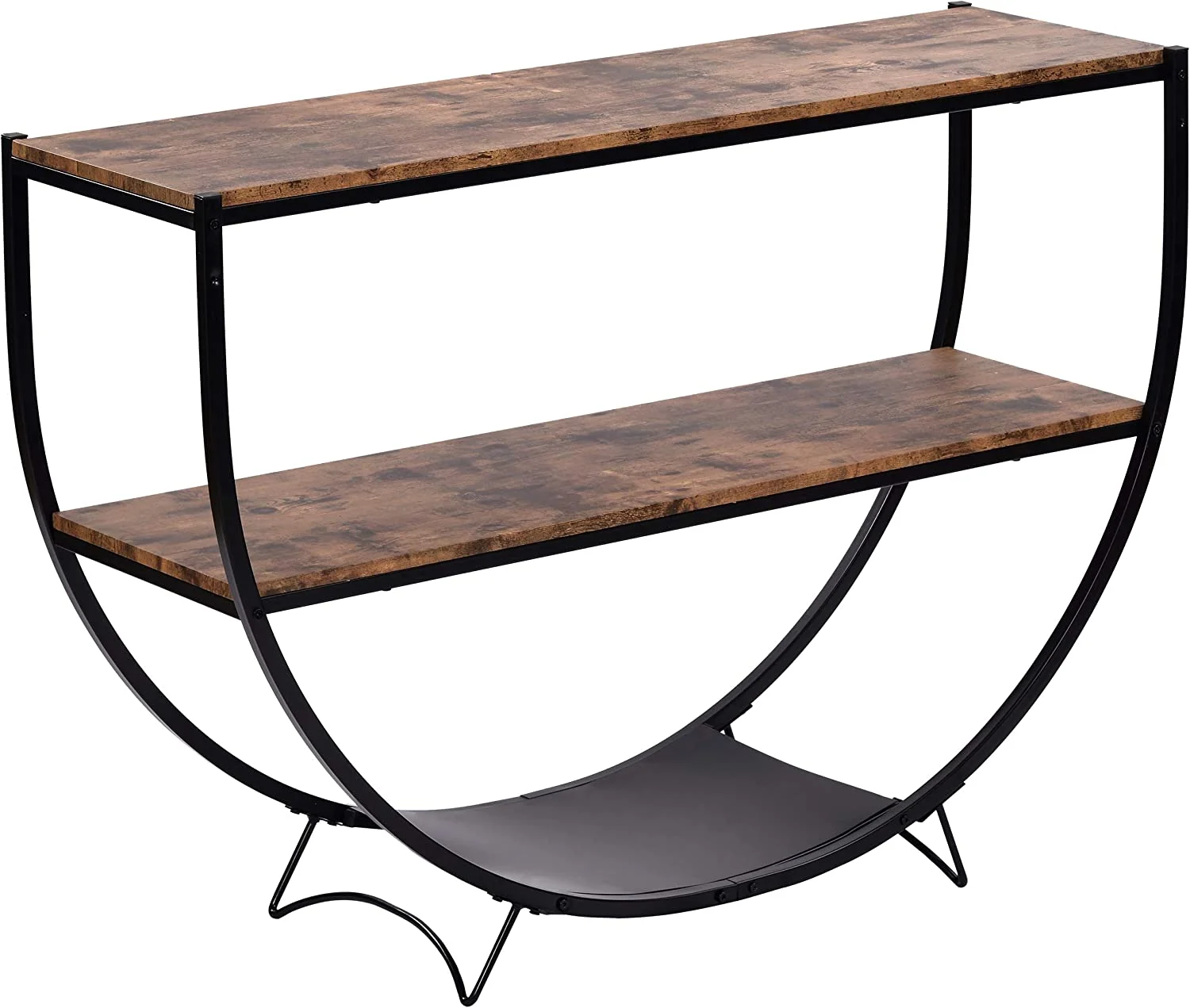 KHBIULIFE Rustic Wood Console Table Unique Semi-Circle Entryway Tables Retro 2-Tier Sofa Table with Shelves and Sturdy Metal Frame for Living Room Bedroom Accent - Distressed Brown