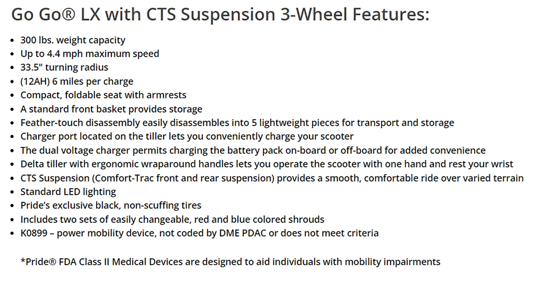 Pride Mobility GoGo LX 3-Wheel Scooter With CTS Suspension (12AH/9 Mile Battery Range) with Ext Warr