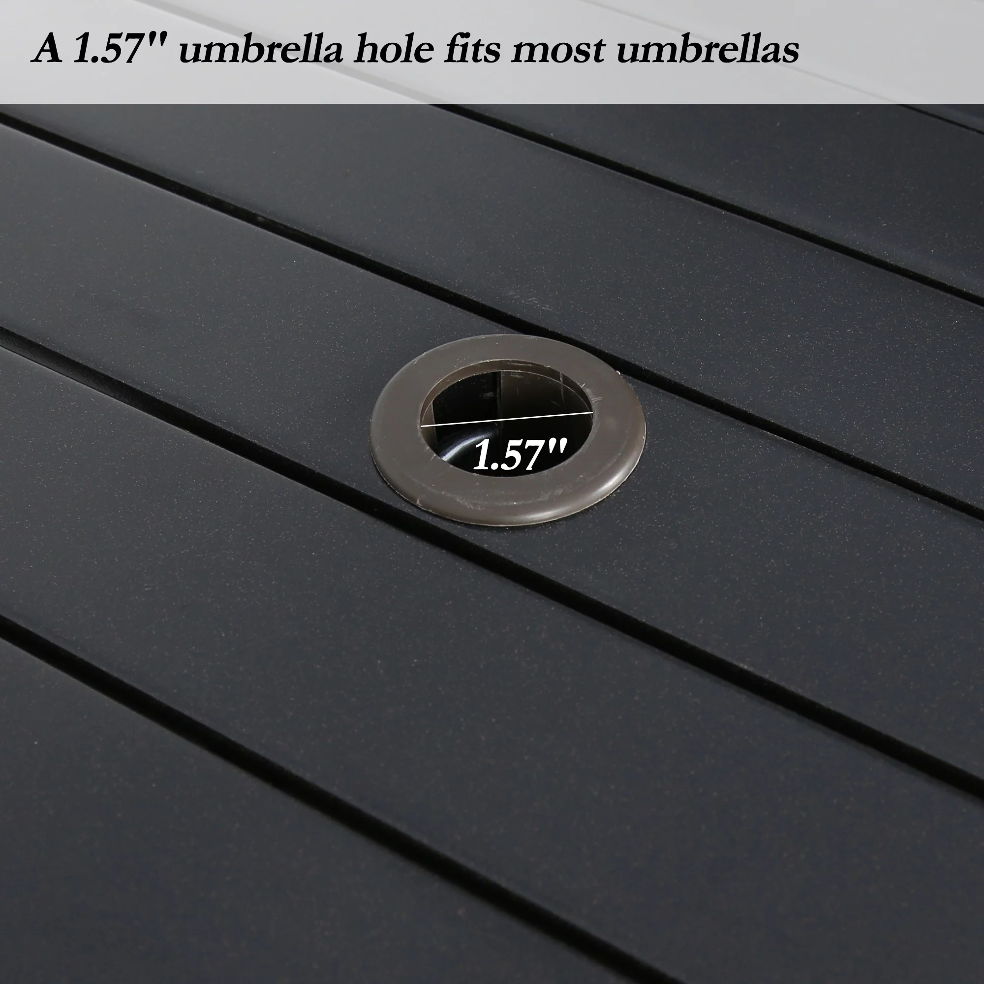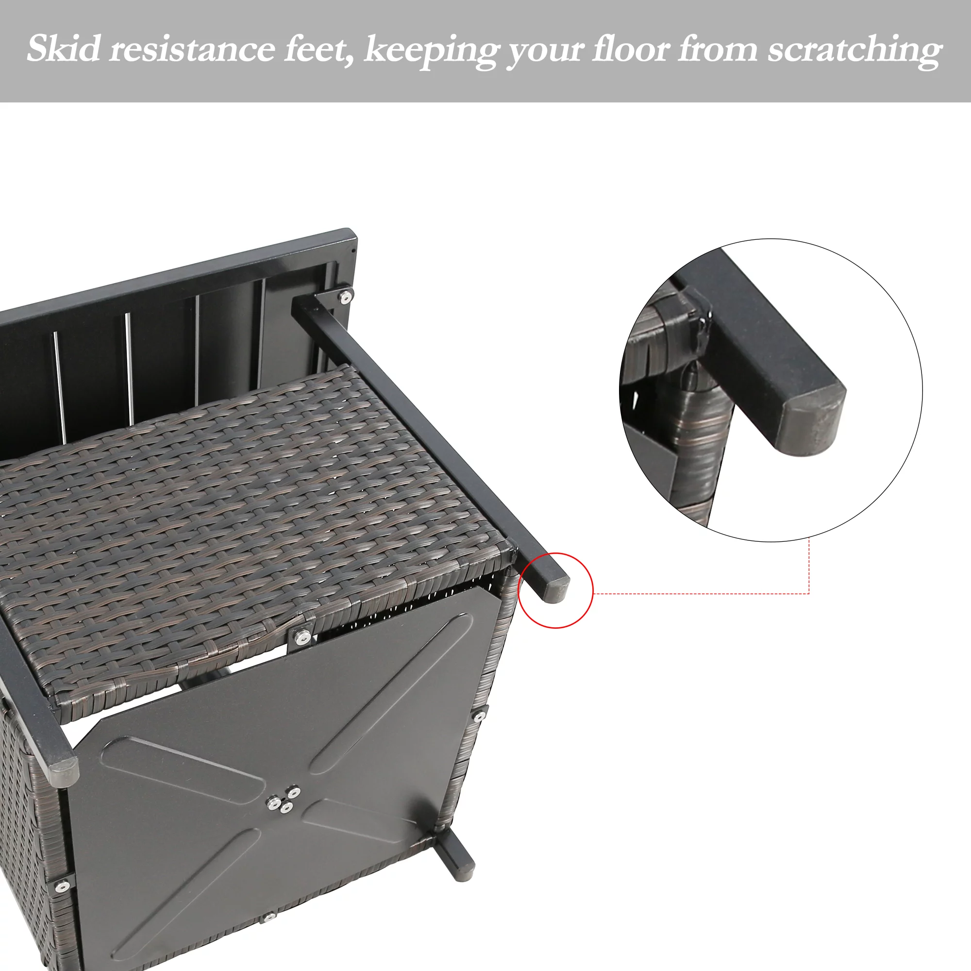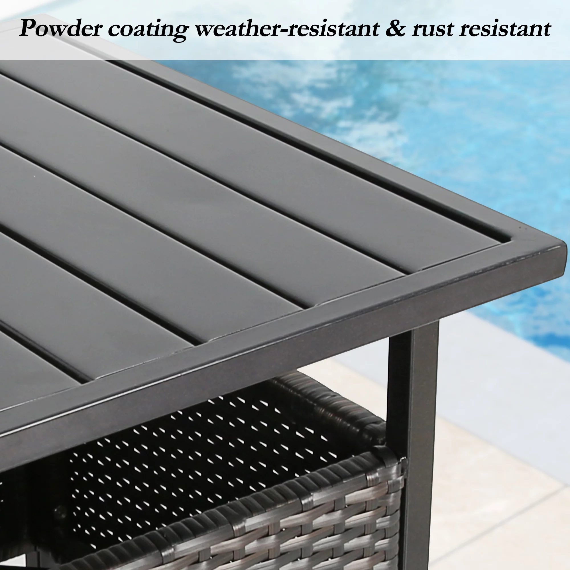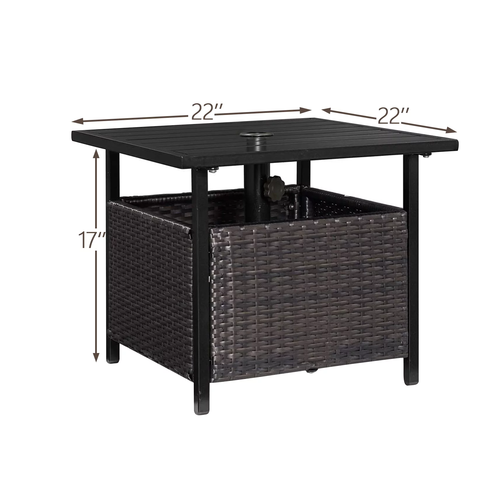 Ulax Furniture Patio PE Wicker Umbrella Side Table Stand, Outdoor Bistro Table With Umbrella Hole