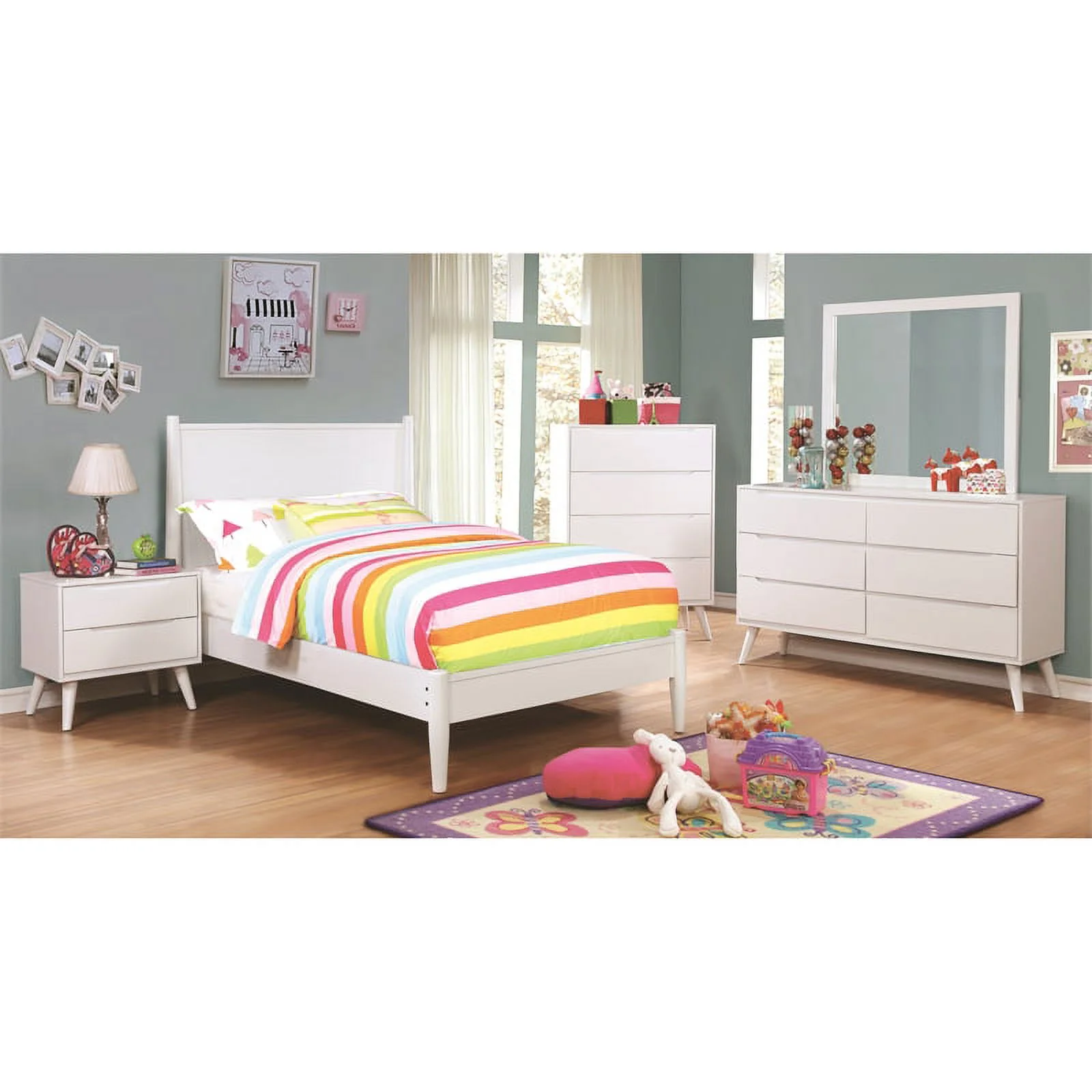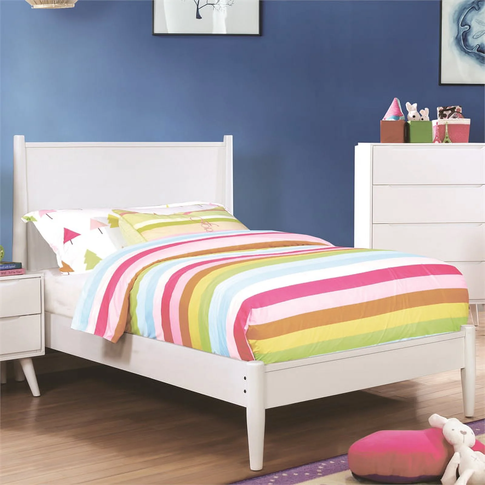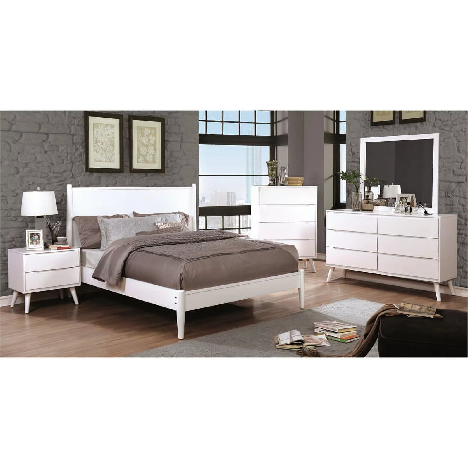 Bowery Hill Mid-Century Solid Wood King Platform Bed in White