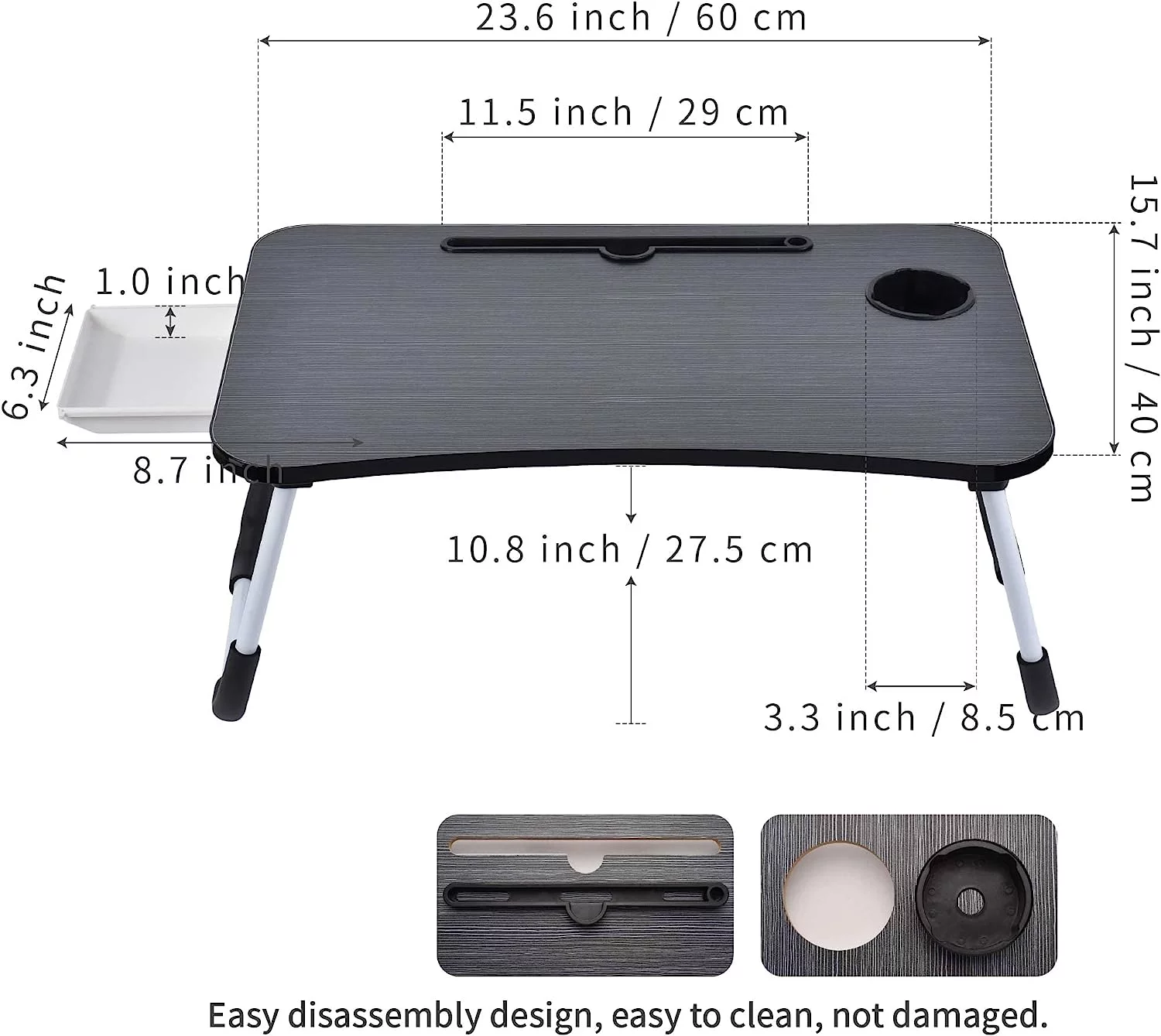 Laptop Bed Desk Table Tray Stand with Cup Holder/Drawer for Bed/Sofa/Couch/Study/Reading/Writing On Low Sitting Floor Large Portable Foldable lap desk bed trays for eating and laptops(wal