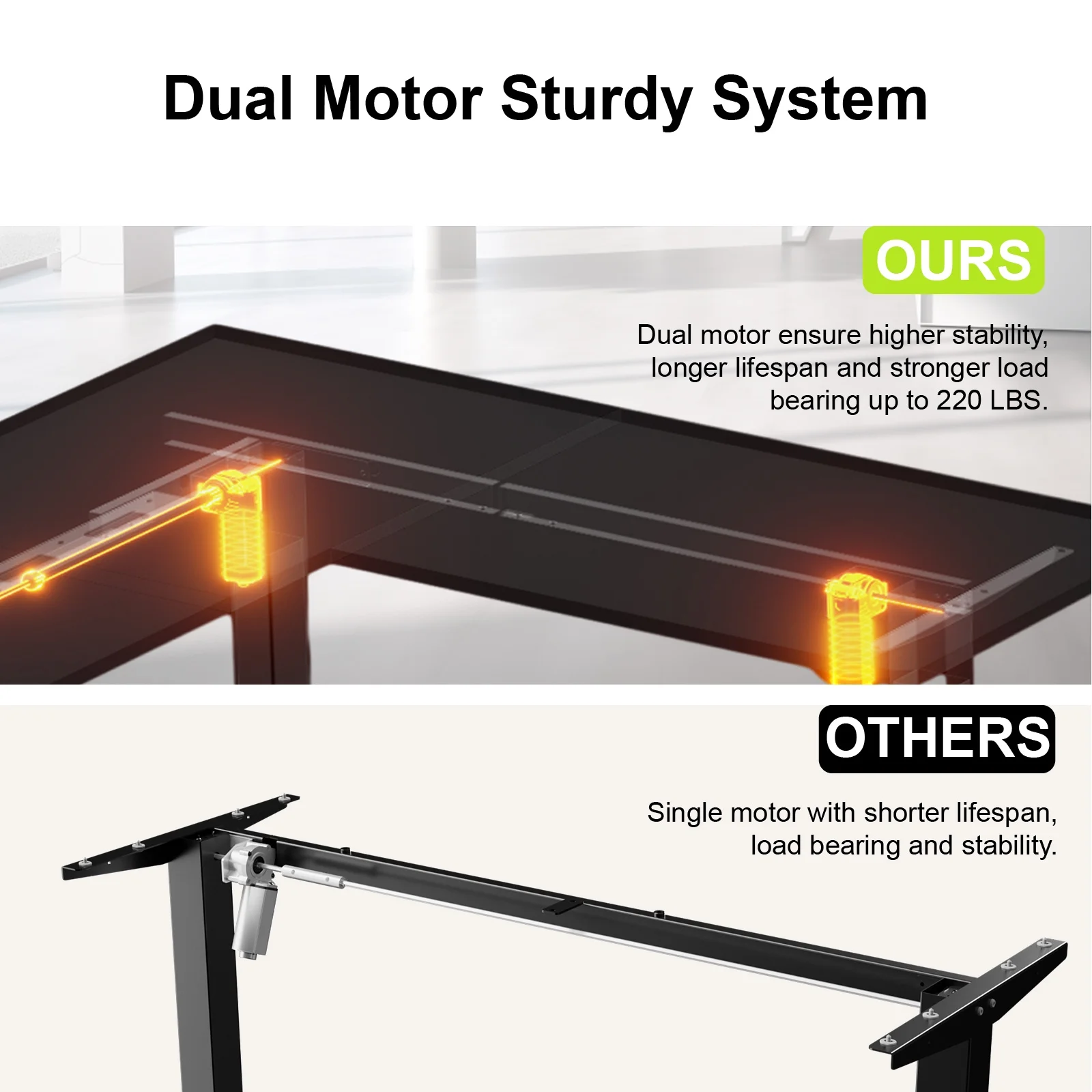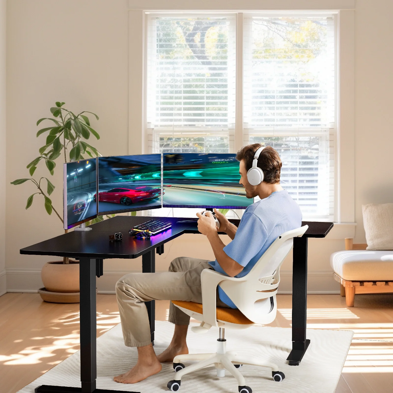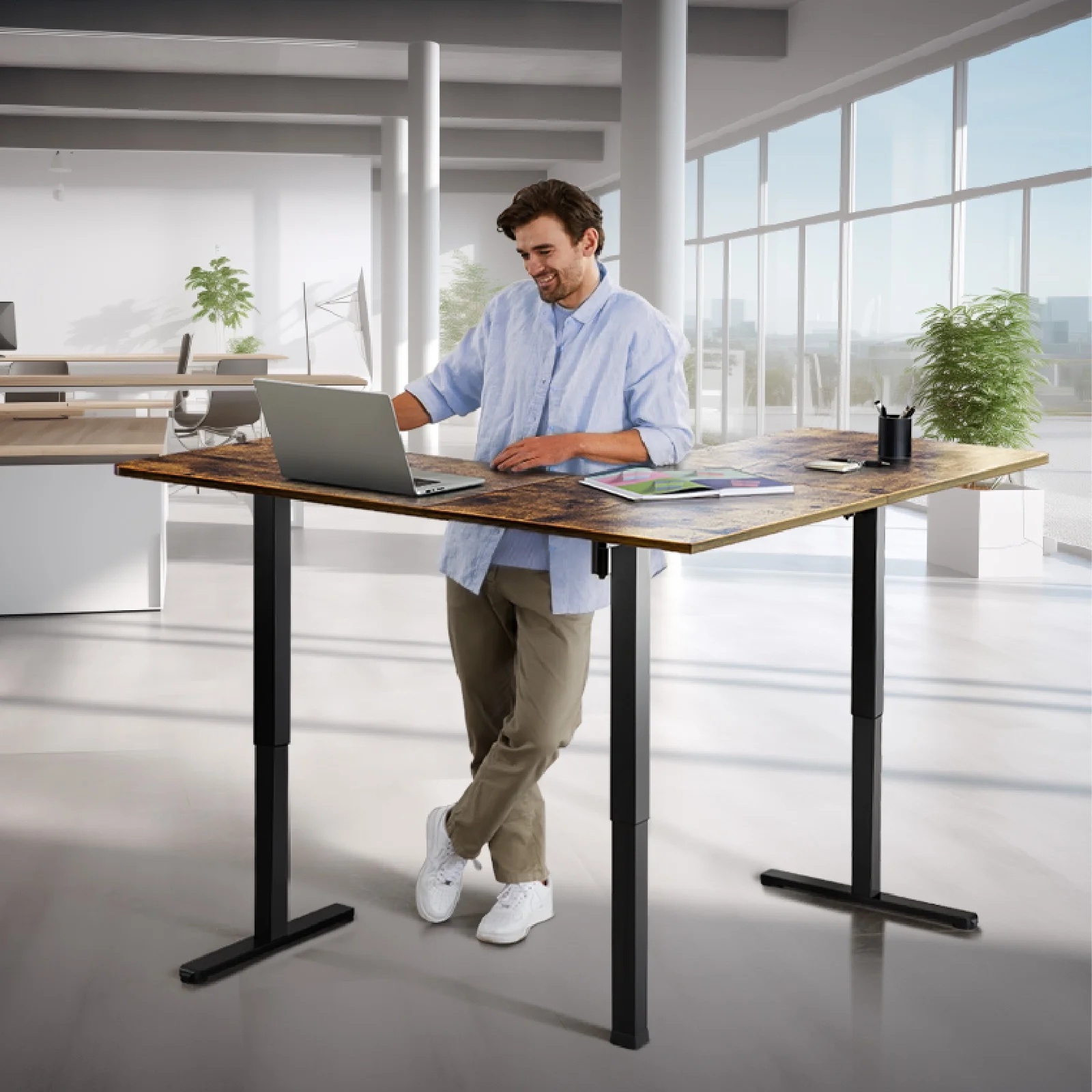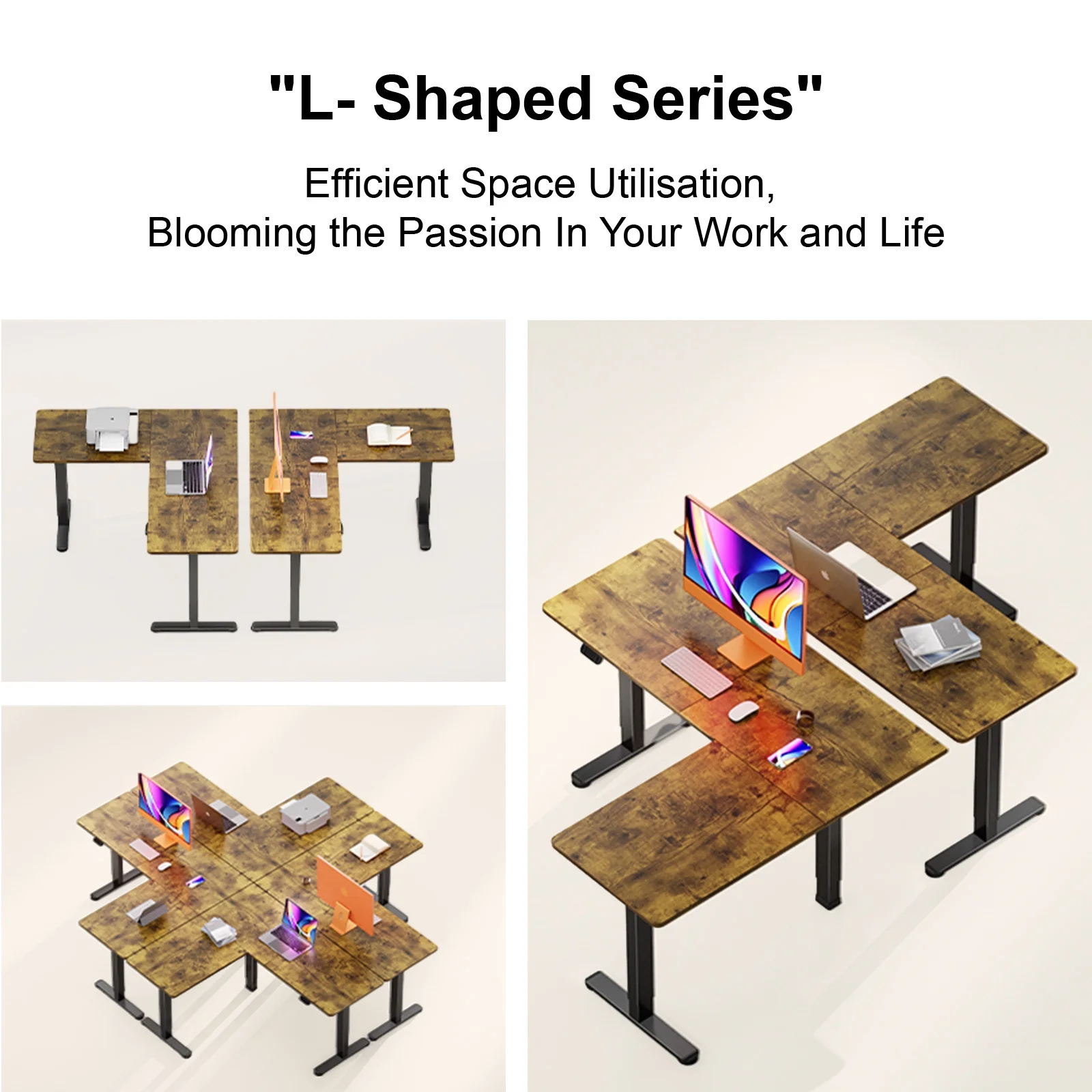 L-Shaped Electric Standing Desk, 63 inch Double Motor Height Adjustable Sit Stand up Corner Desk, Large Home Office Desk Computer Workstation, Vintage Brown
