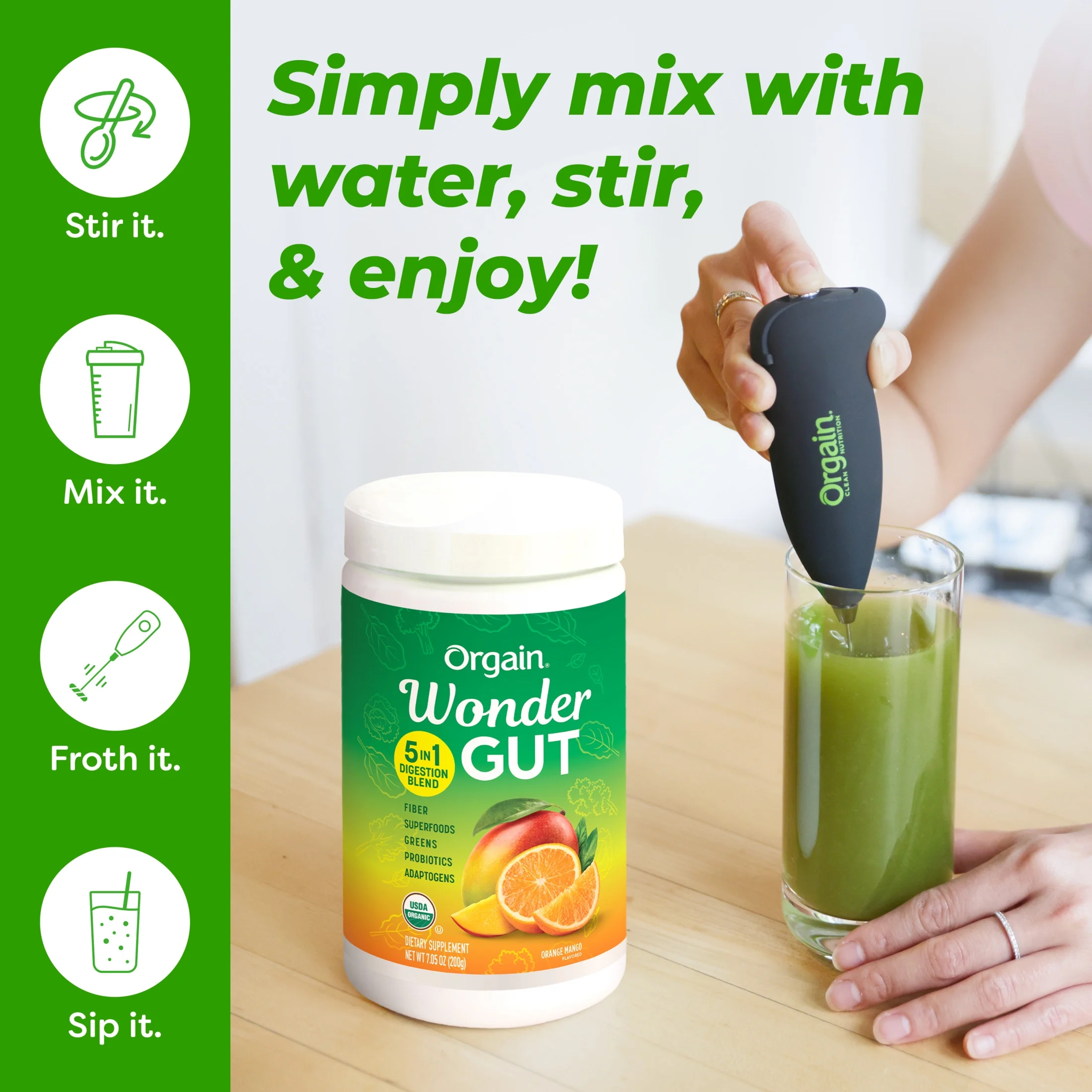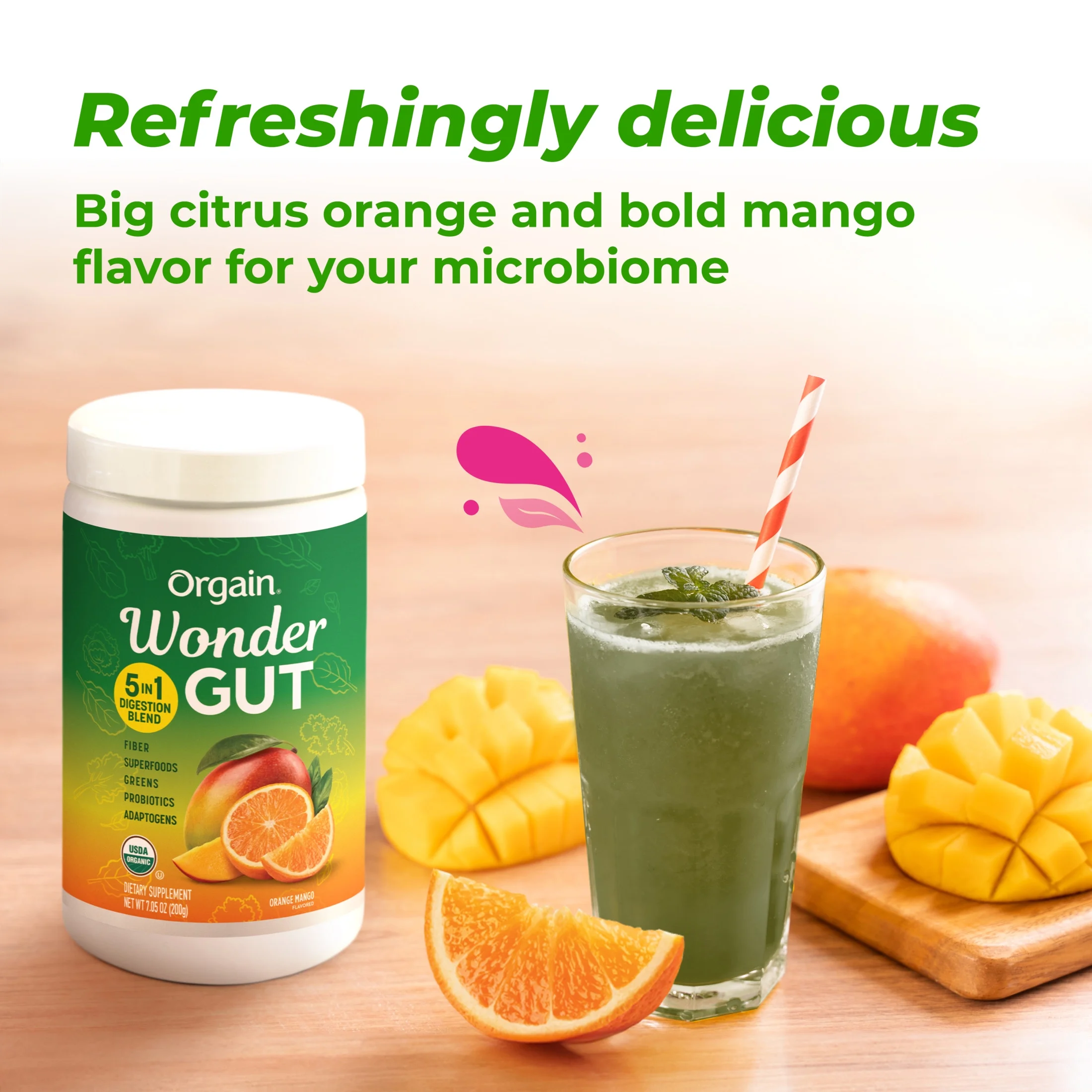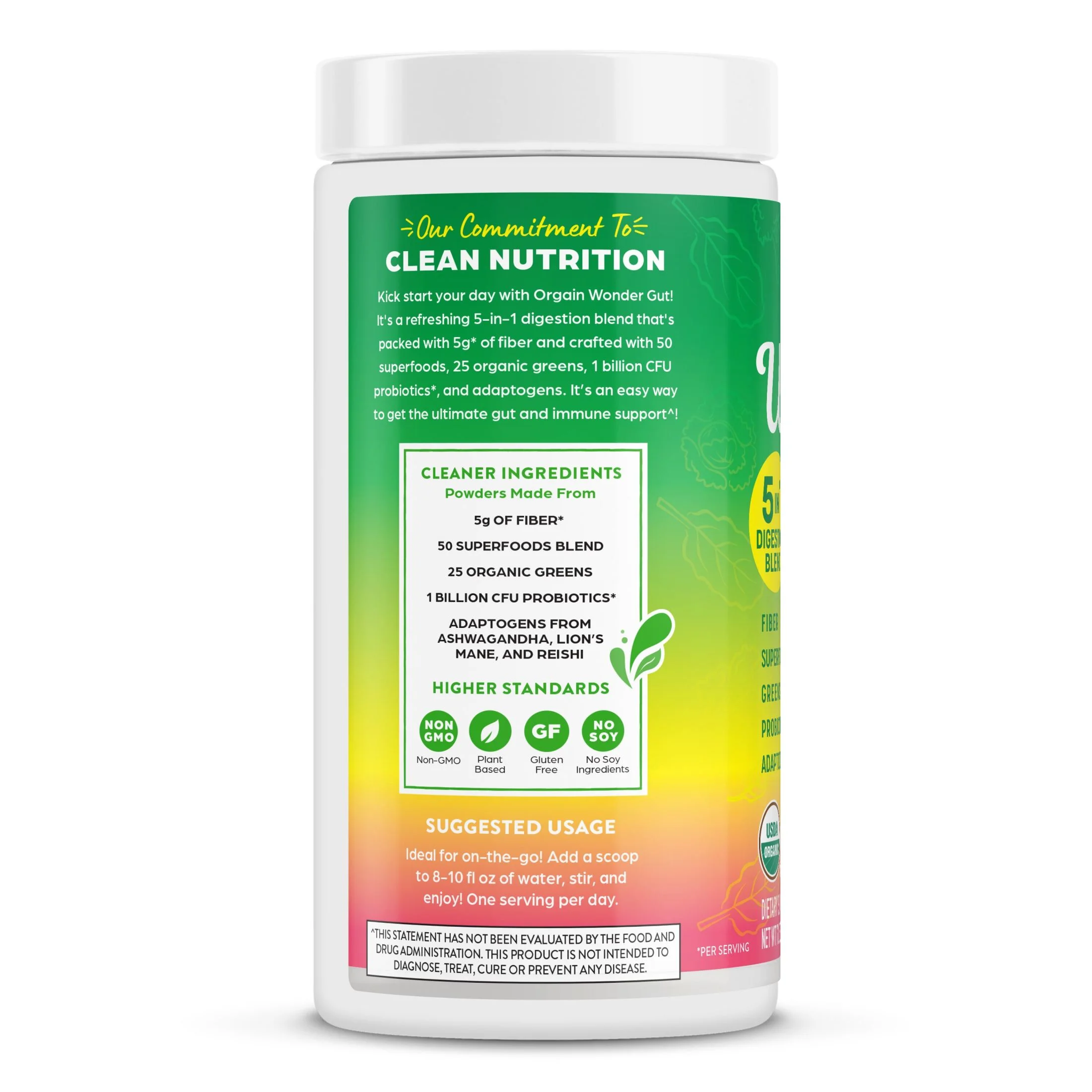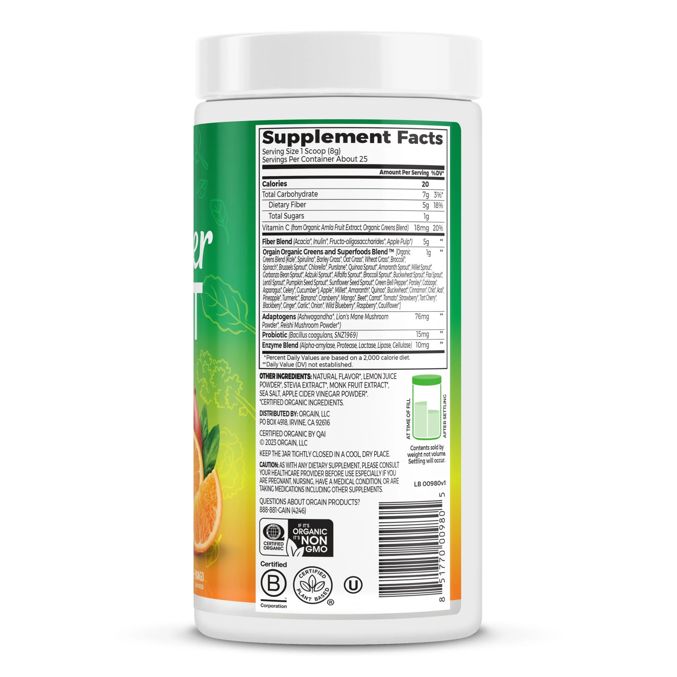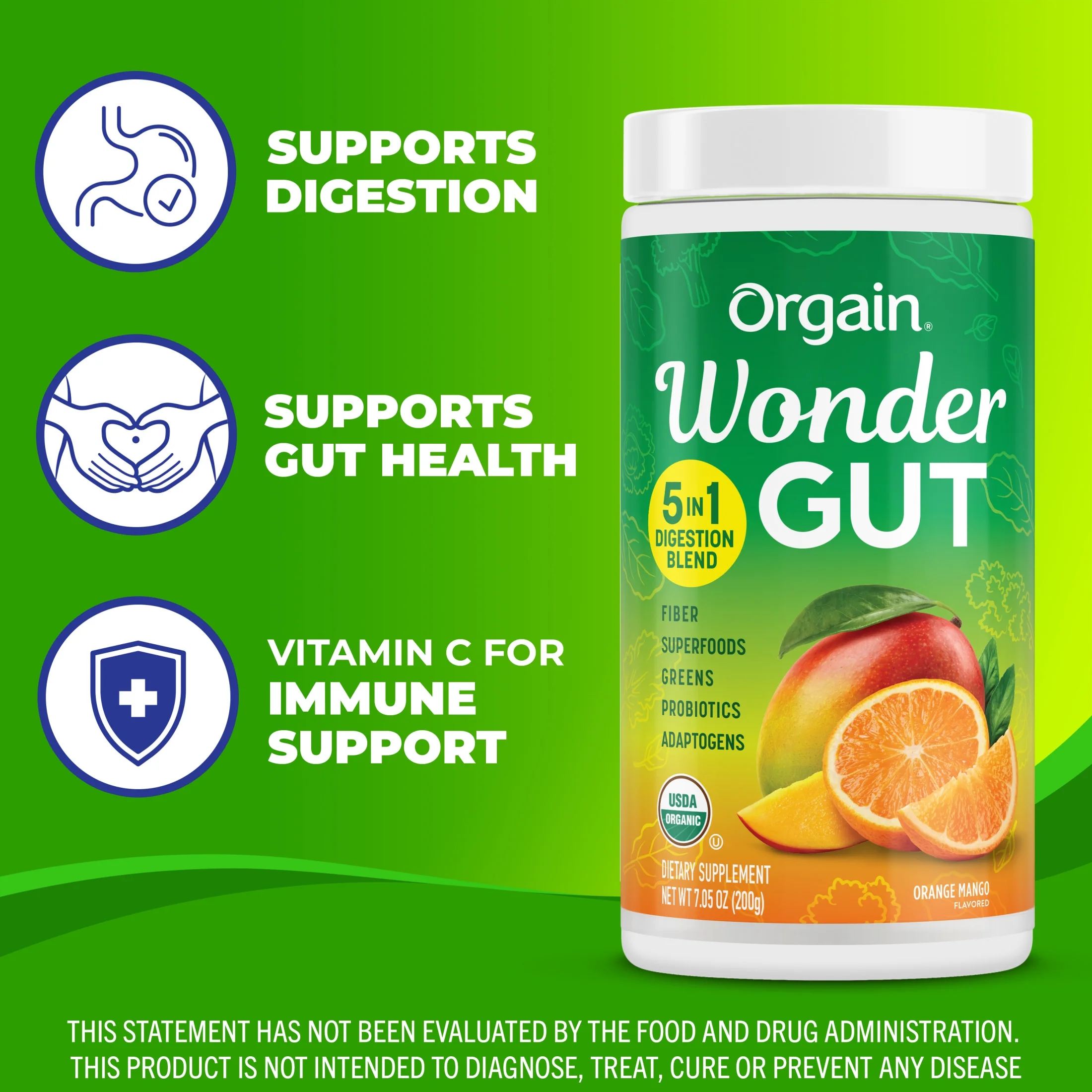 Orgain Vegan Organic Wonder Gut 5-in-1 Fiber Superfood Powder – Orange Mango 0.44lb