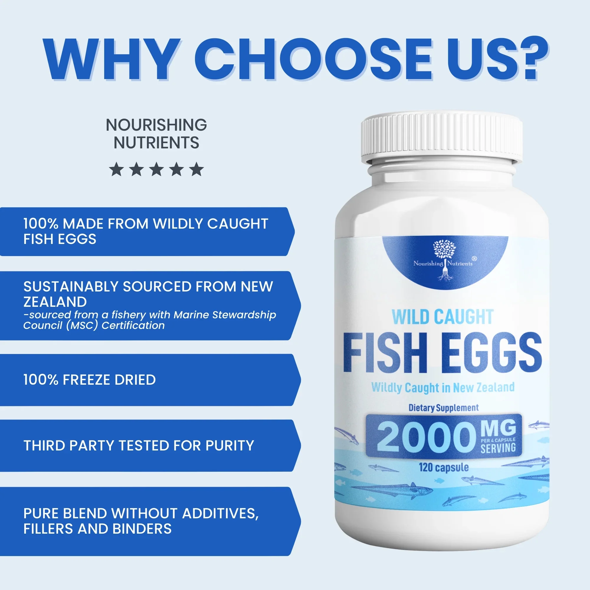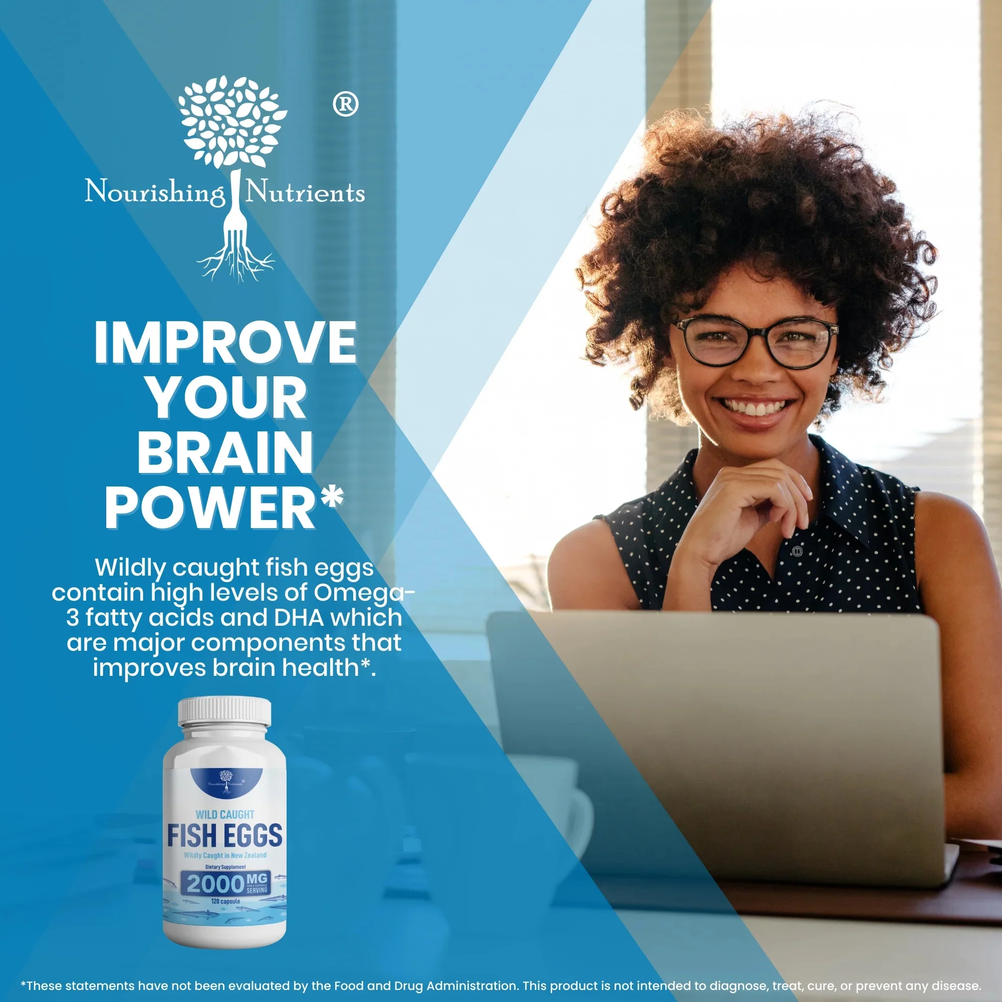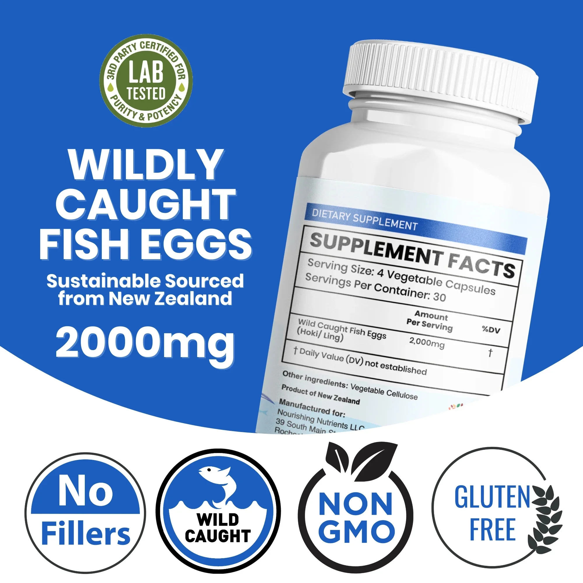 Wild Caught Fish Eggs with Omega 3-6-9 for Eye, Brain, Bones & Teeth, Mood Support 120 capsules
