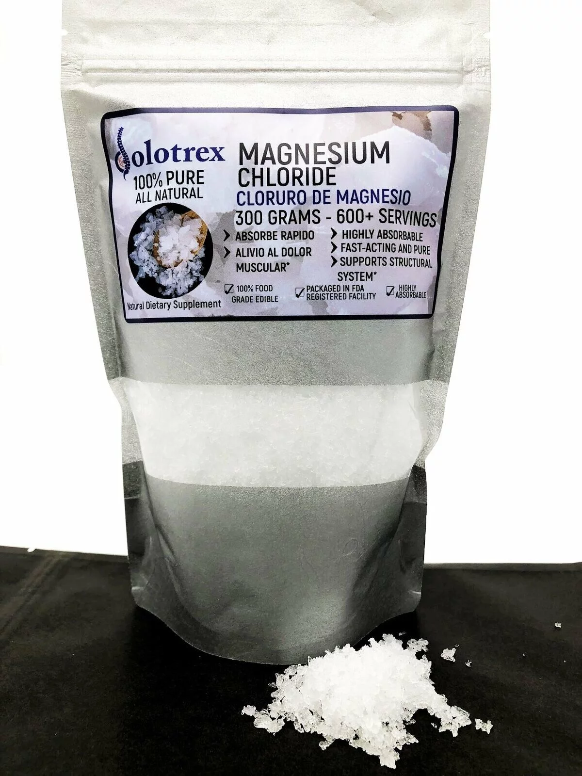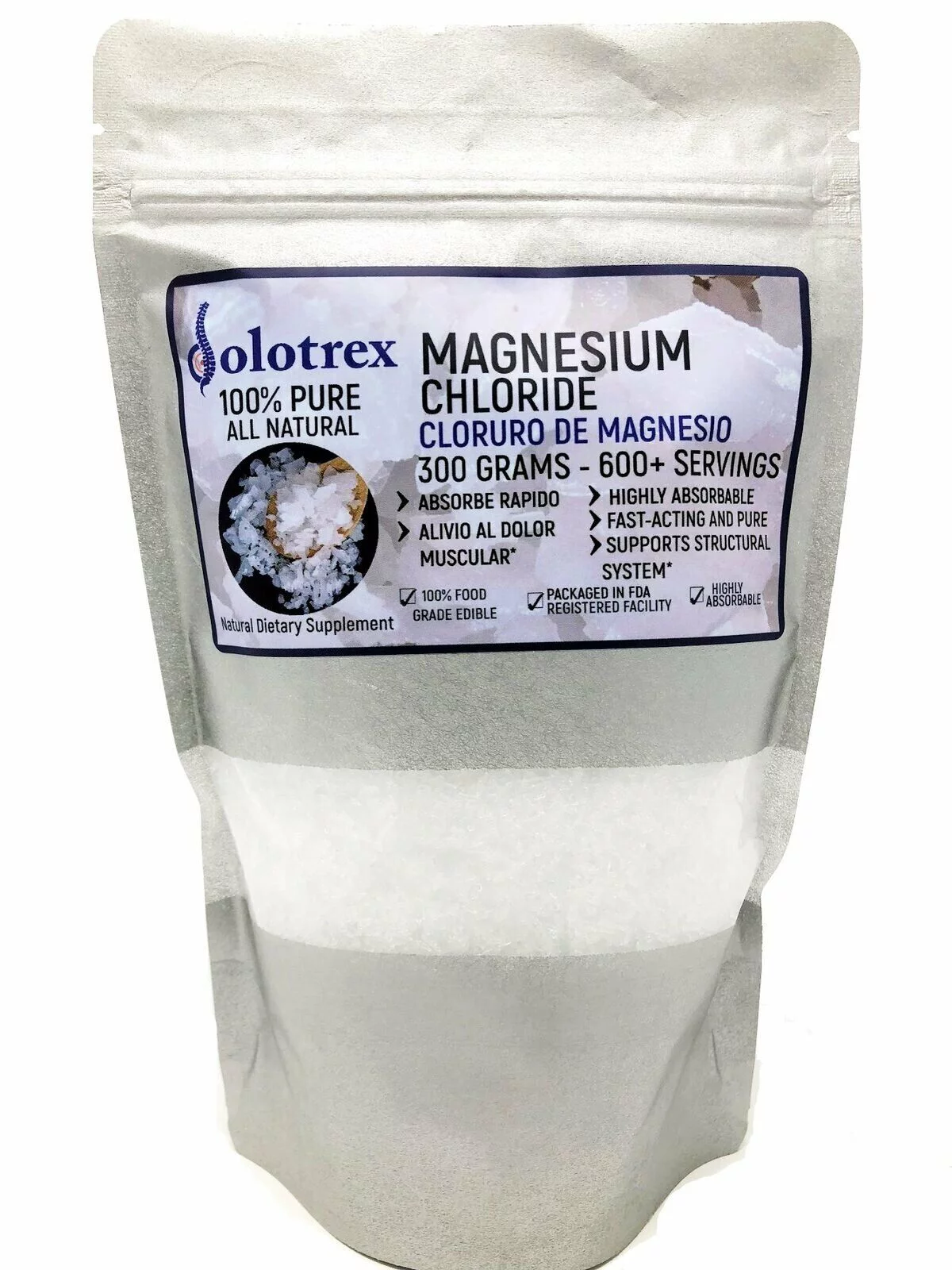 Cloruro de Magnesio 100% PURE Magnesium Chloride 300g Over 600 Servings 0.66 LBS