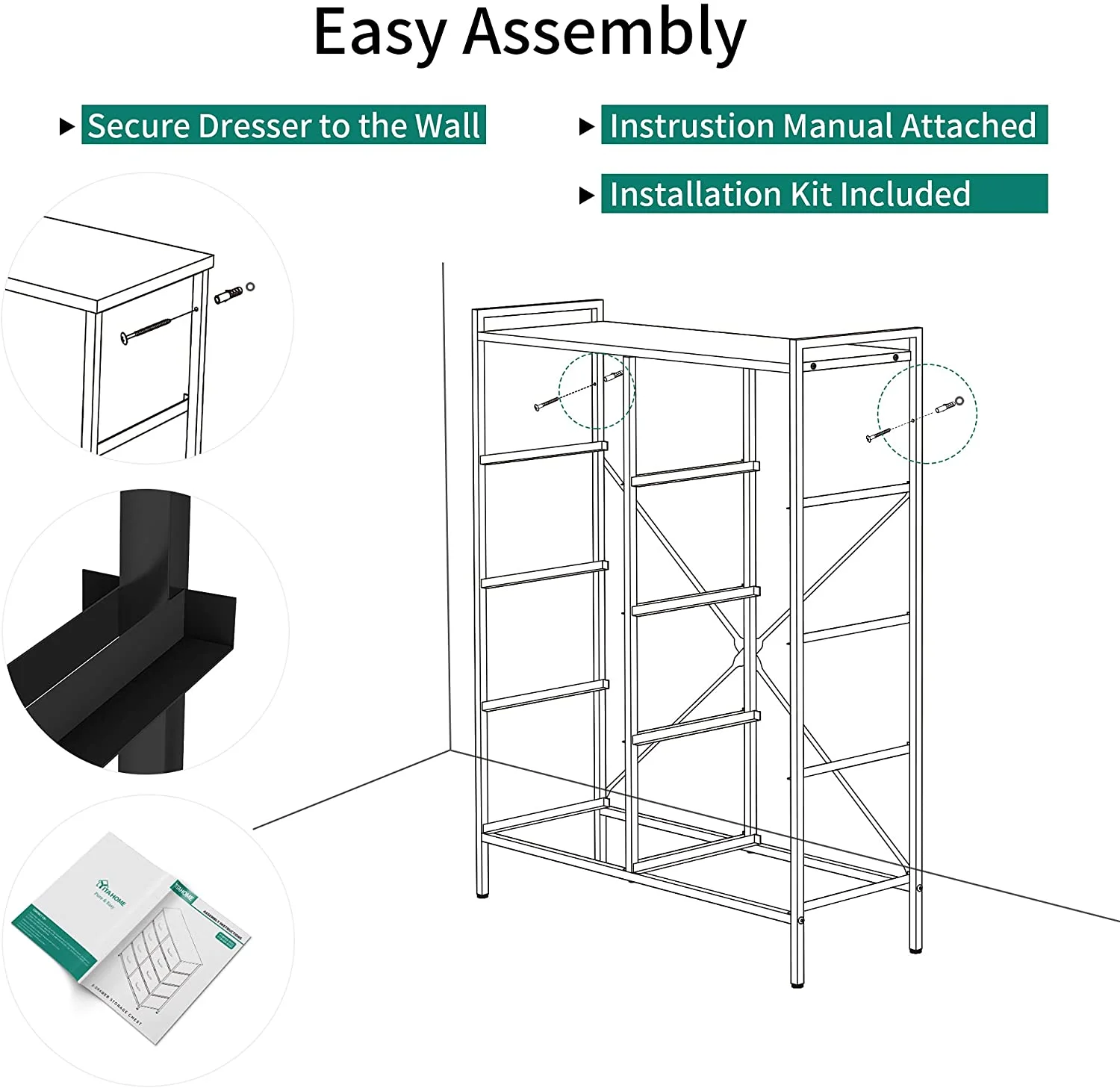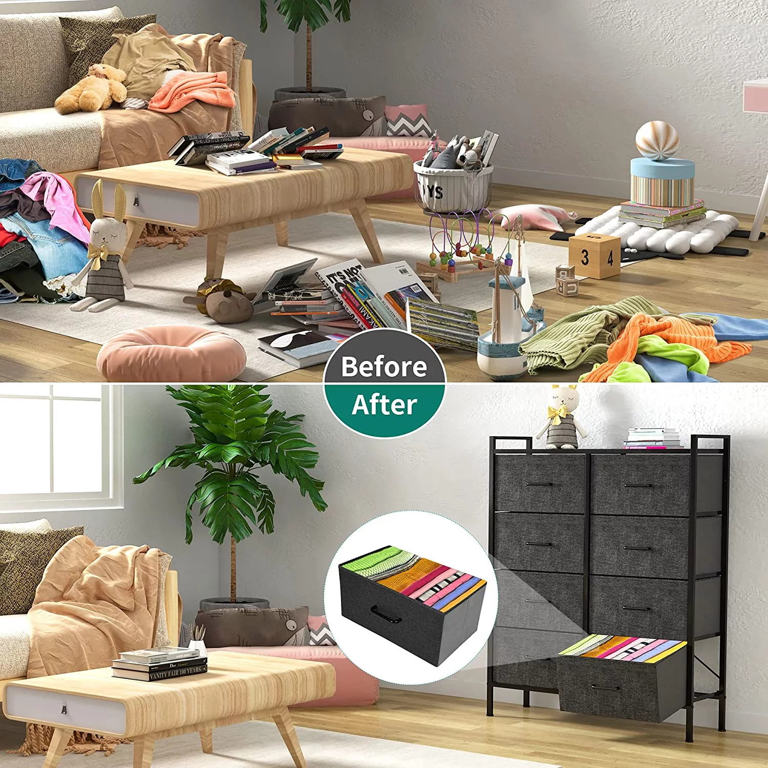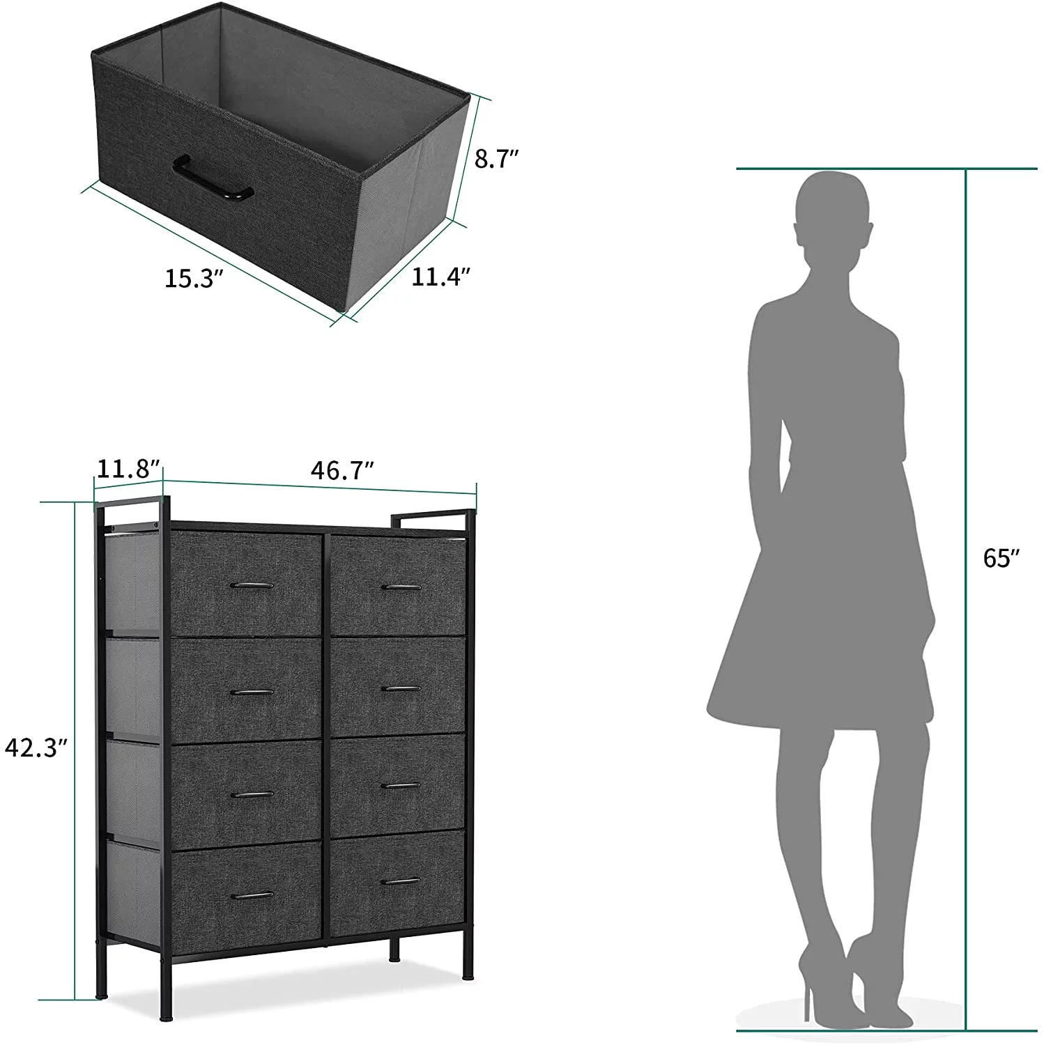 DWVO 8 Drawer Dresser for Bedroom Tall Fabric Dresser Storage Tower Cabinet Bin Storage Organizer for Living Room Kids Room, Black Gray