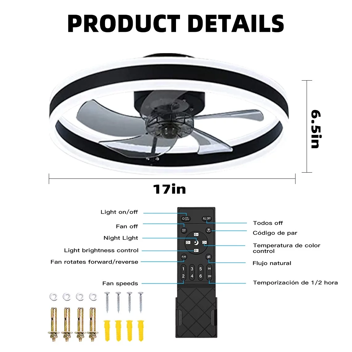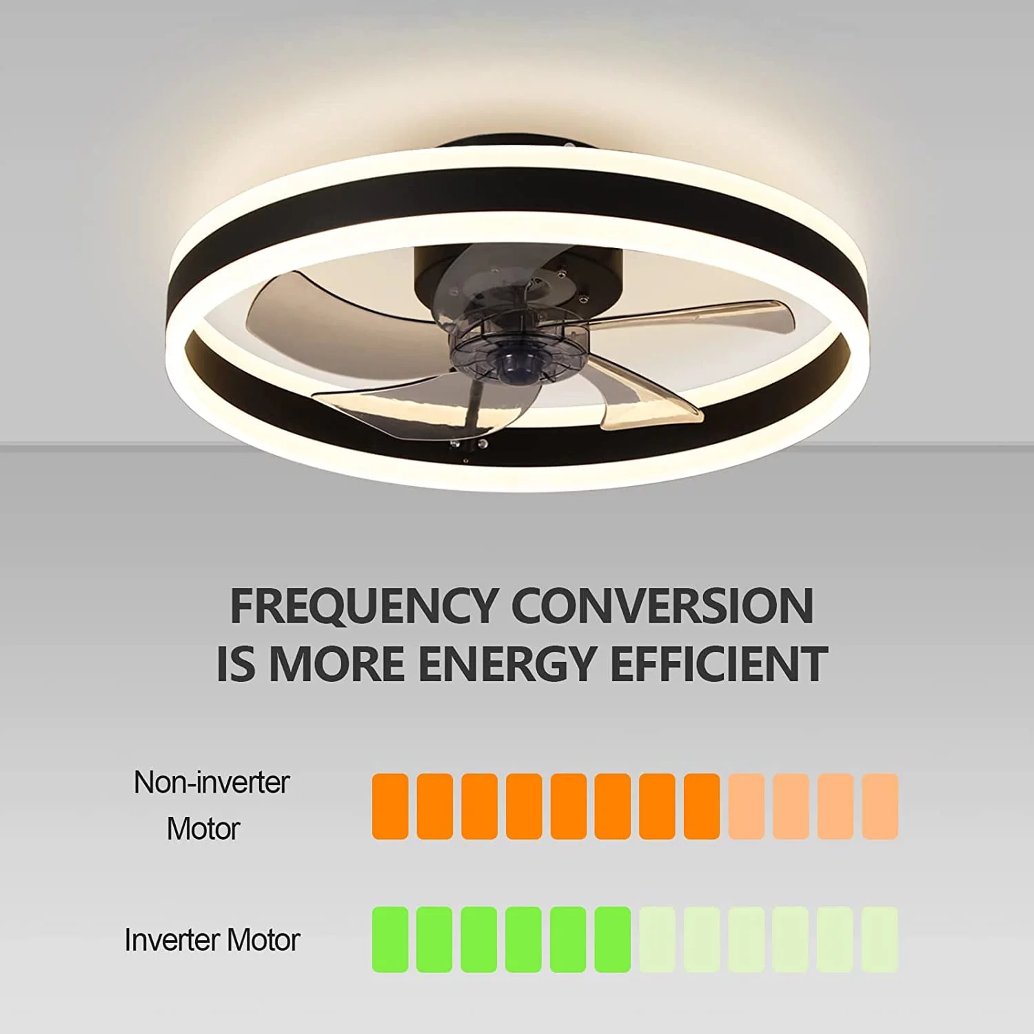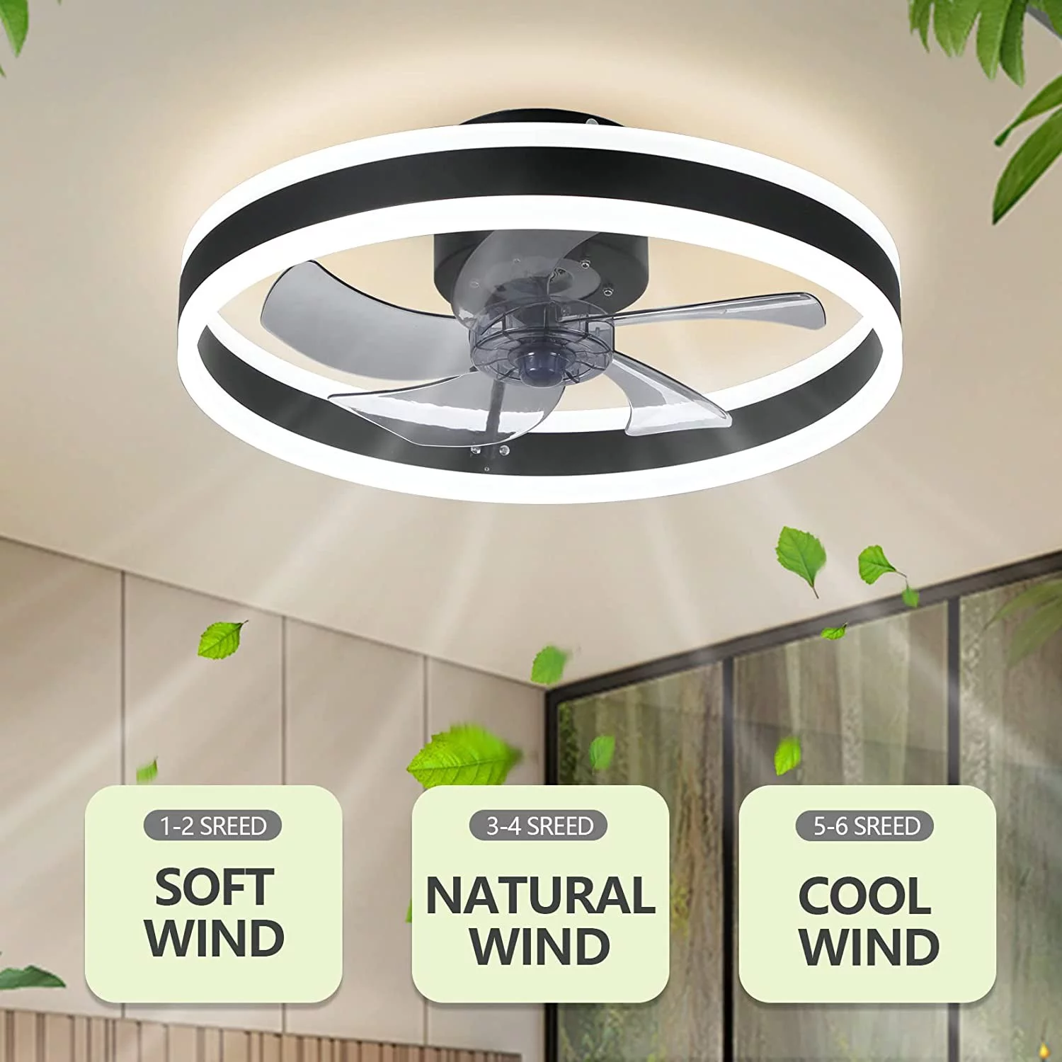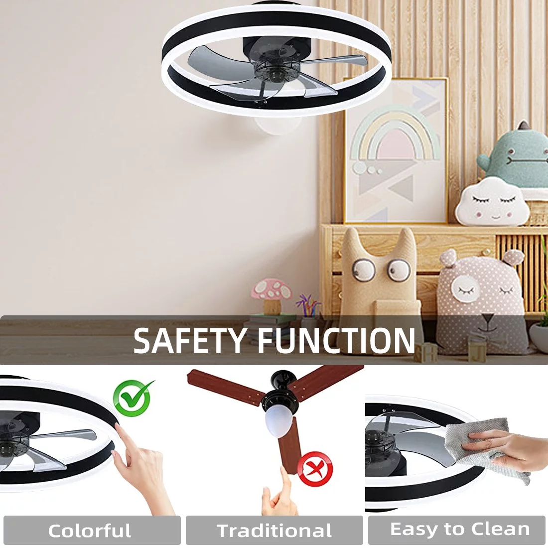 Sand black Modern Low Profile Ceiling Fan with Light, Bladeless Flush Mount Gold Fan Lights Ceiling Fixtures for Living Room, Kitchen, Small Room