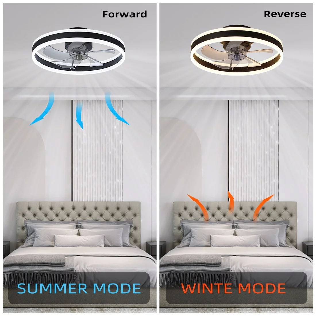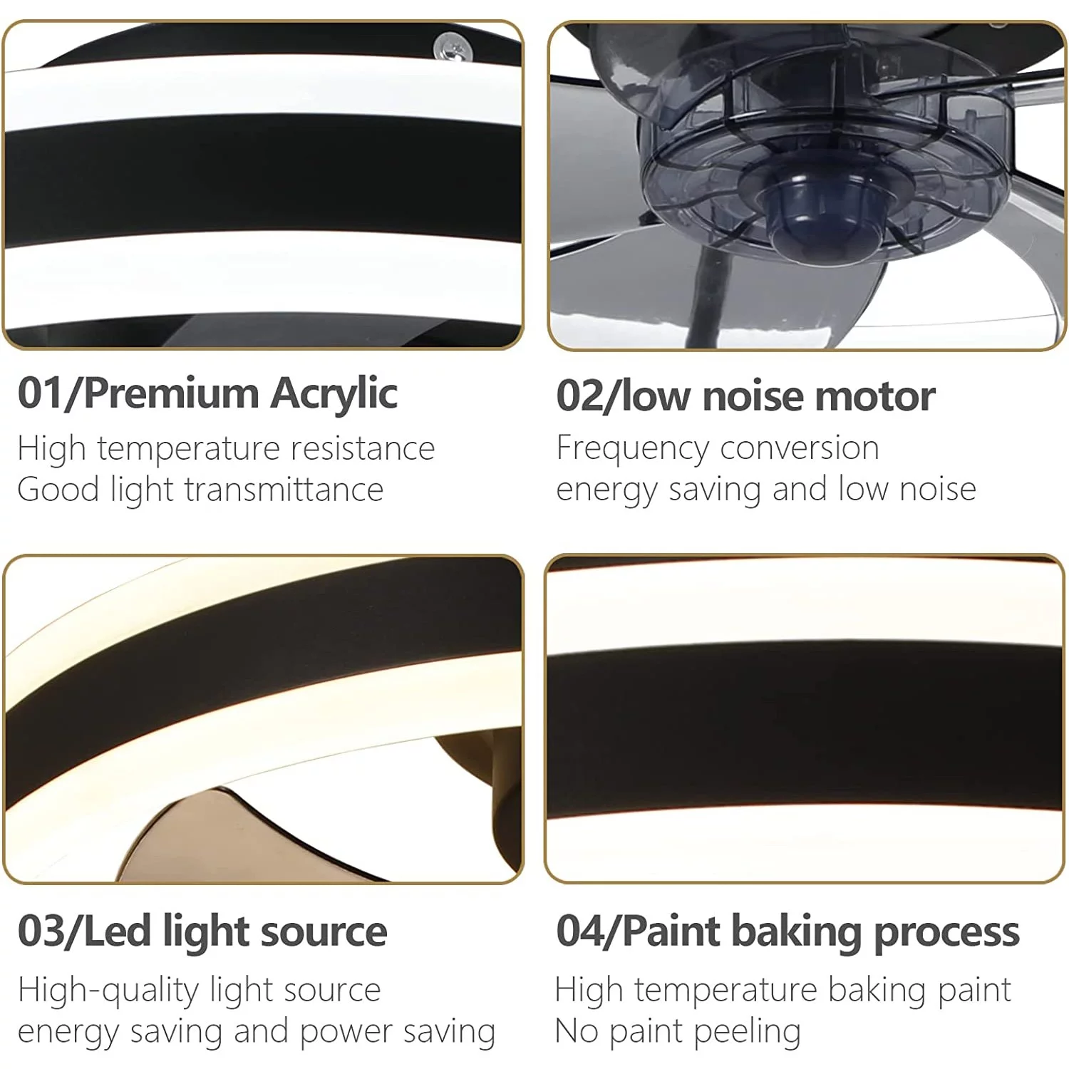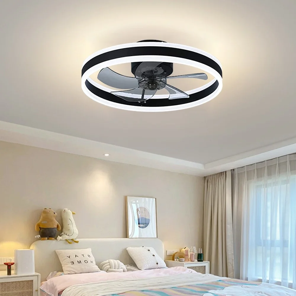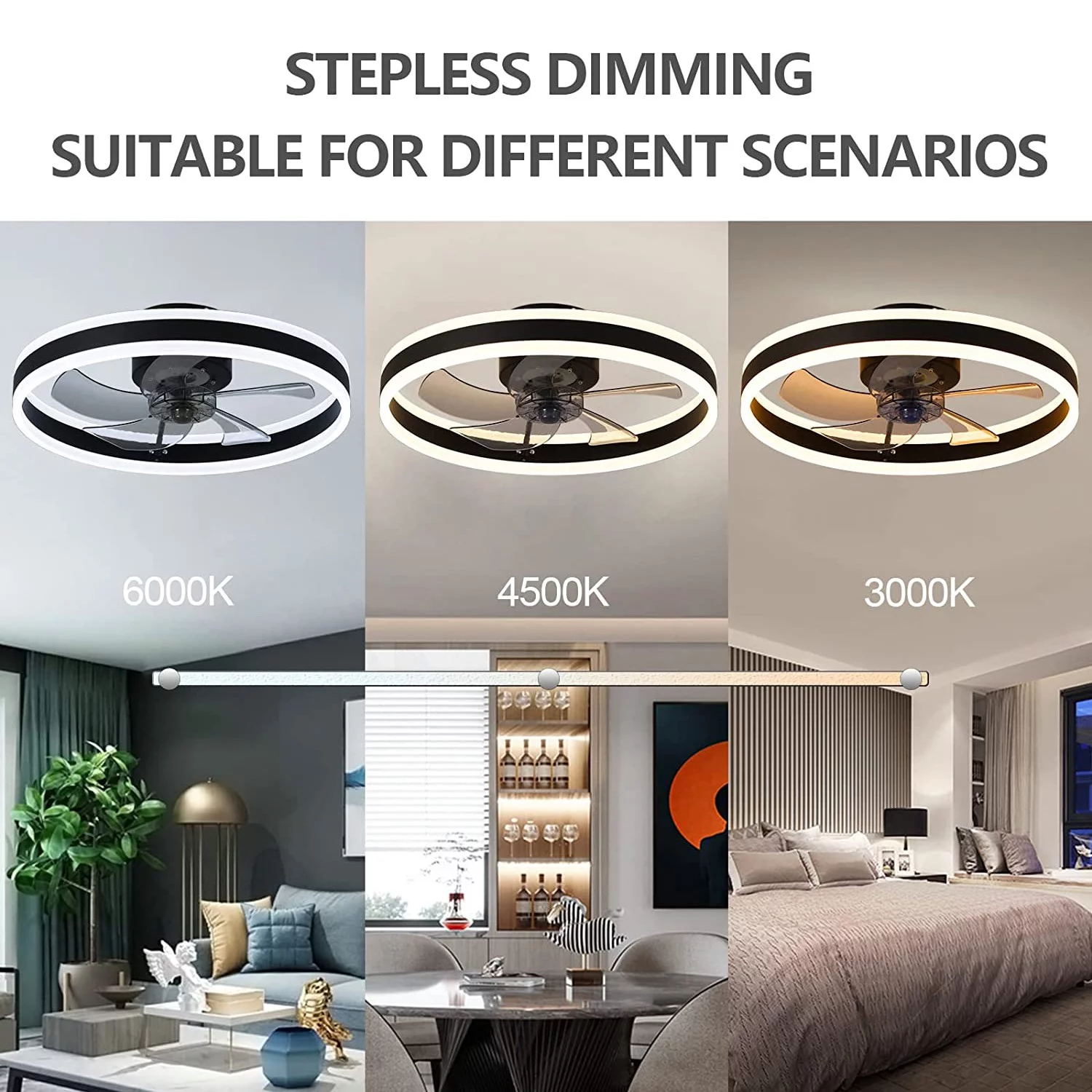 Sand black Modern Low Profile Ceiling Fan with Light, Bladeless Flush Mount Gold Fan Lights Ceiling Fixtures for Living Room, Kitchen, Small Room
