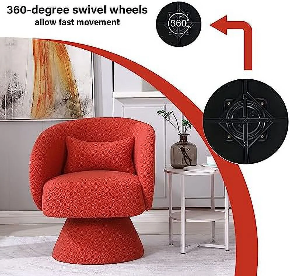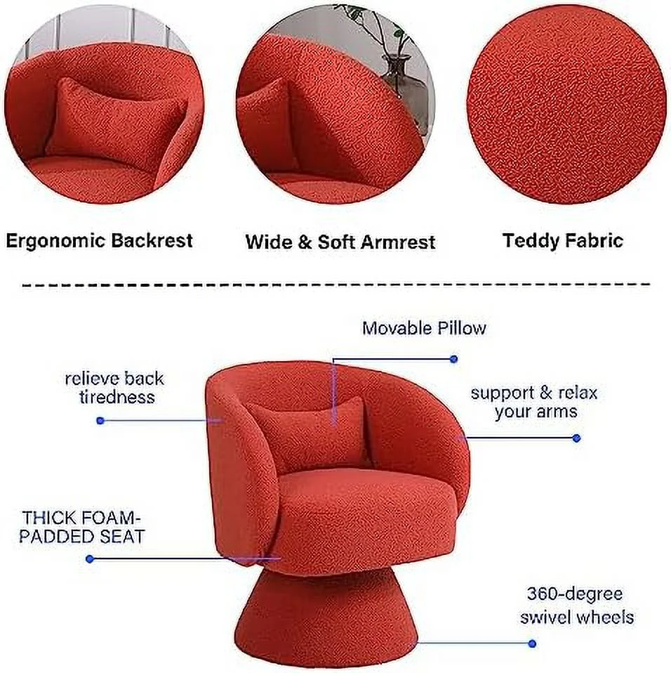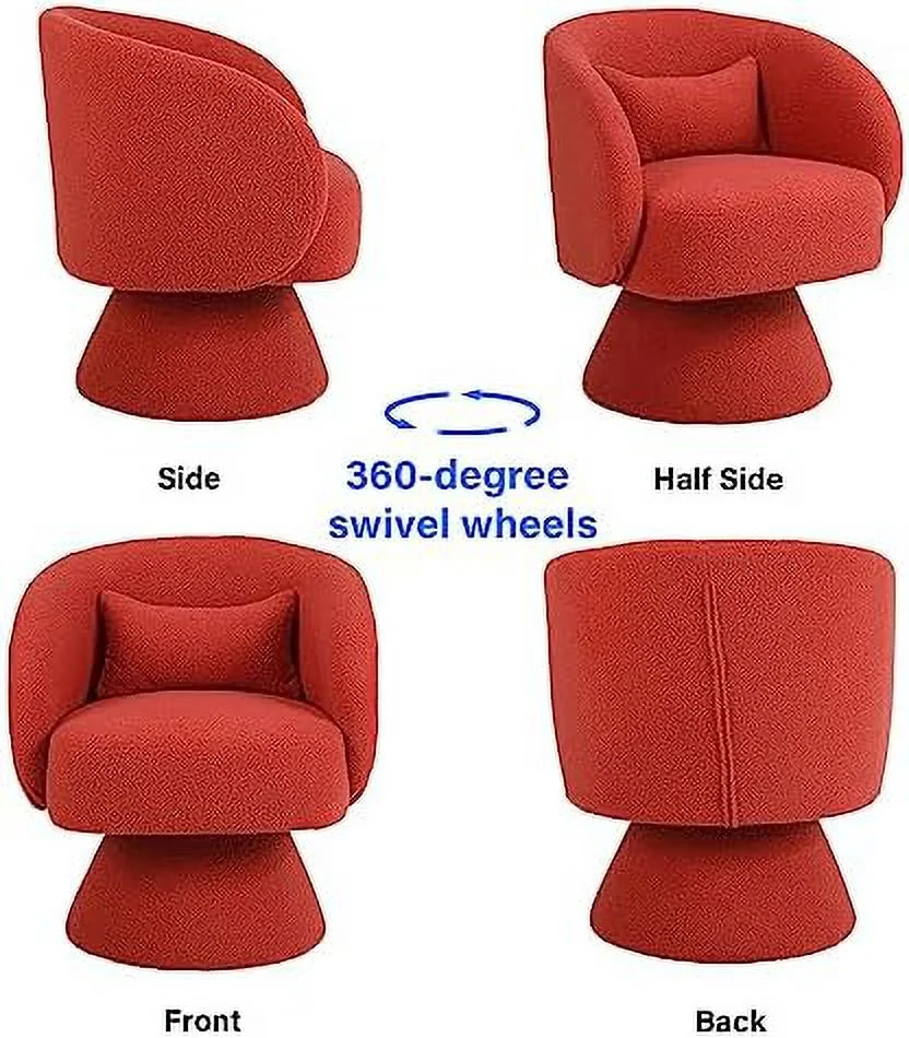 YZboomLife Swivel Barrel Chair Set of 2 Modern Round Swivel Accent Chairs with Pillow Degree Comfy Linen Fabric Accent Chair Small Single Chair Armchair for Living Room Bedroom(Beige)