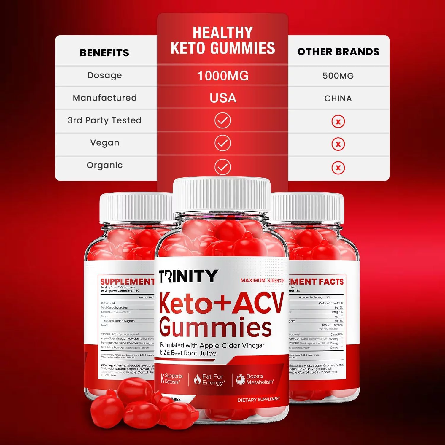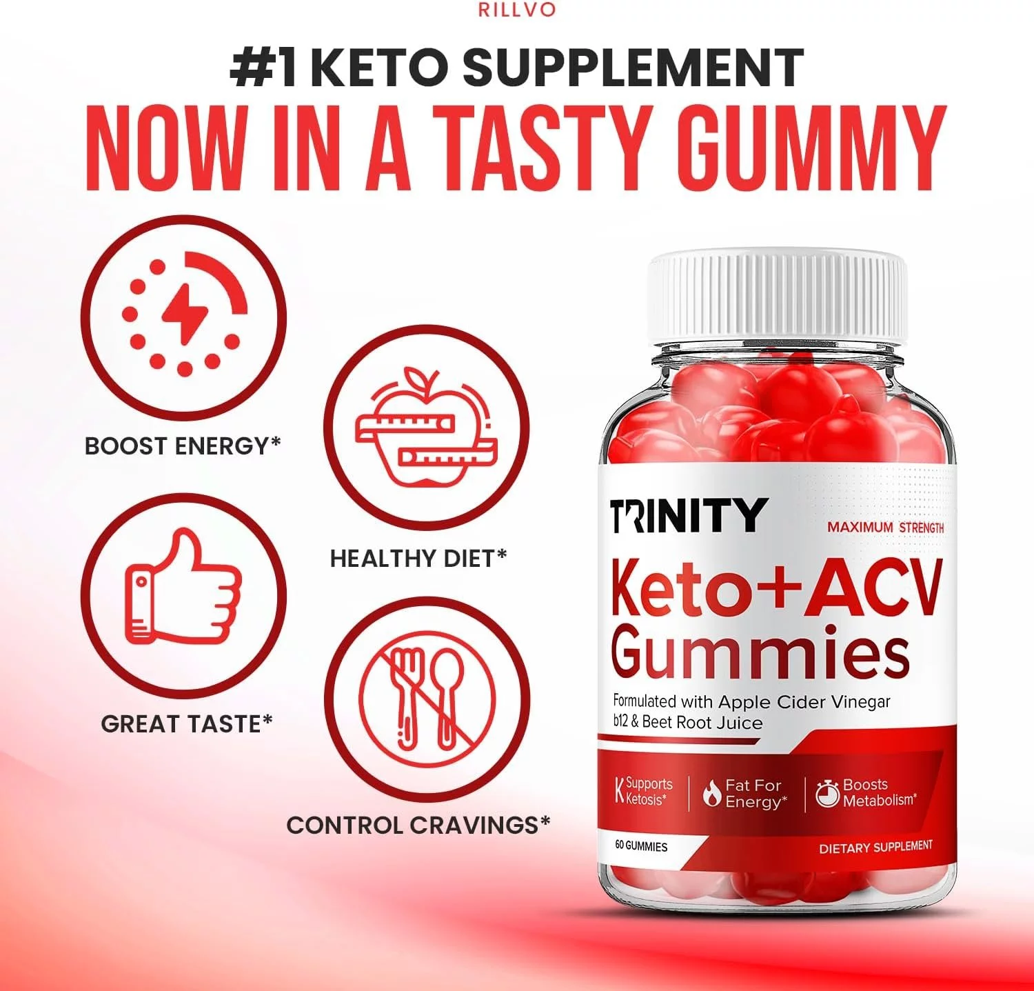 5 Pack Trinity Keto ACV Gummies Trinity ACV Keto Advanced Formula Plus Apple Cider Vinegar Keto Gummies Dietary Supplement B12 Beet Root Juice Men Women 300 Gummies 300 Gummies