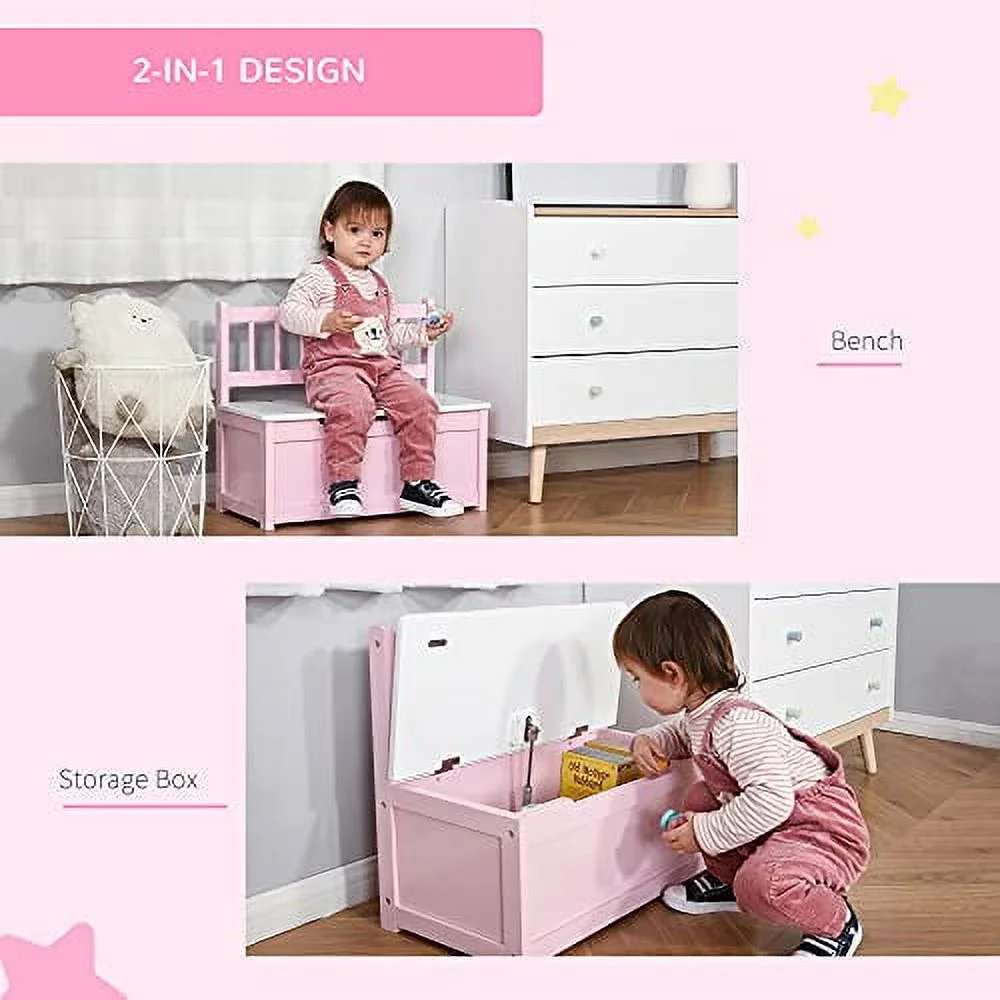 Wooden Toy Organizer Chest Storage Box With Seat Bench Cabinet Chunk Cube With Safety Pneumatic Rod