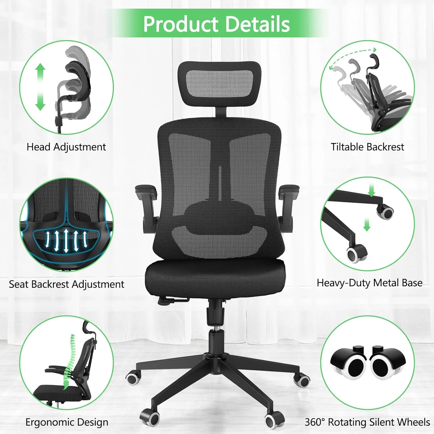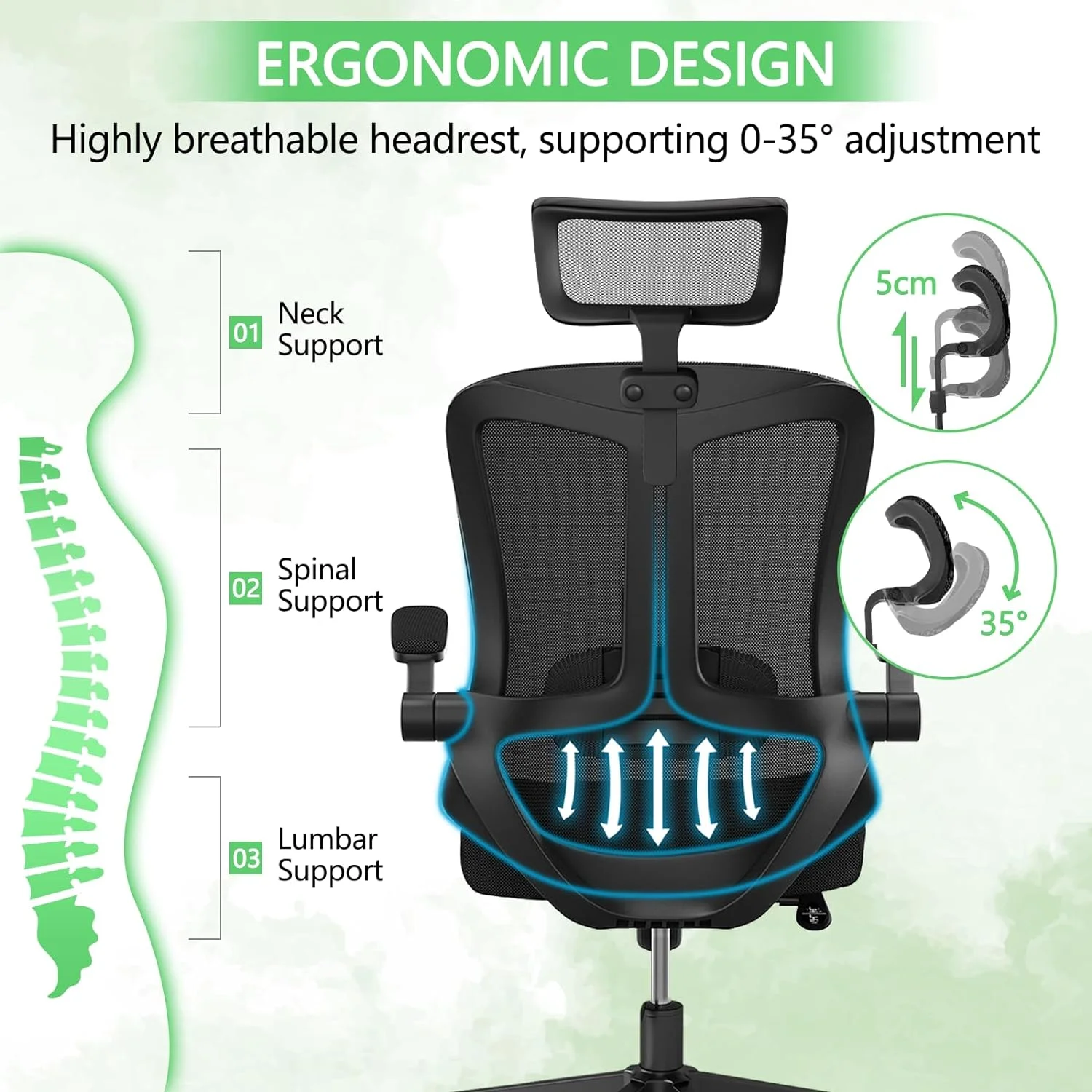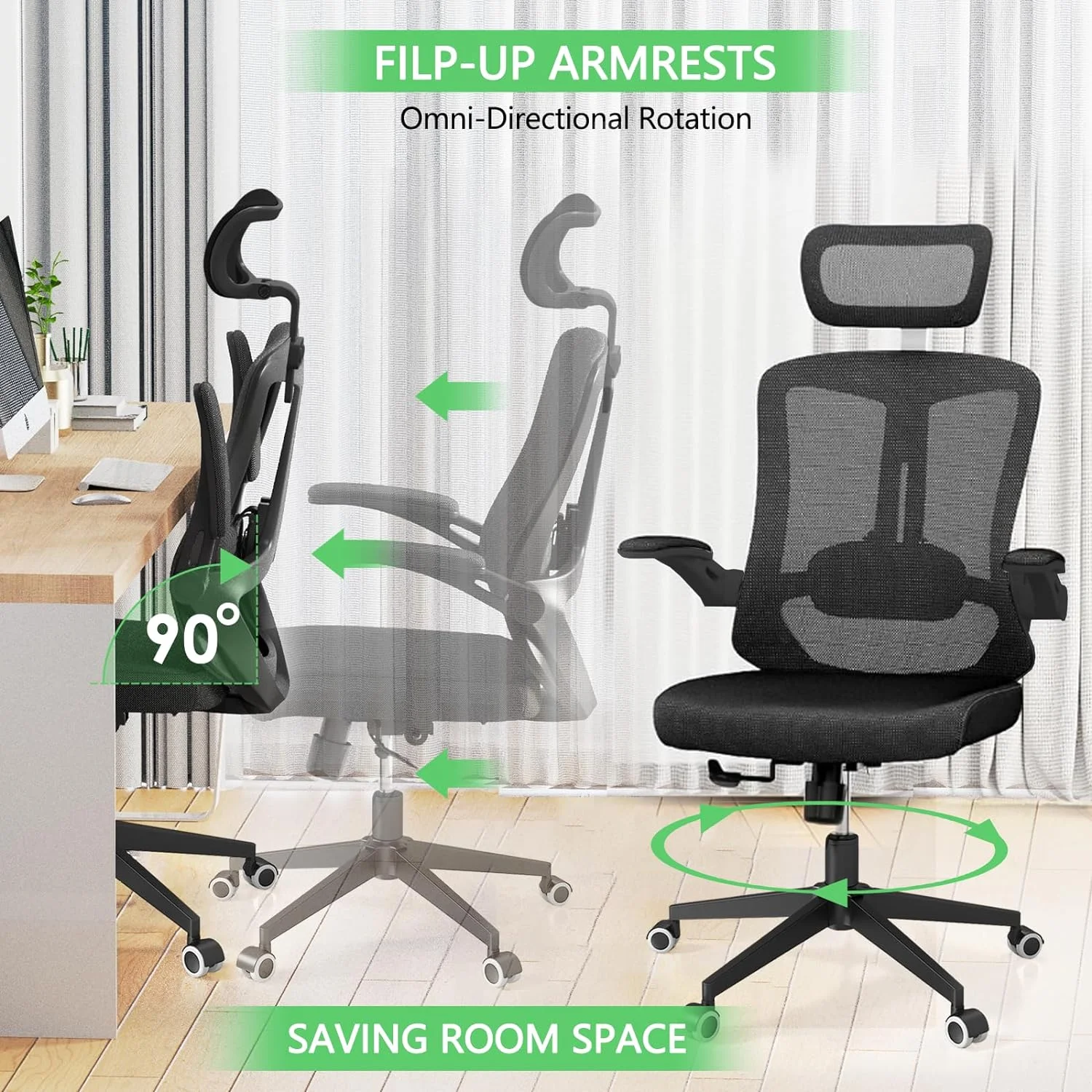 Ergonomic Chairs For Home Office Desk , Breathable Mid-Back Comfortable Mesh Computer Chair with PU Silent Wheels, Flip-up Armrests, Tilt Function, Lumbar Support (Khaki)