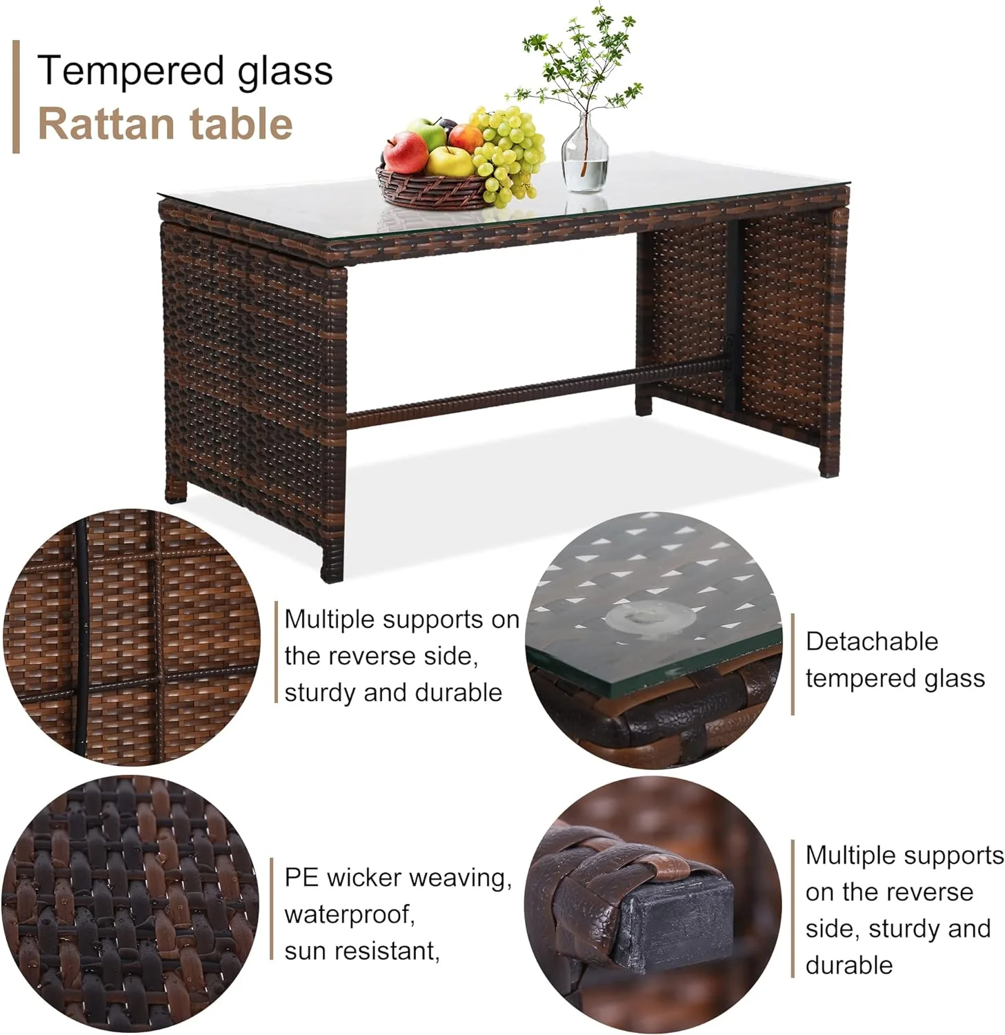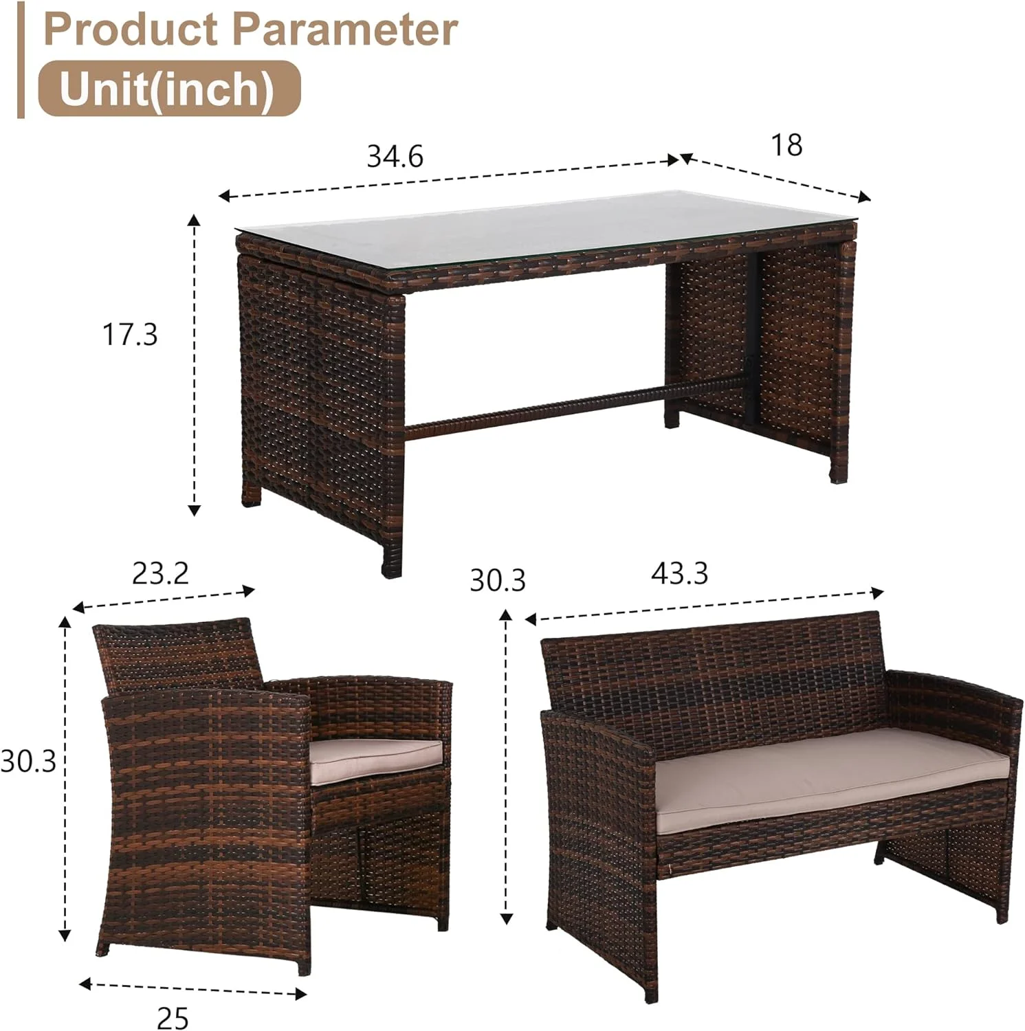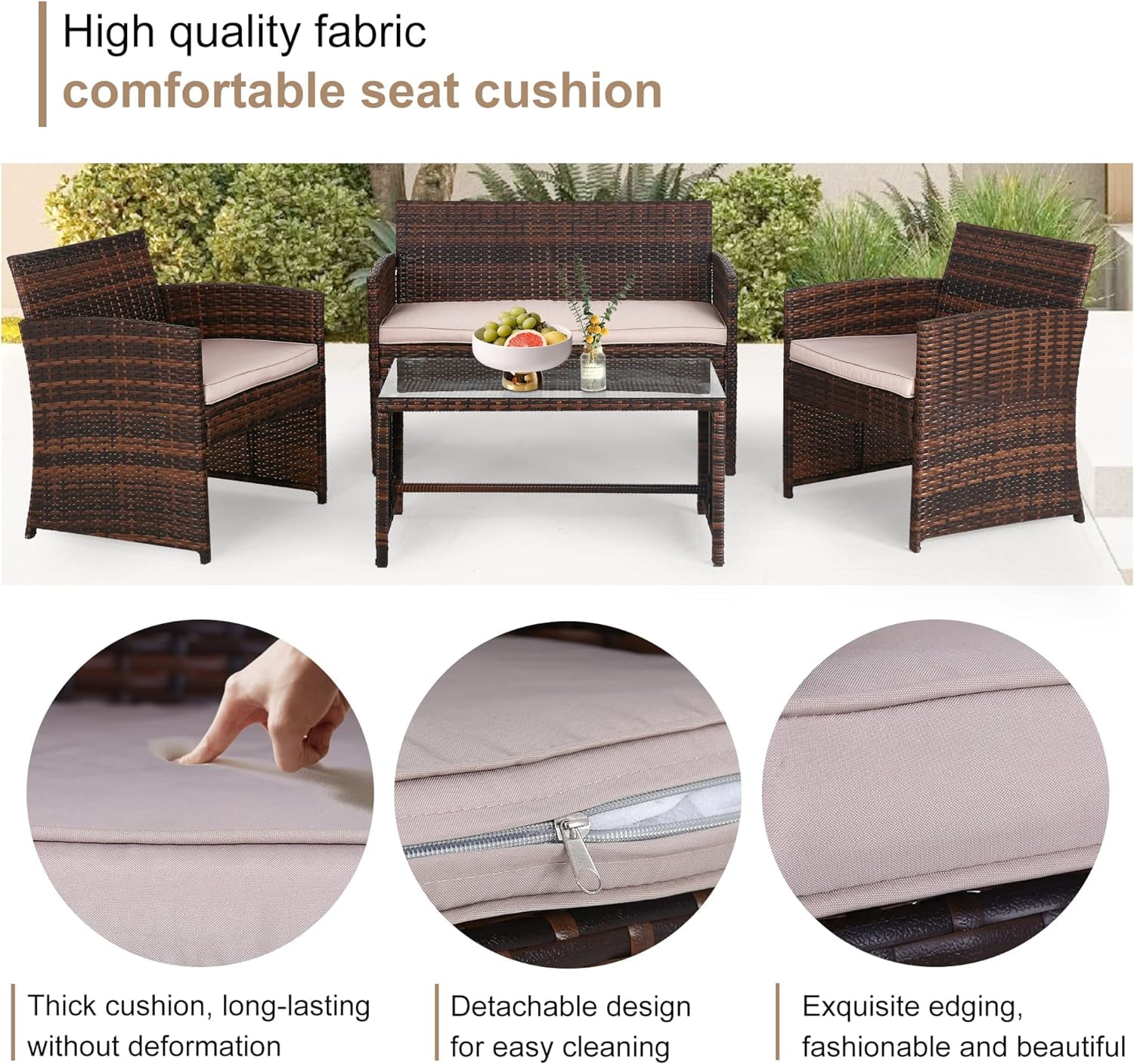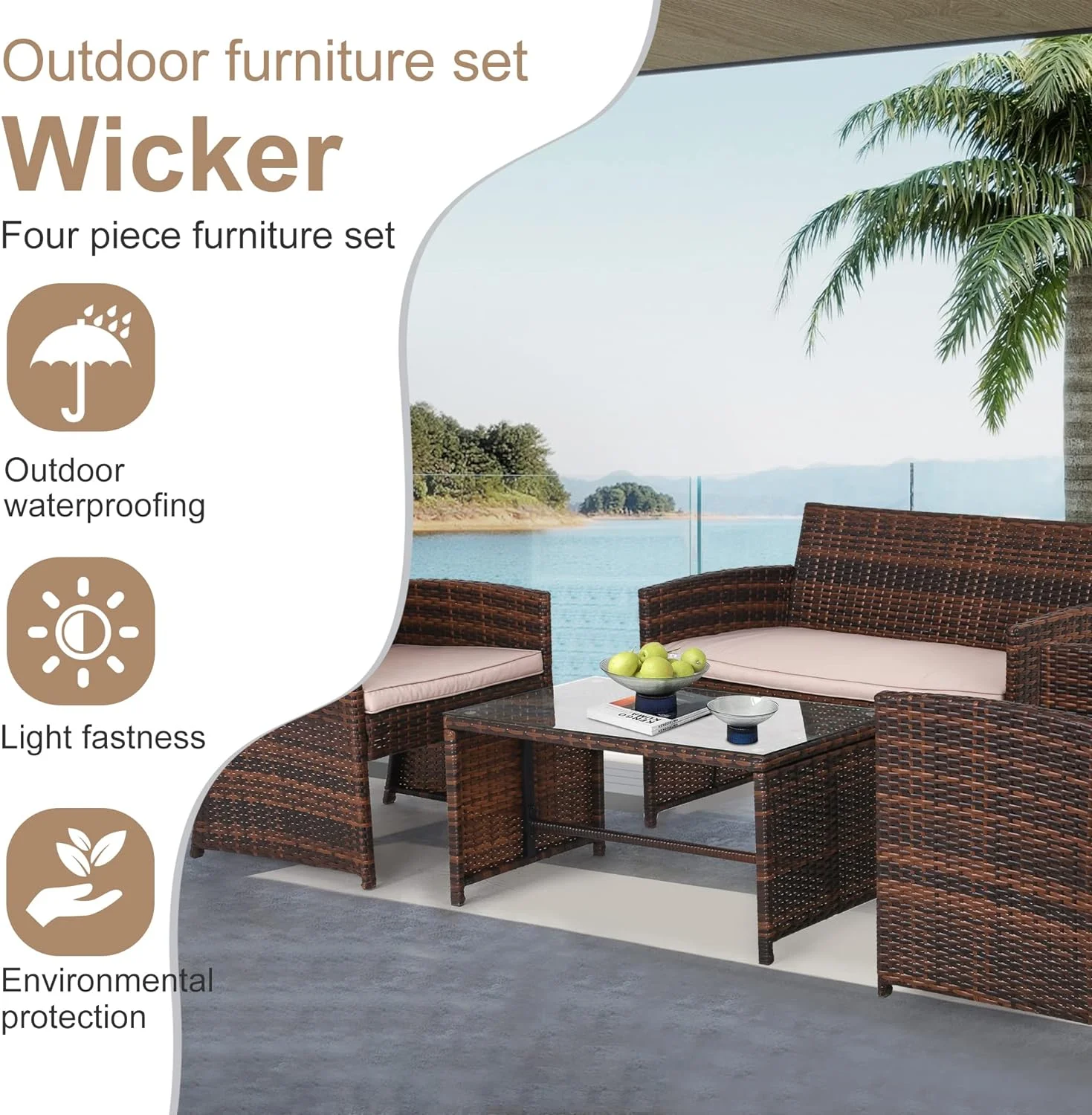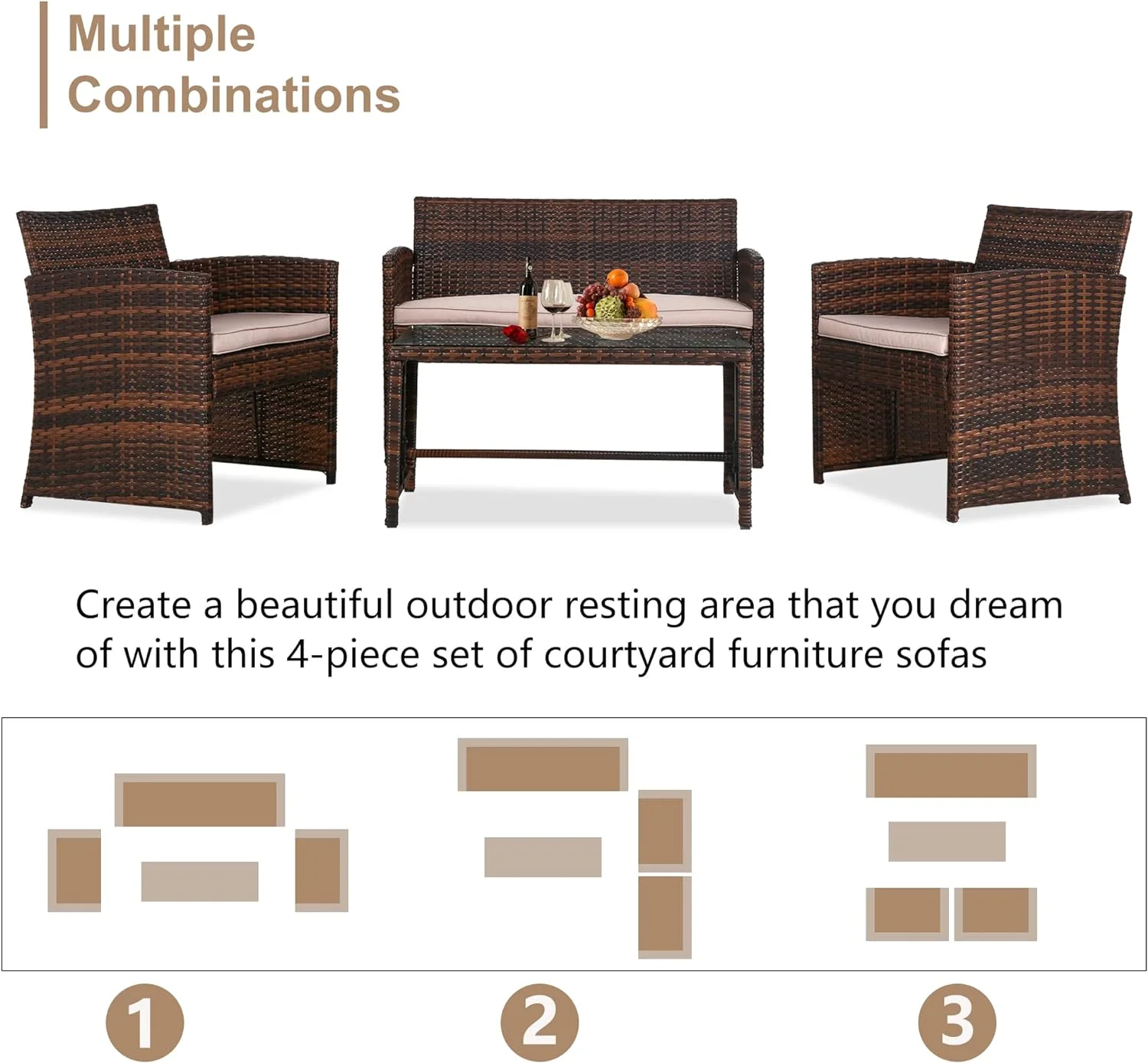 4 Pieces Outdoor Patio Furniture Sets Wicker Outdoor Garden Furniture,Brown, 3 People