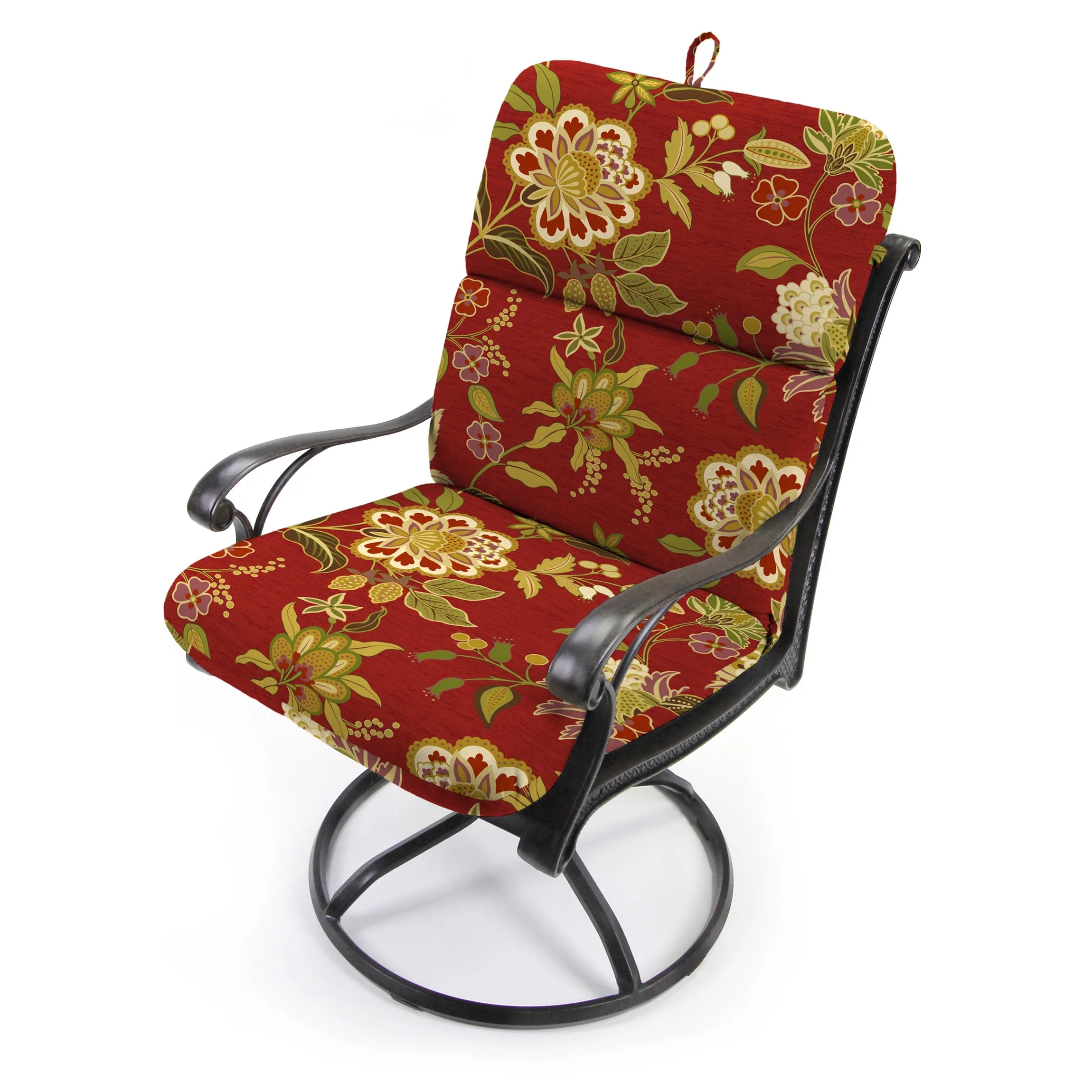 Jordan Manufacturing 45" x 22" Alberta Salsa Red Floral Rectangular Outdoor Chair Cushion with Ties and Hanger Loop