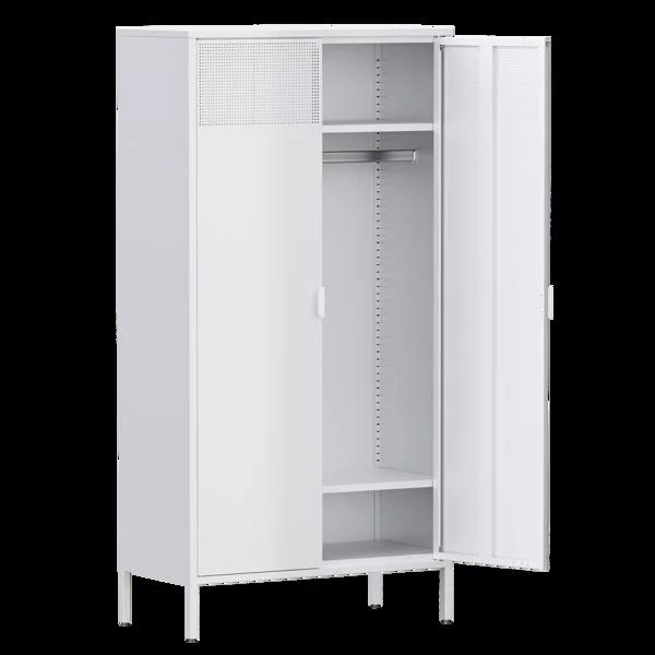 Fithood Metal Wardrobe Cabinet, Armoire Wardrobe Closet with Hanging Rod and Doors, Metal Wardrobe Closet with Adjustable Shelves for Bedroom, File Cabinet for Home, Office, School, Garage, Basement