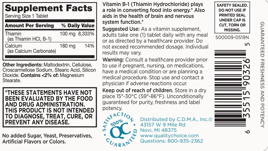 5 Pack Quality Choice Vitamin B-1 Metabolism Support 100mg 100 Tablets Each