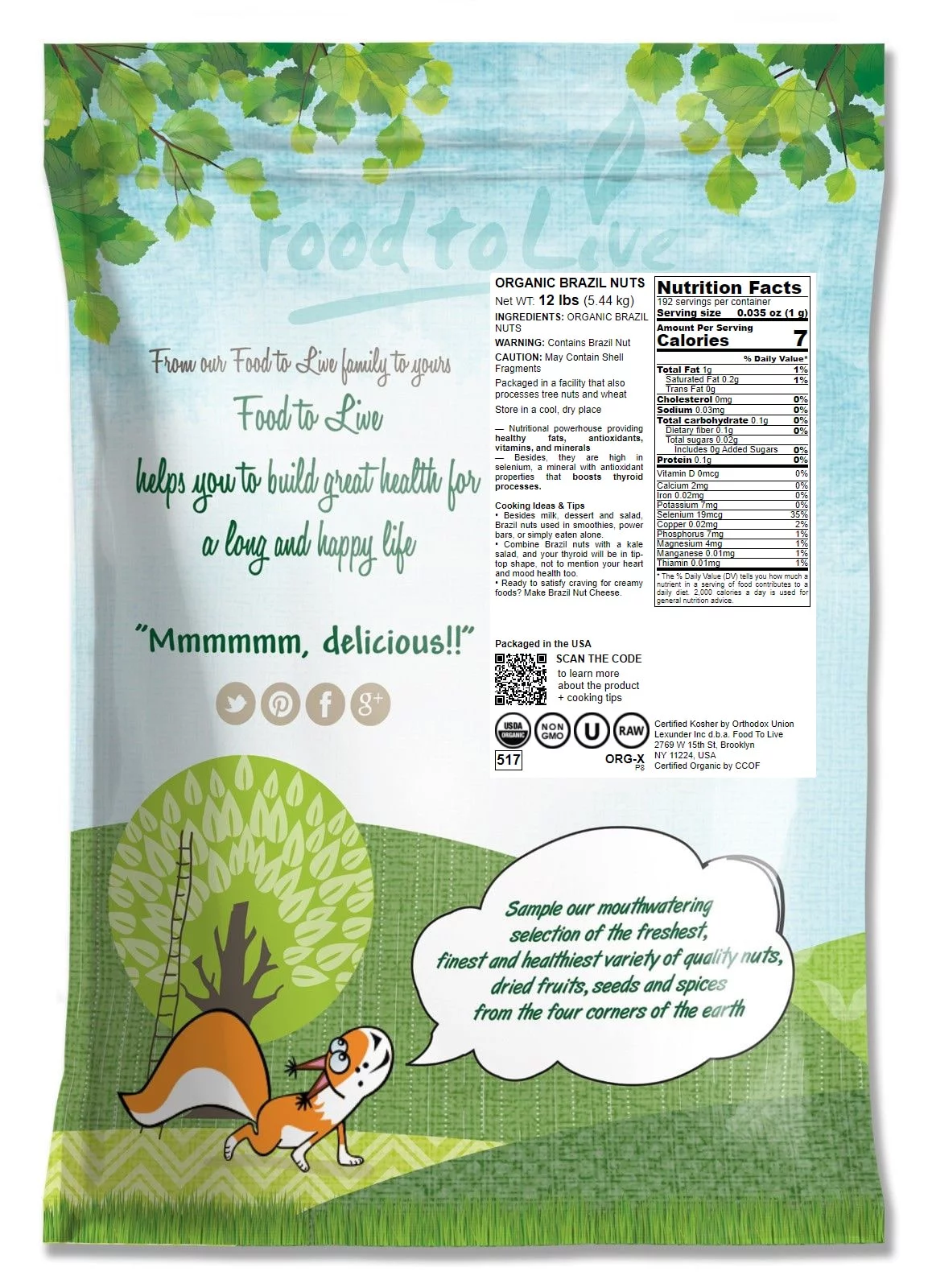 Food to Live, Organic Brazil Nuts, Non-GMO Verified, 12 Pounds, Vegan