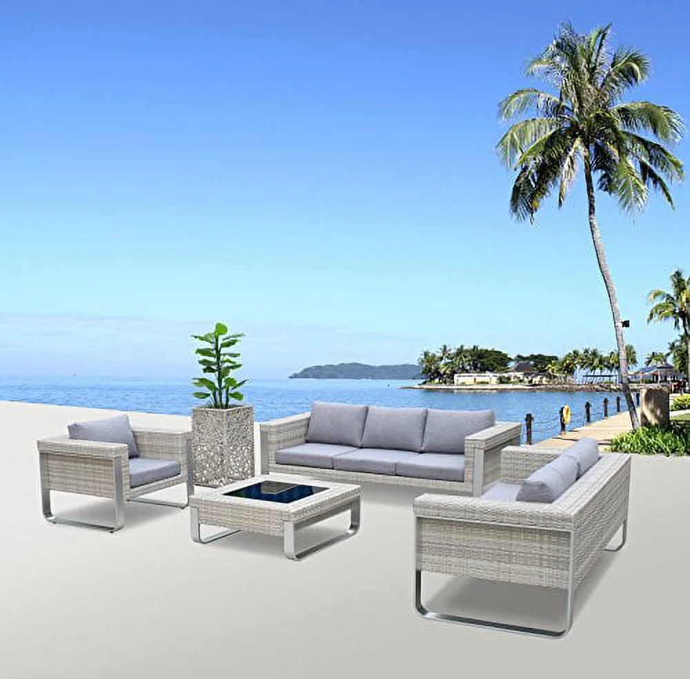 Infinity MOLR Set Modern Contemporary Outdoor Living Patio Furniture; Rattan Wicker & Aluminum Combination (4 Piece Set)