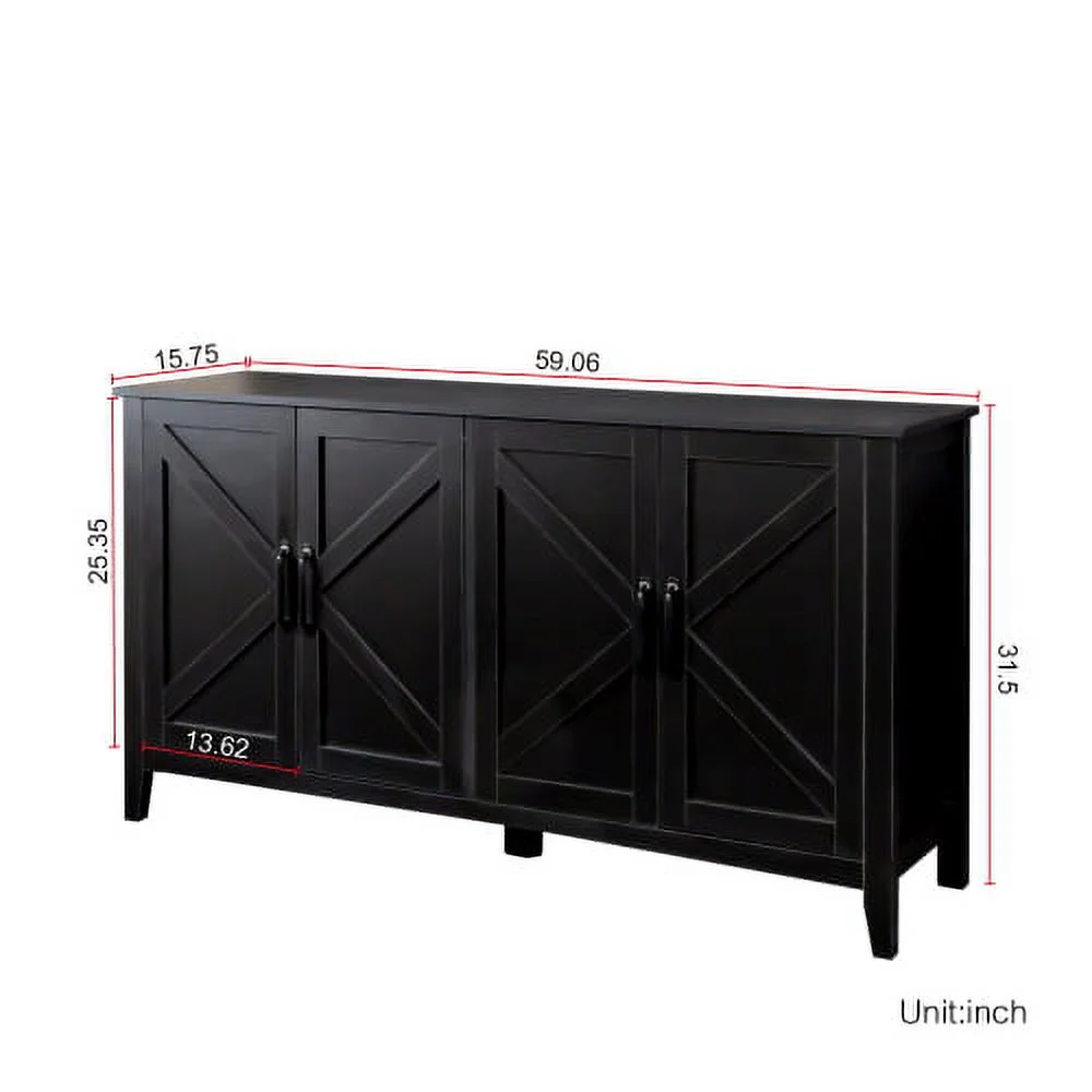 Cabinet with 4 Doors and 4 open shelgves,Freestanding Sideboard Storage Cabinet Entryway Floor Cabinet for Living Room Office Bedroom