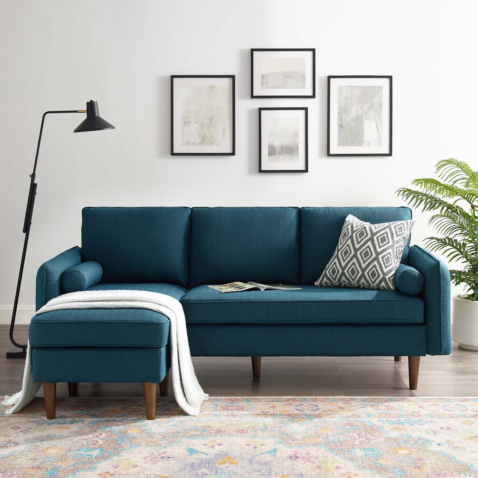 Sectional Sofa Set, Fabric, Navy Blue, Modern Contemporary Urban Design, Living Lounge Room Hotel Lobby Hospitality