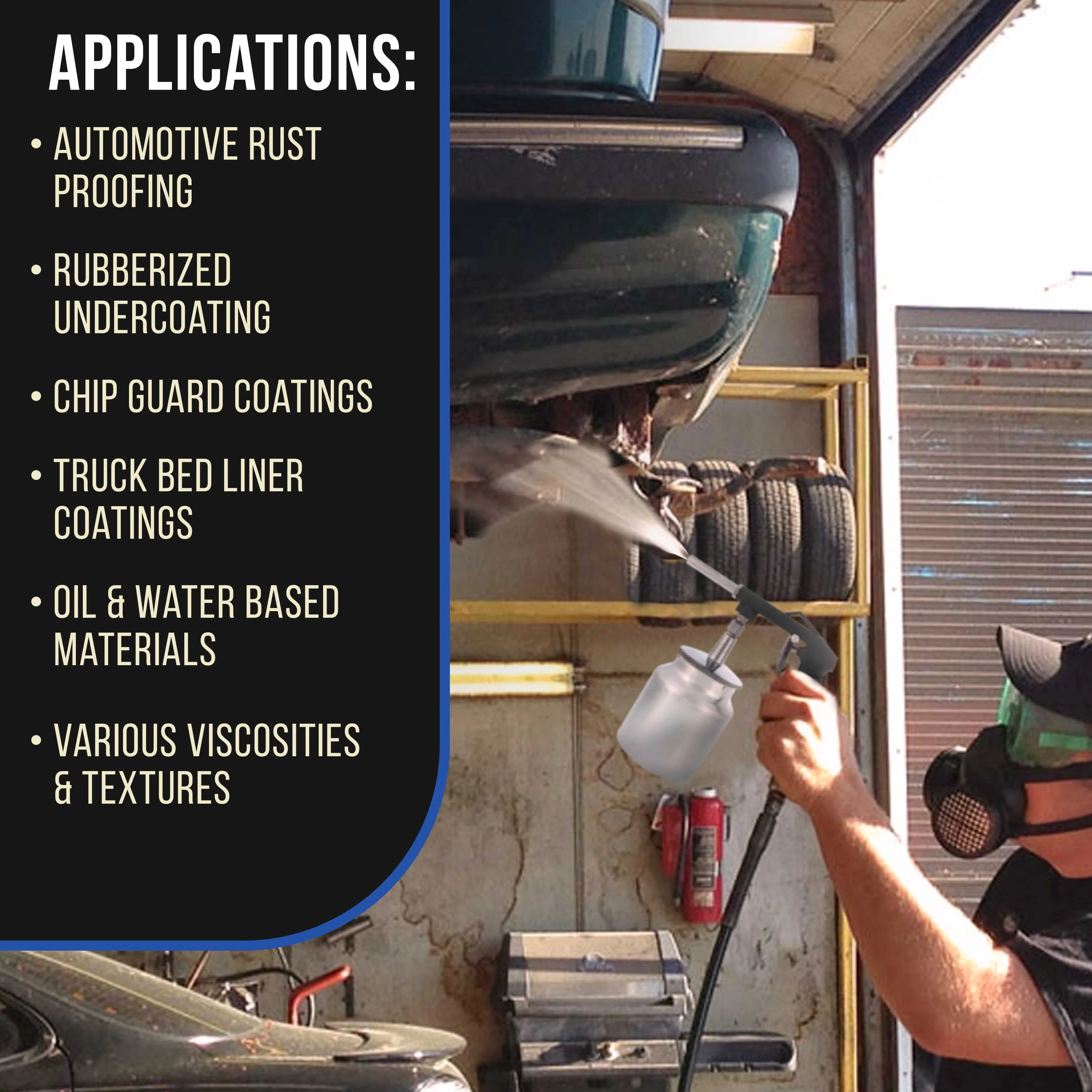 Master Elite Air Undercoating Spray Gun with Regulator & Suction Feed Cup - Apply Sprayable Truck Bed Liner Coating, Rubberized Undercoat, Rust Proofing Paint, Pneumatic Automotive Application Sprayer