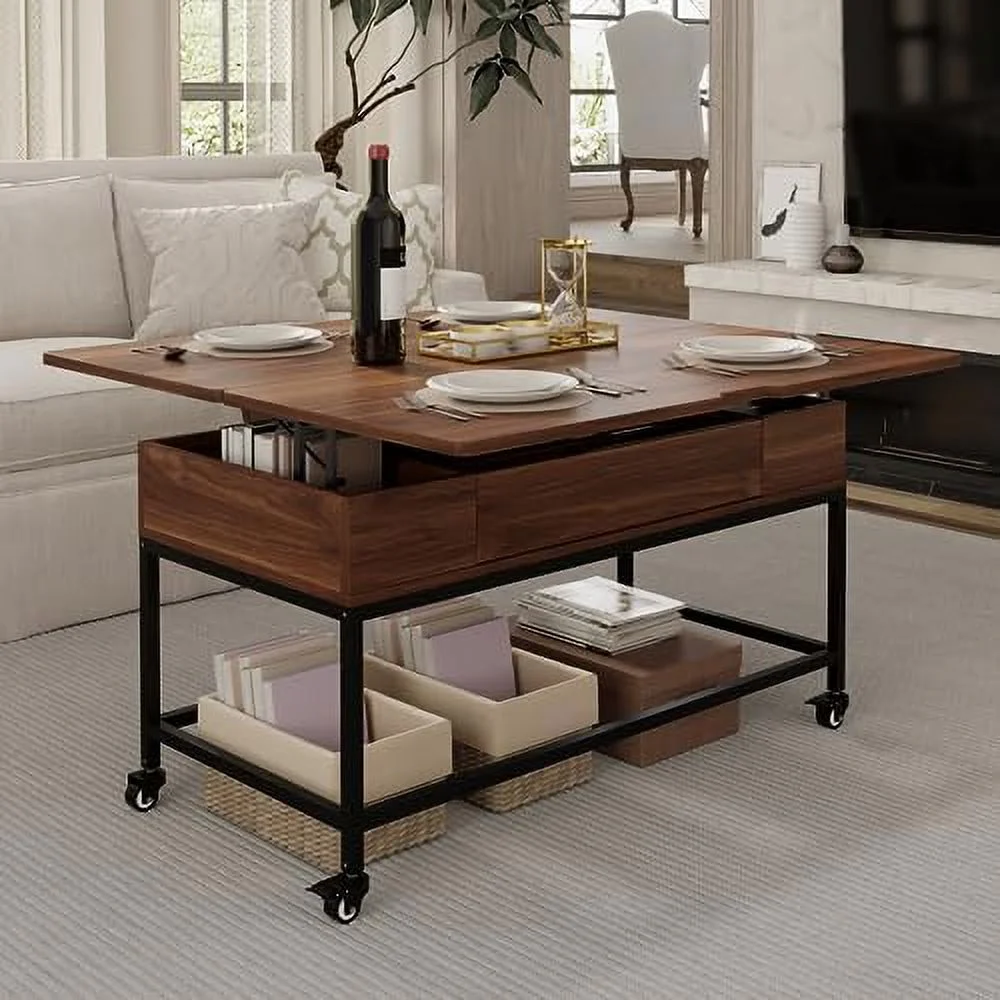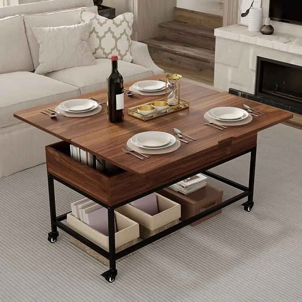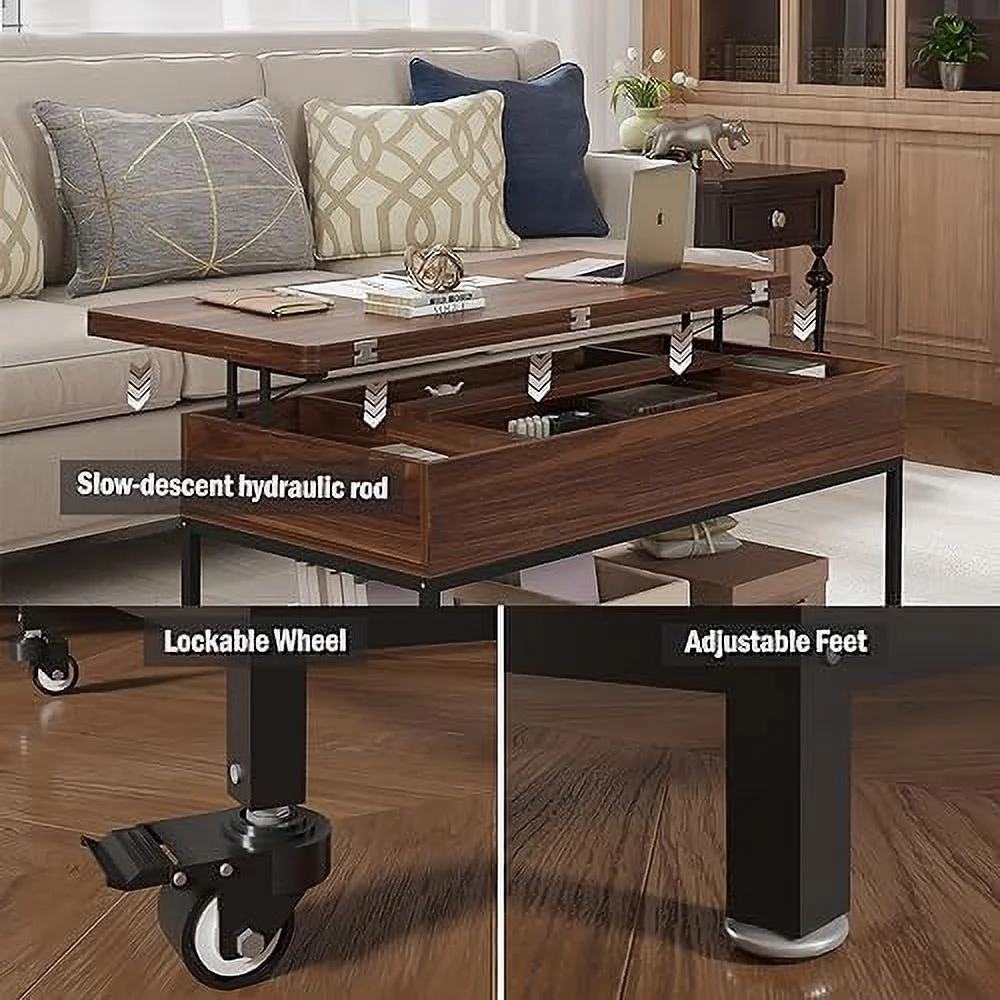 T4TREAM Farmhouse Wood Square Lift-Top Coffee Table with Storage for Living Room, White