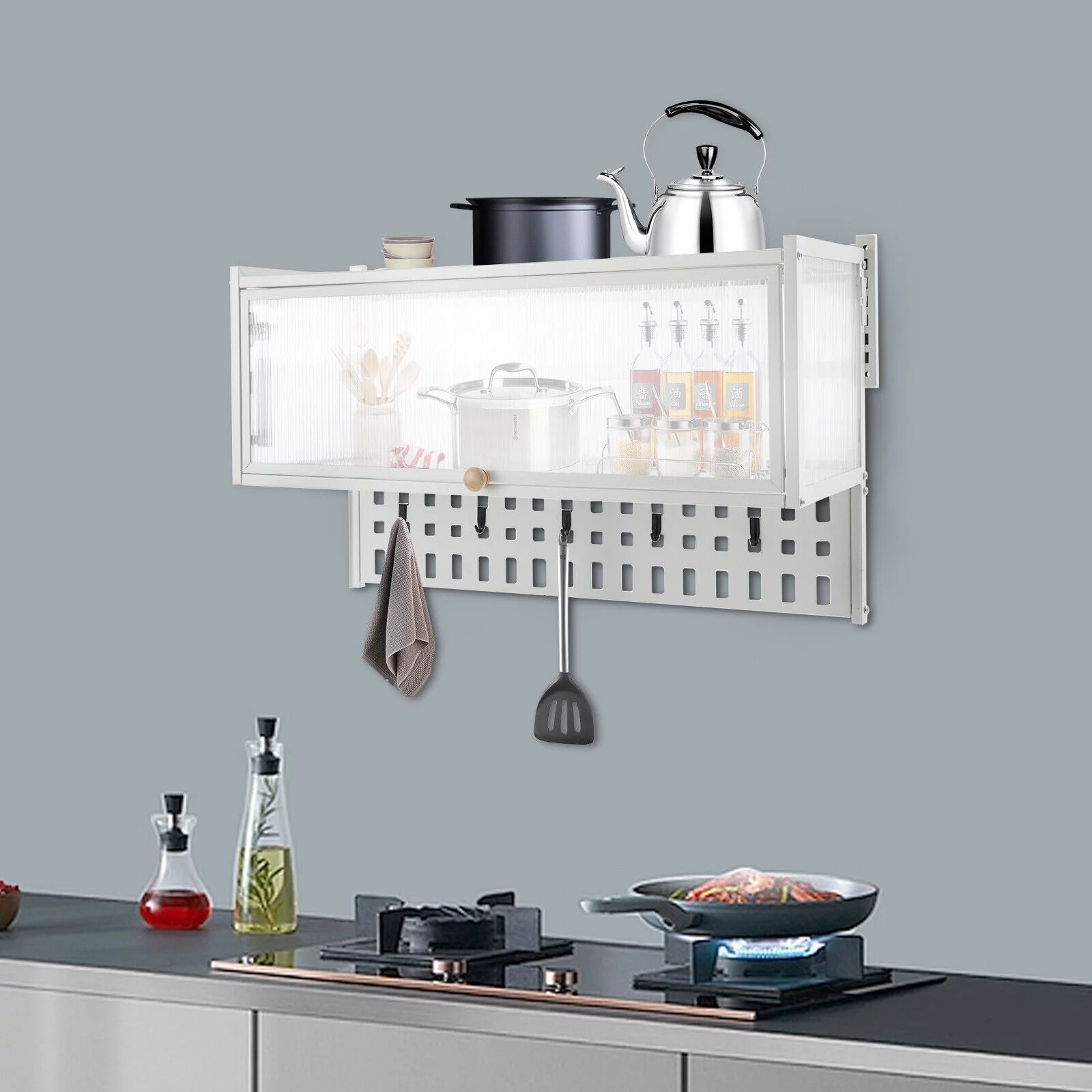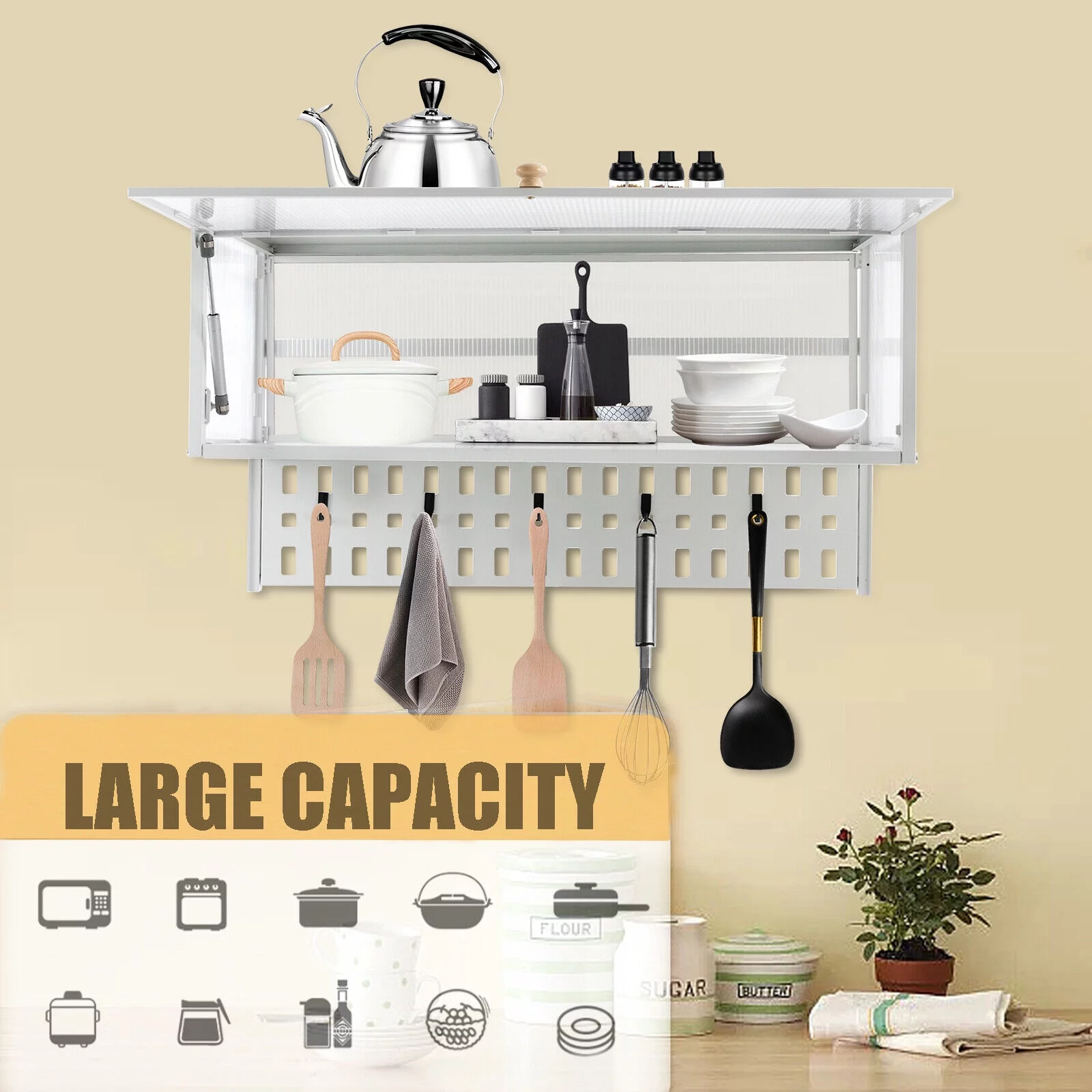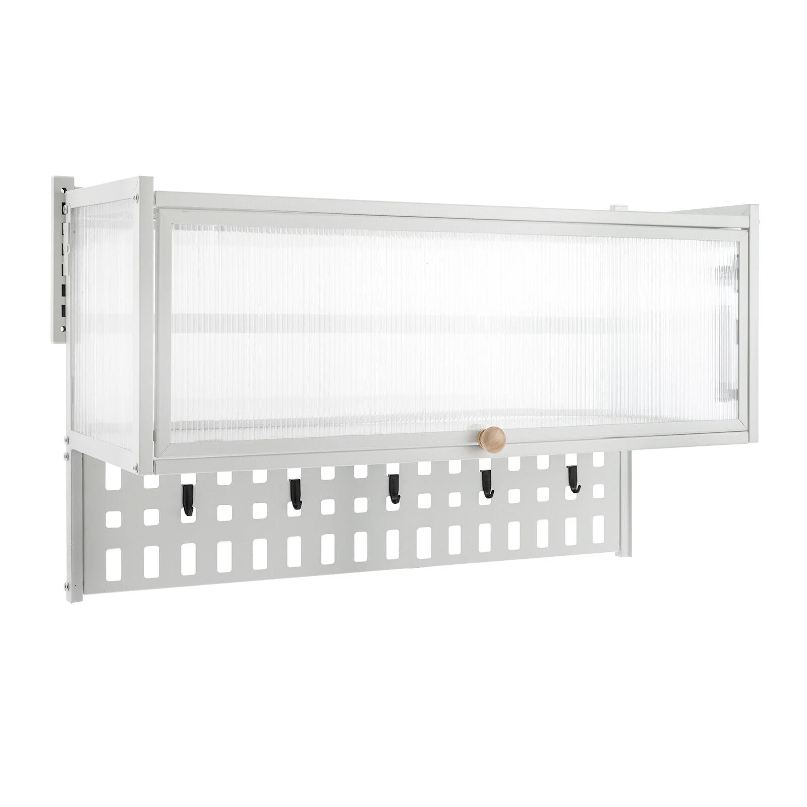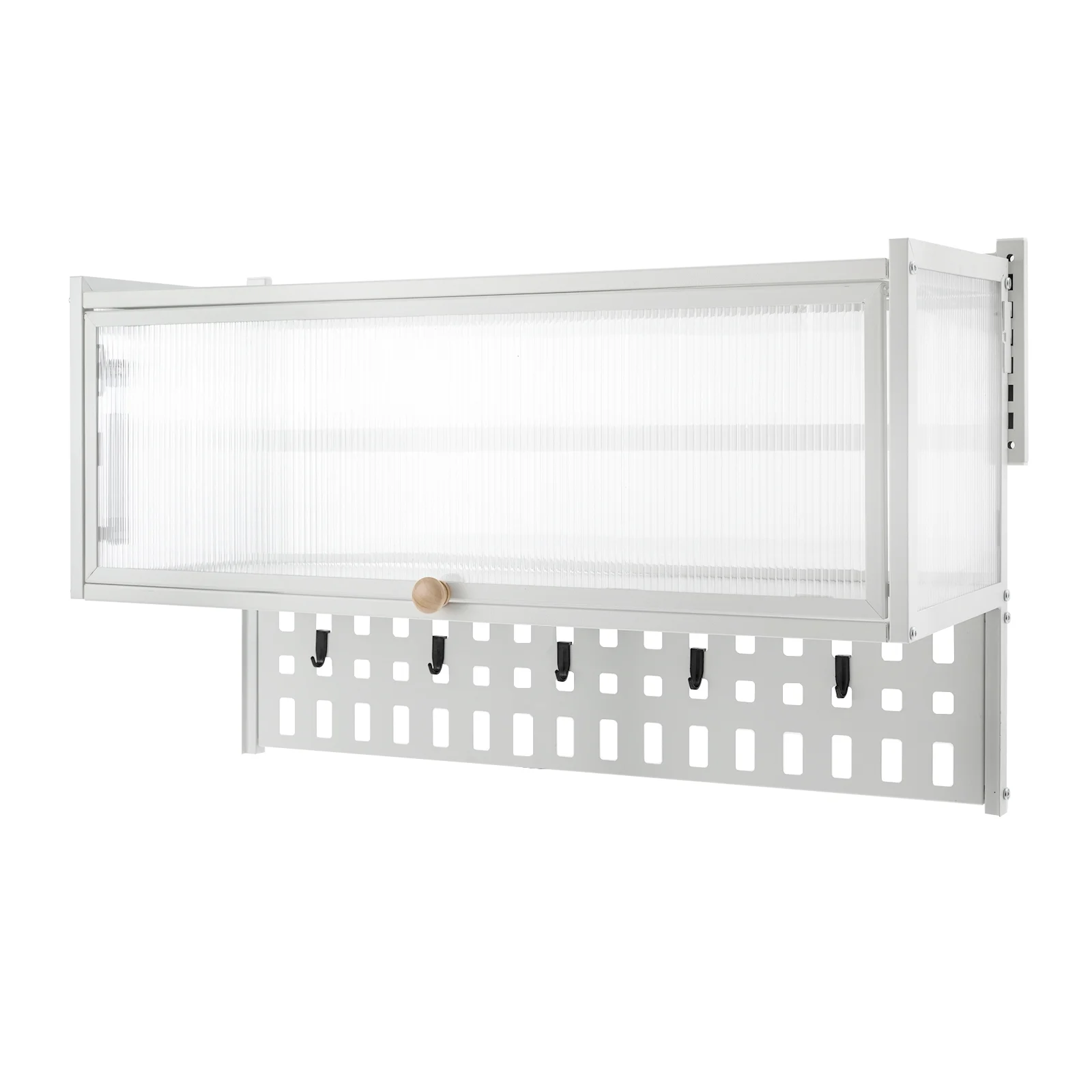 Miumaeov Wall Mounted Cabinet w/ Flip-Up Door Kitchen Pantry Storage Organizer Cabinet with 5x Hooks &Hanging Board